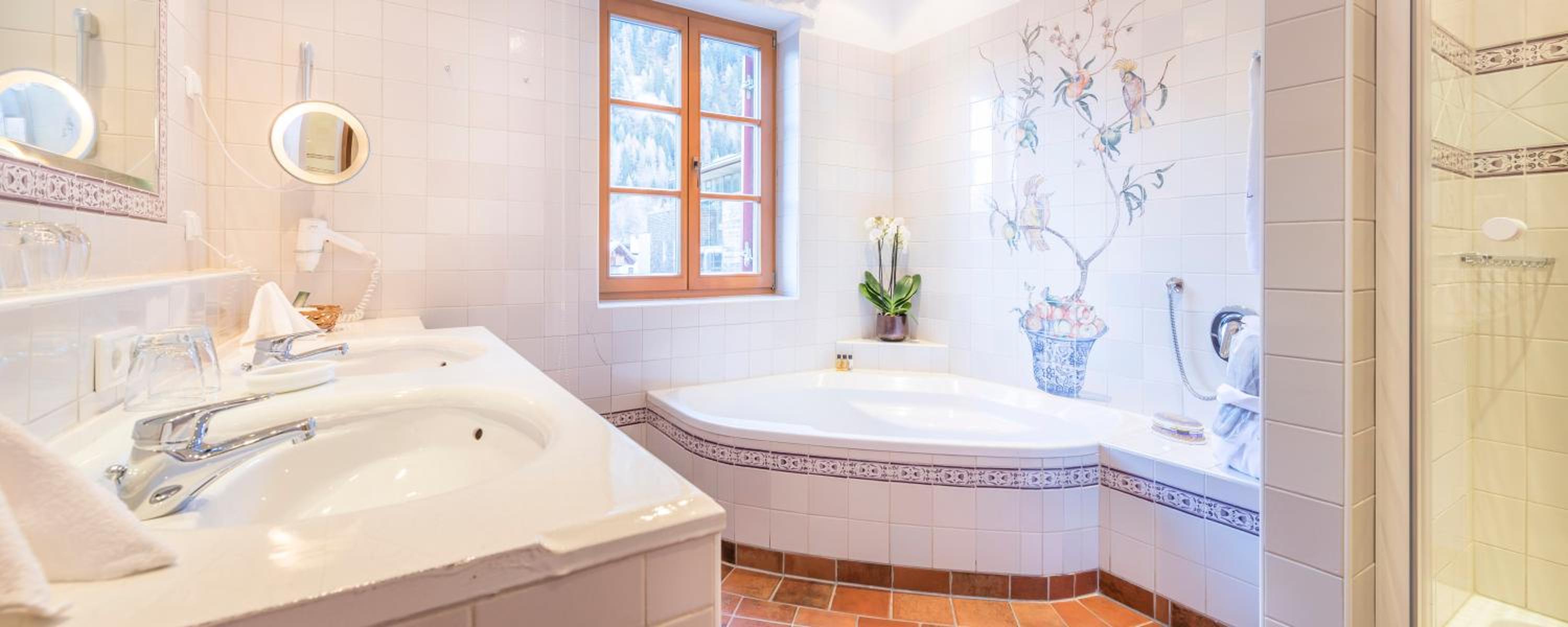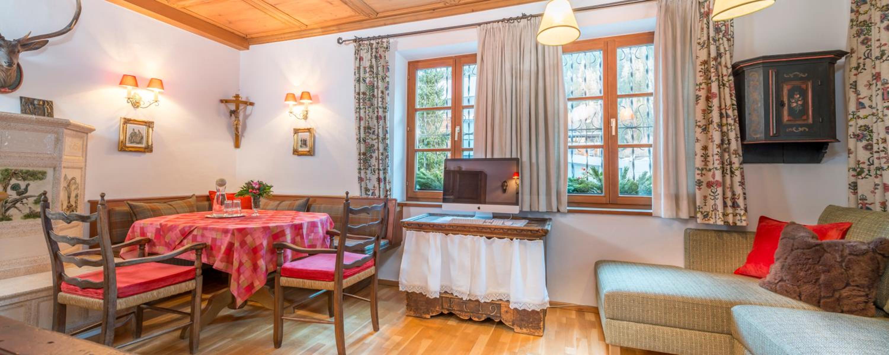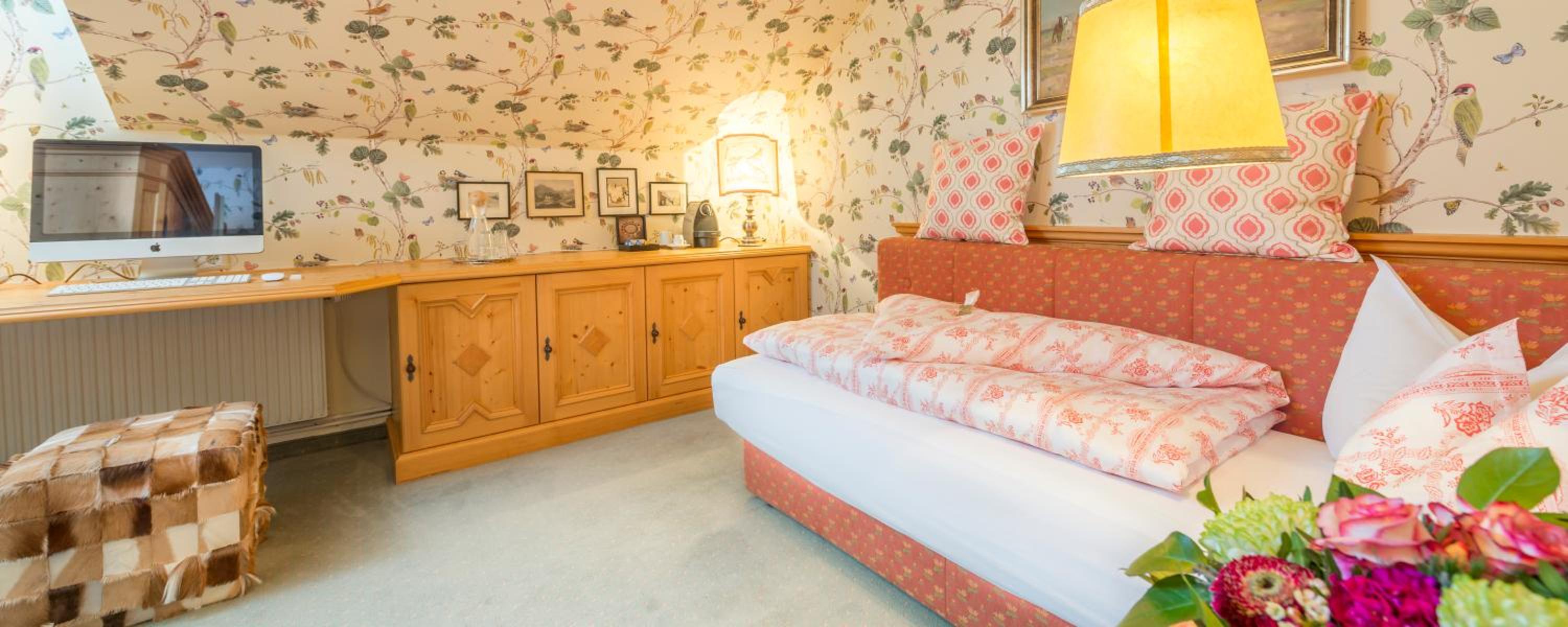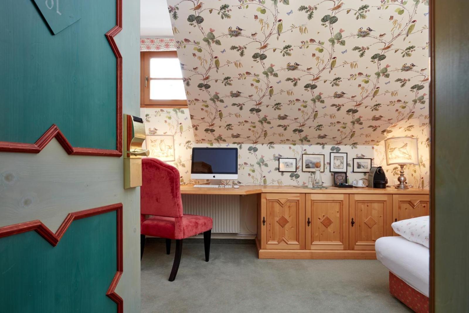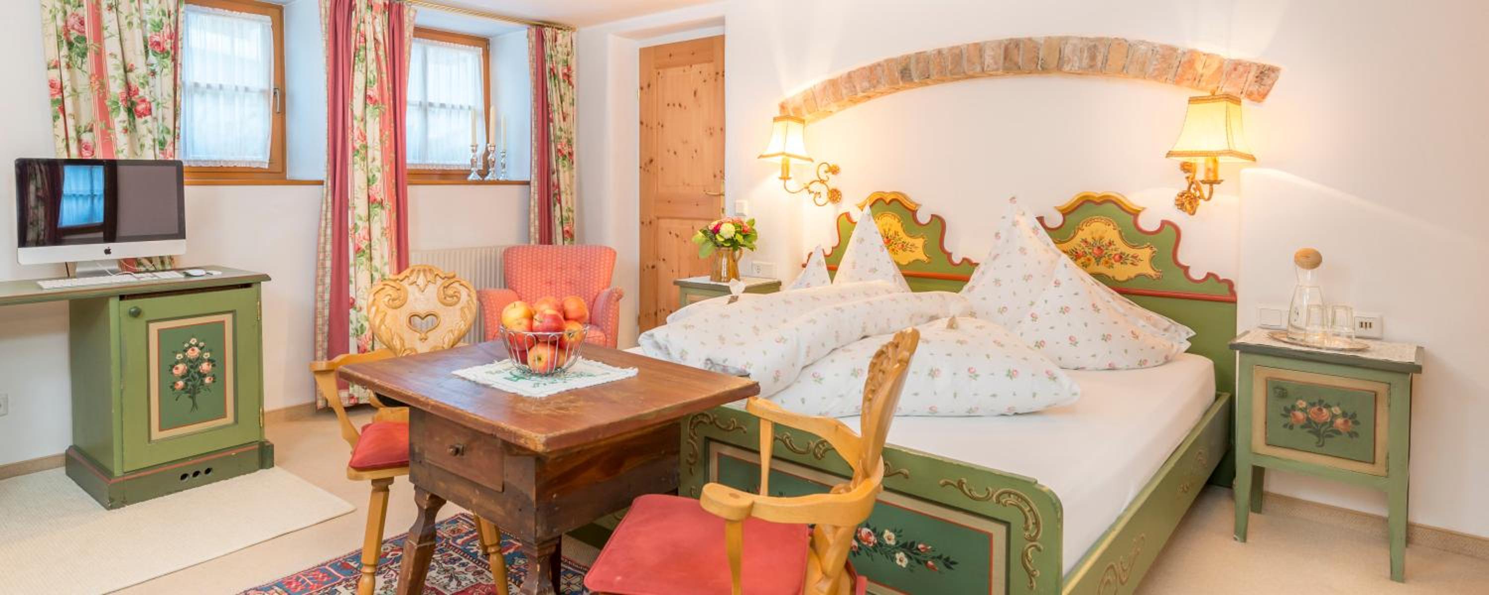 Hotel Das Bergschlössl - very special offers a unique stay with antique furniture in each room and an Apple Entertainment Station for ultimate comfort. Enjoy bathrobes, fresh fruits, and a range of entertainment options.