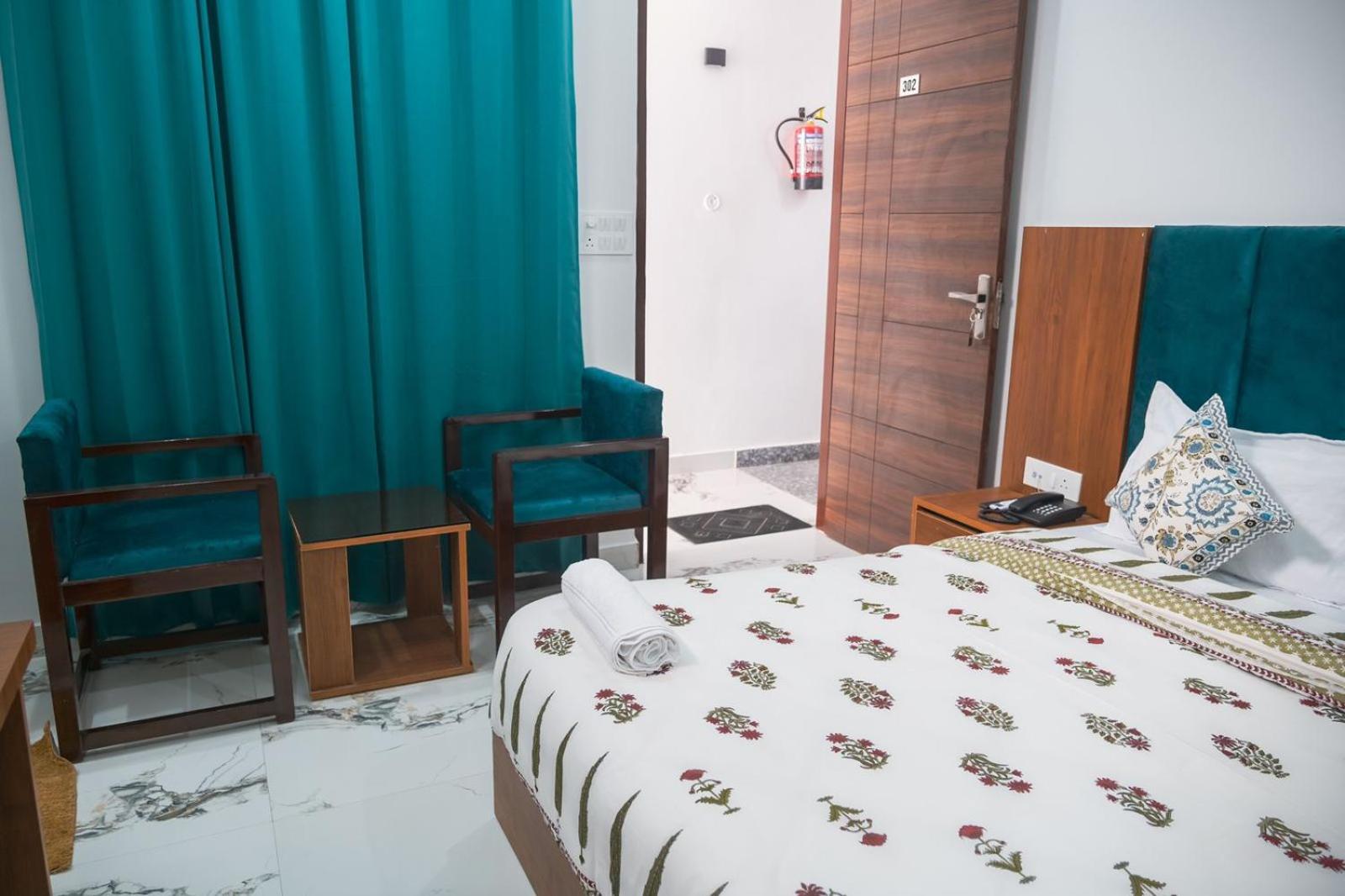 Explore the nearby landmarks, including Ram Jhula, Triveni Ghat, and Rishikesh Railway Station, all within a short distance from the hotel.
