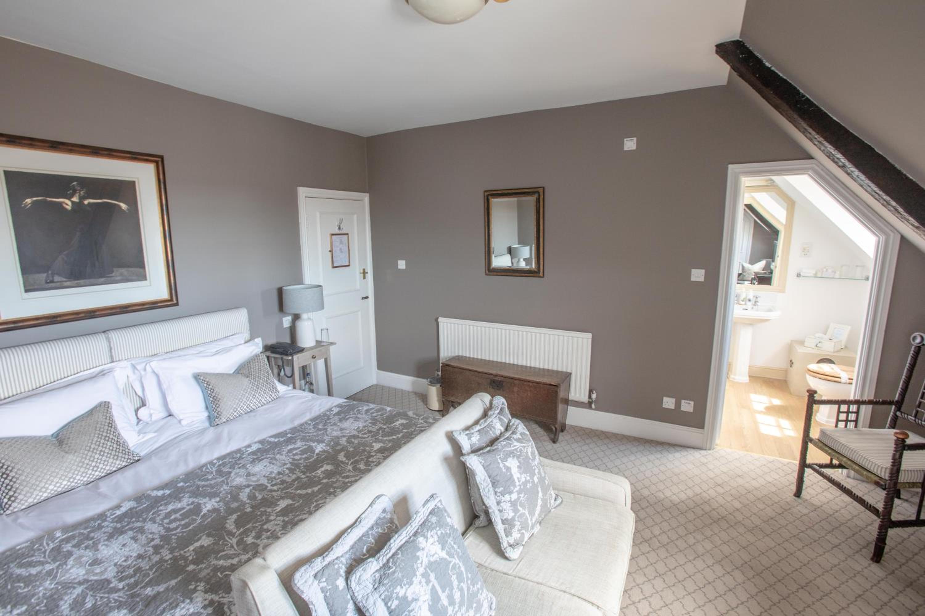 Individually decorated, well-furnished rooms at The George feature modern amenities like en suite bathrooms and TVs, ensuring a cozy stay for guests.