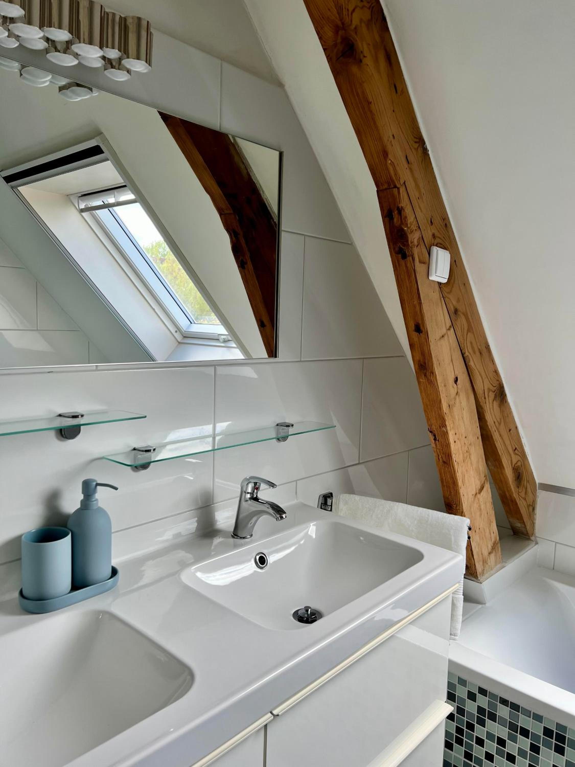 L’accueil d’Eva personne très souriante..la décoration chaleureuse et de très bon goût.. la salle de bain lumineuse avec sa baignoire et la grande douche.. la vue sur les champs avec des vaches et des moutons.. tout en étant en ville avec des vrais habitants!!.. pas des touristes😊