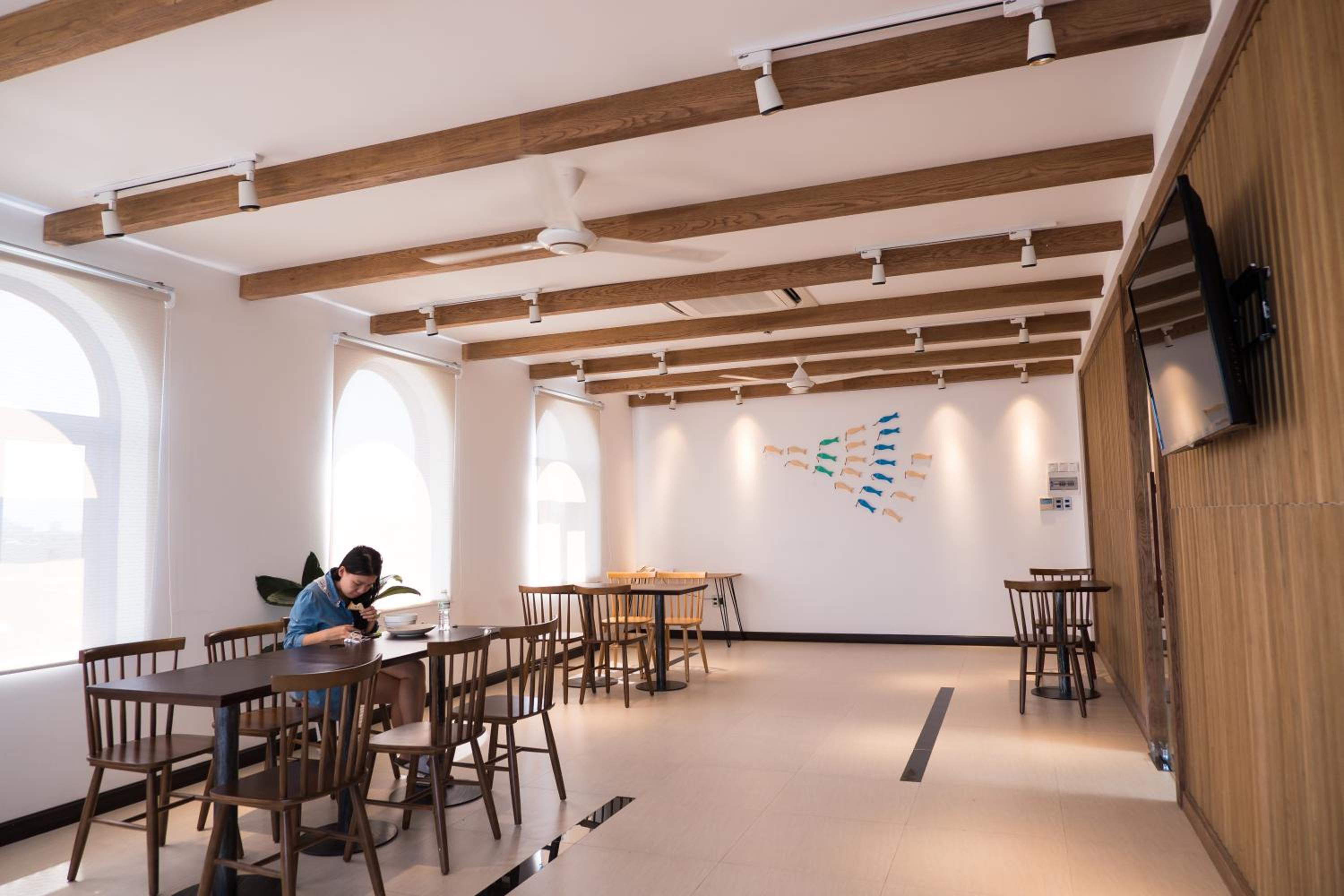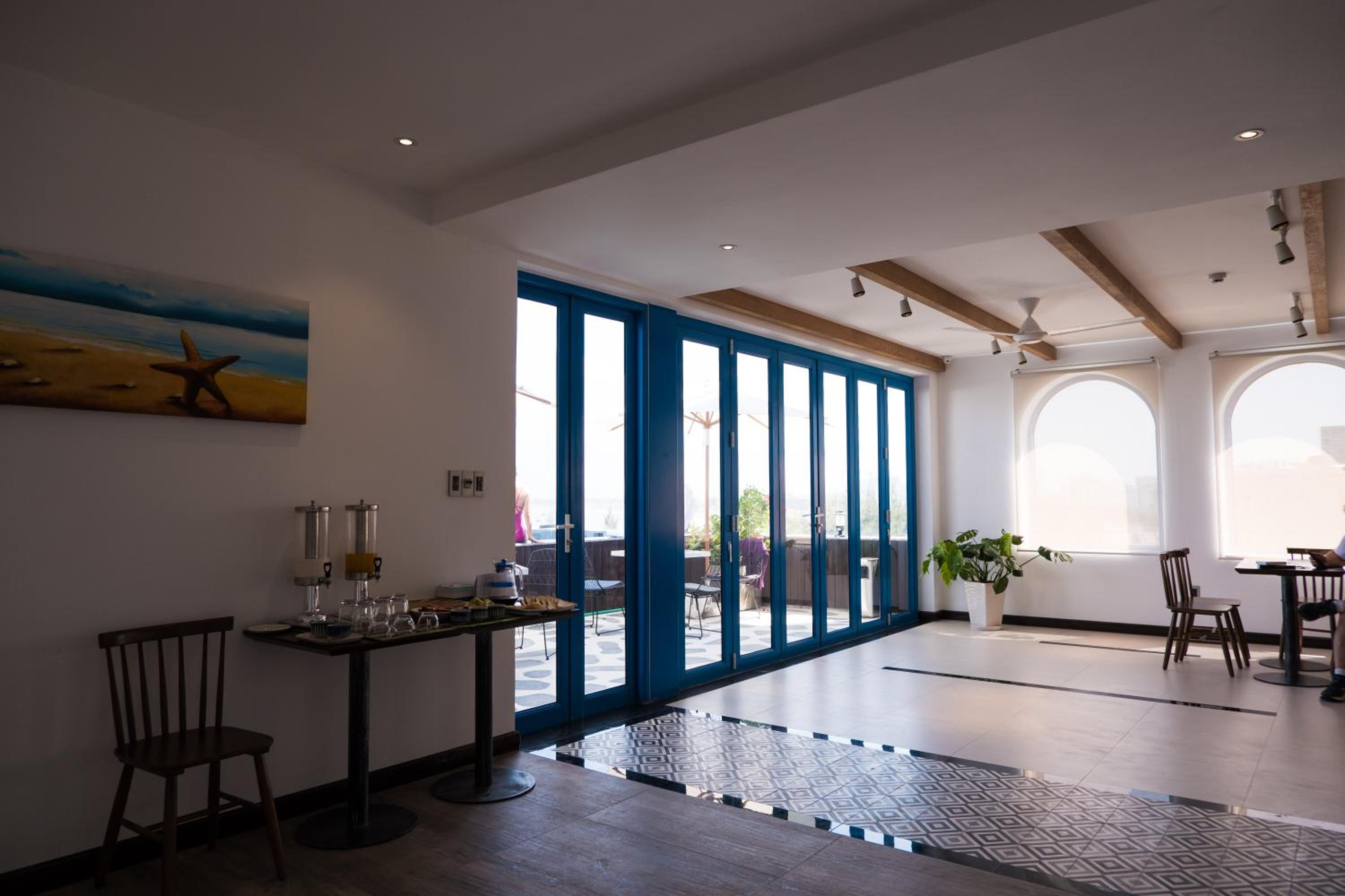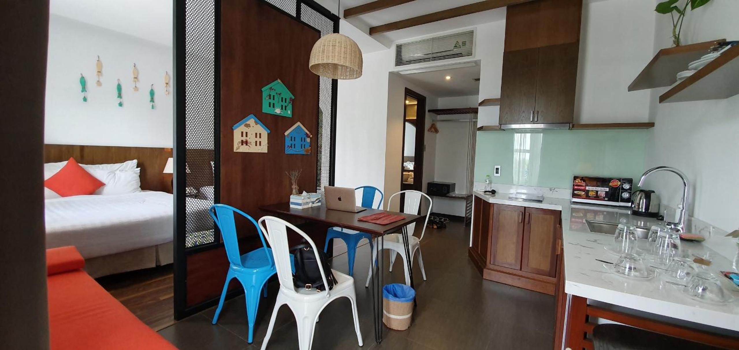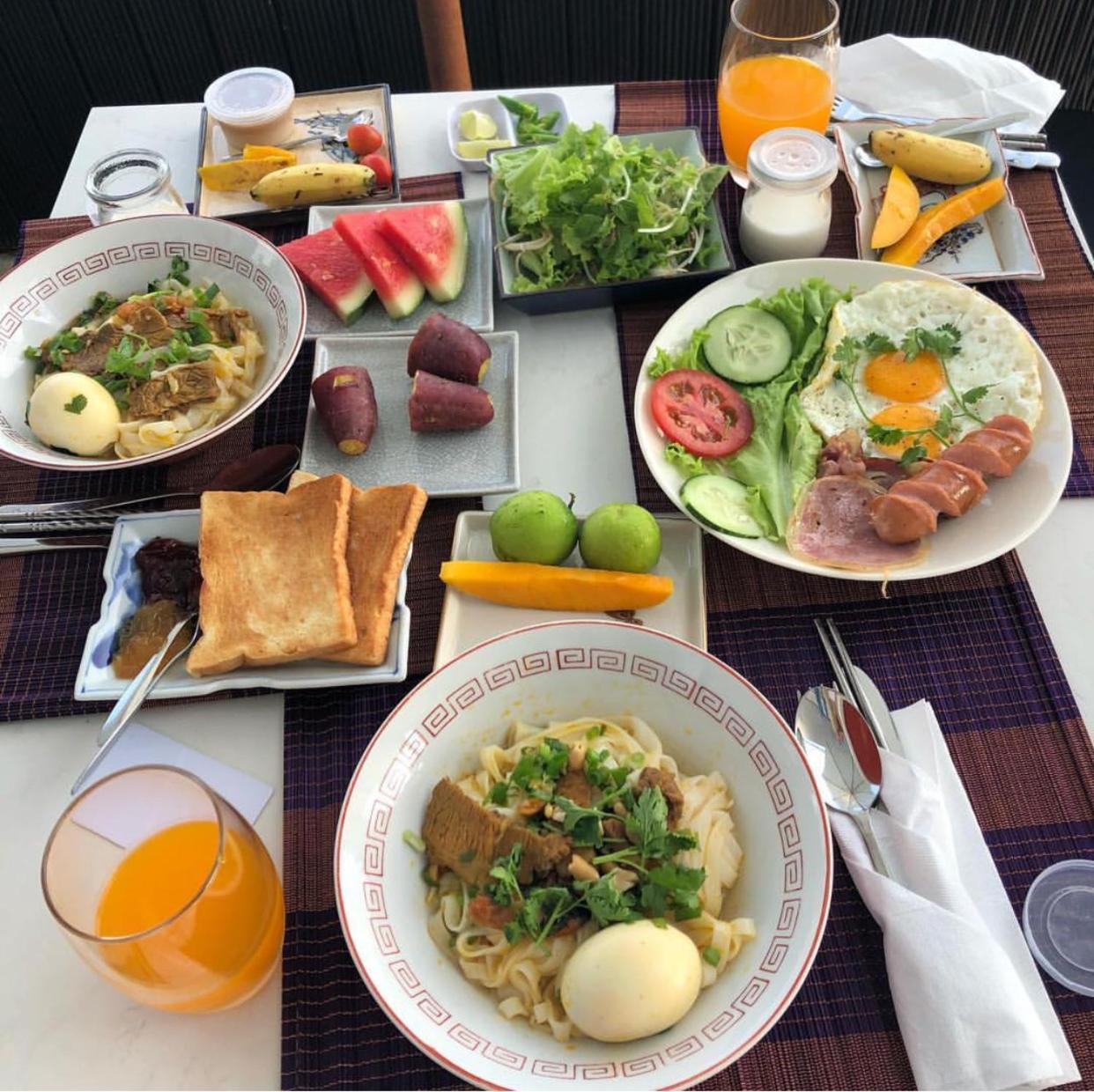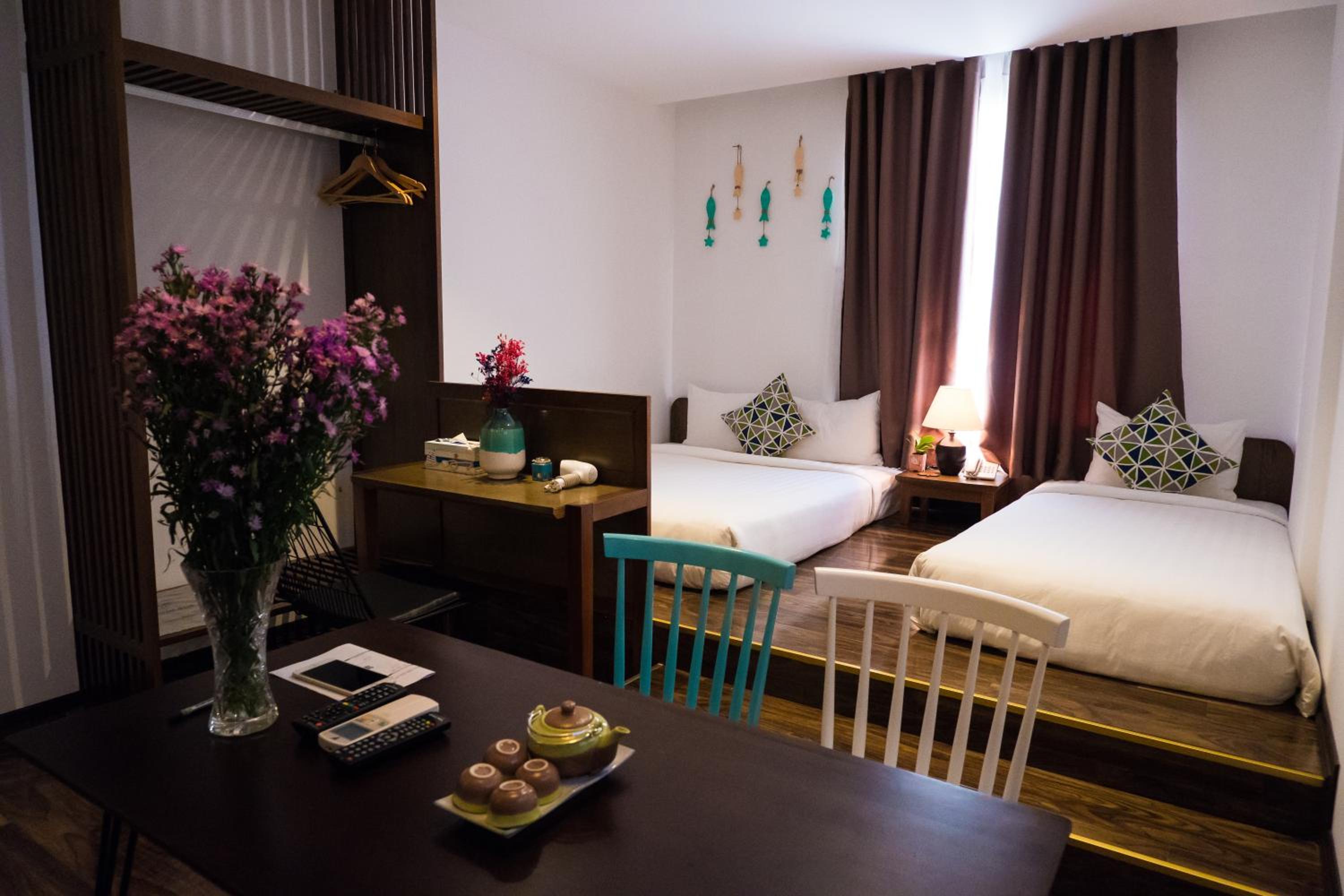 Bữa sáng rất ngon, gần biển, nhà hàng trên sân thượng rất đẹp, phòng mình khg có cửa sổ nên hay lên ngồi trên ấy cũng rất thích. Phòng rất yên tĩnh. đồ dùng trong phòng đầy đủ, khg mới lắm nhưng dùng vẫn tốt. các cô thay dọn phòng thường xuyên.