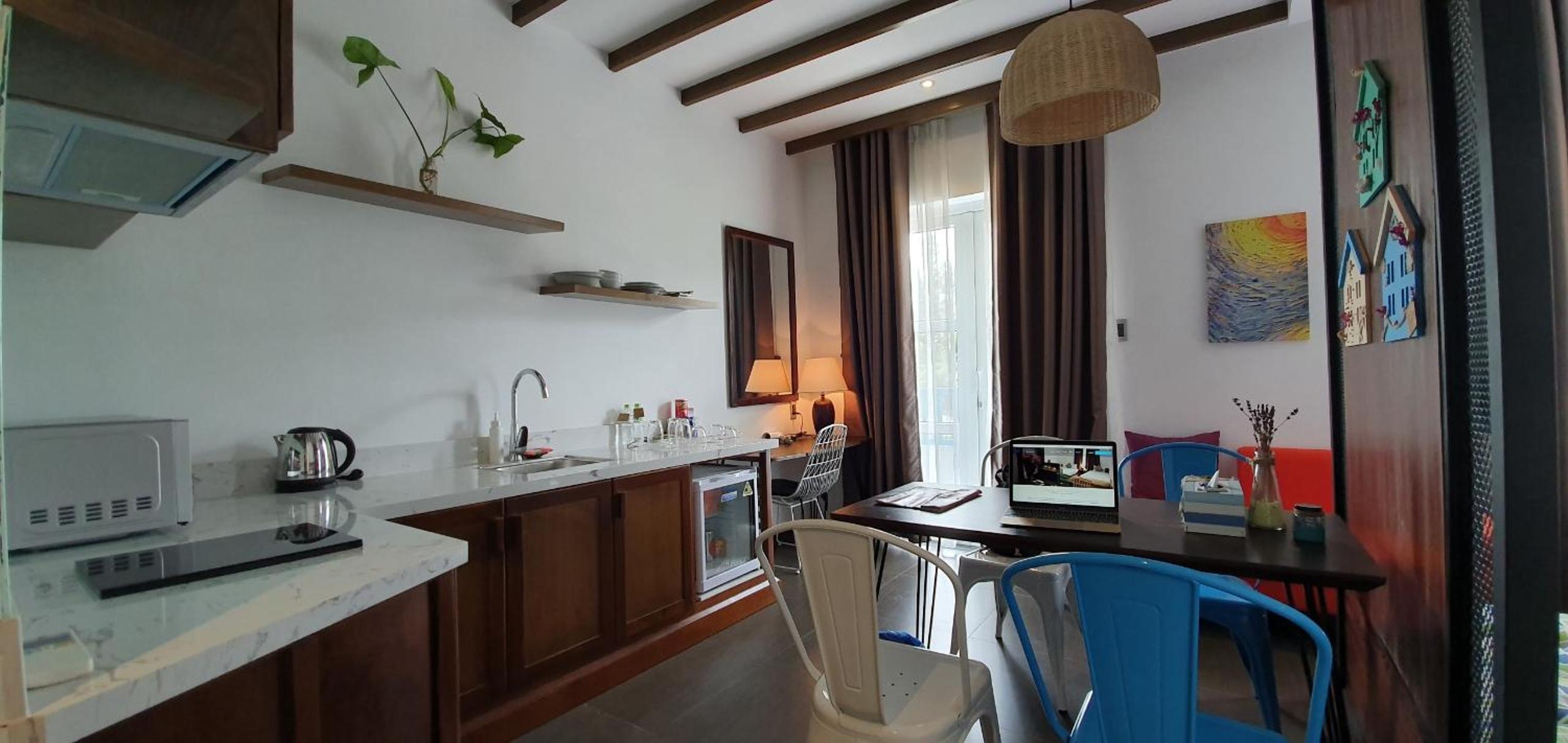 Phòng mình hơi có mùi khét. còn phòng có bếp thì chỉ có mỗi 1 cái nồi. khg có nồi cơm điện hay lò vi sóng, nên cũng khg nấu được cái gì. cứ tầm 10, 15 phút có máy bay bay qua, nhg cái này thì khg tránh đc. phòng cũng cách âm nên tránh đc phần nào. cũng đc cái gọi là có trải nghiệm.