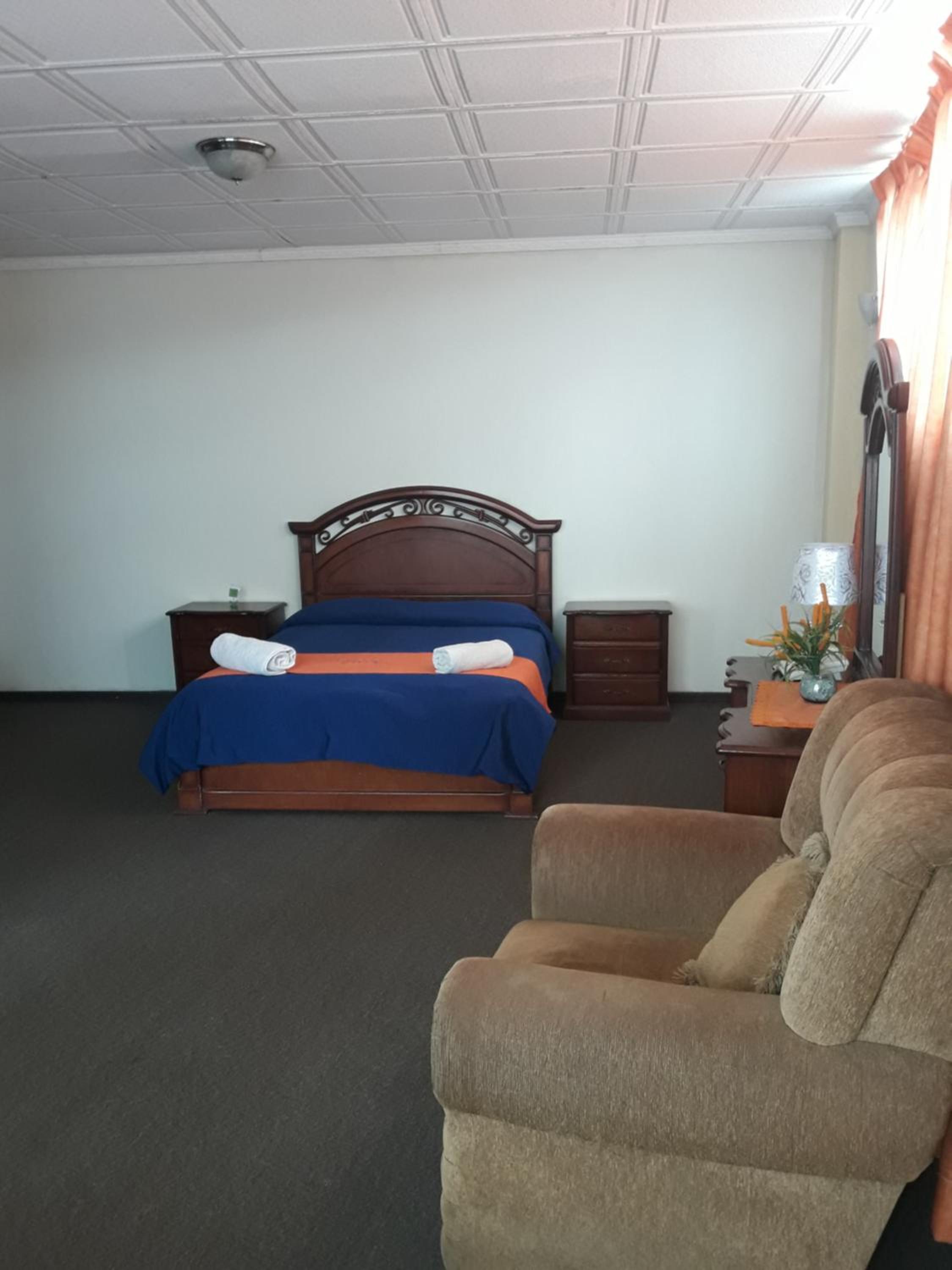 Habitación en un 2do. Piso sin ayuda para subir el equipaje, las baterías del control de la TV estaban mordidas, el control no funcionaba, no había papel higiénico en el baño, el ingreso al parqueo repleto de cajas de cartón con desechos que hacían difícil el ingreso, la recepcionista se olvidó desde el saludo hasta la colaboración, no nos brindó ayuda en ningún aspecto.