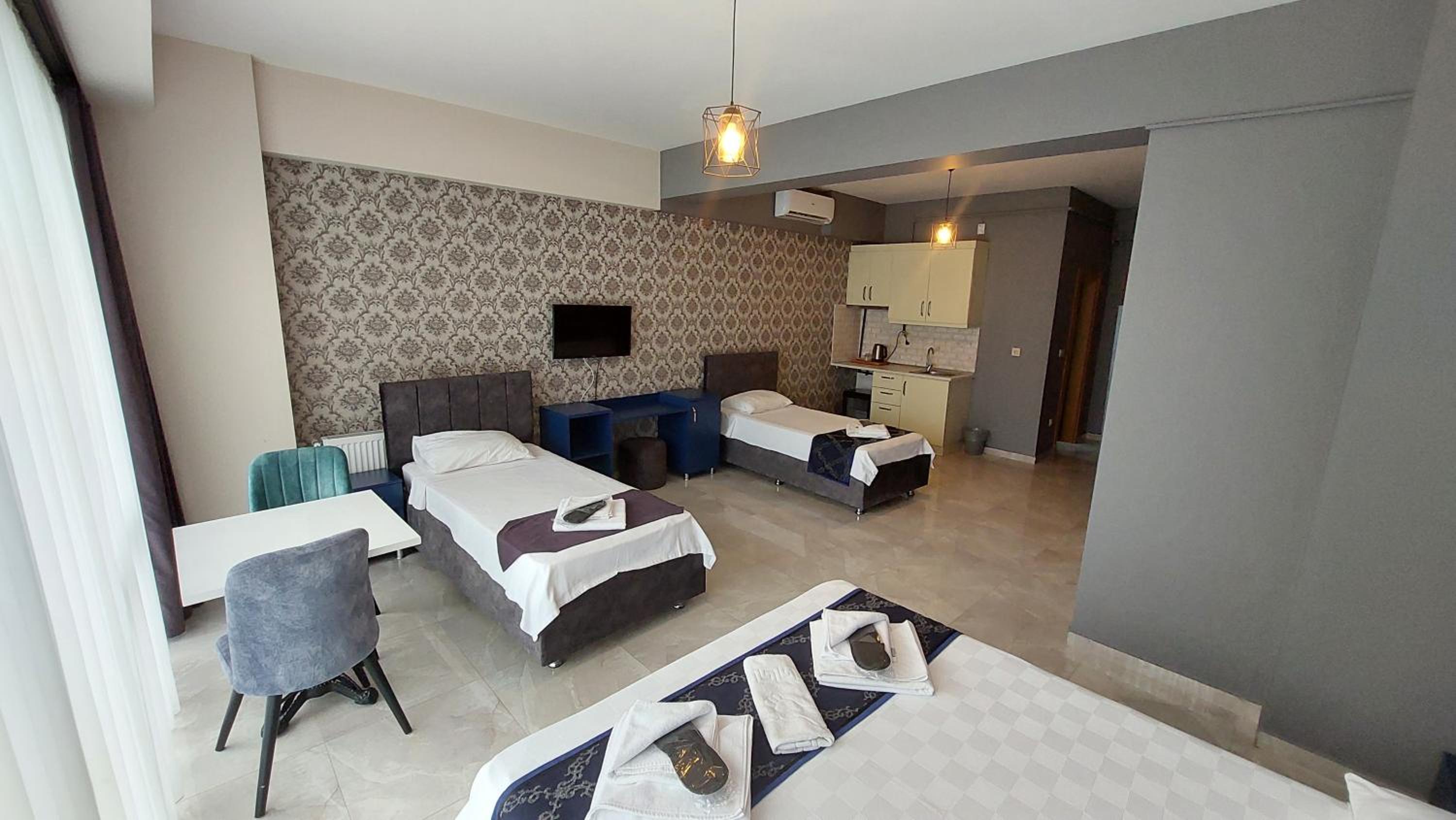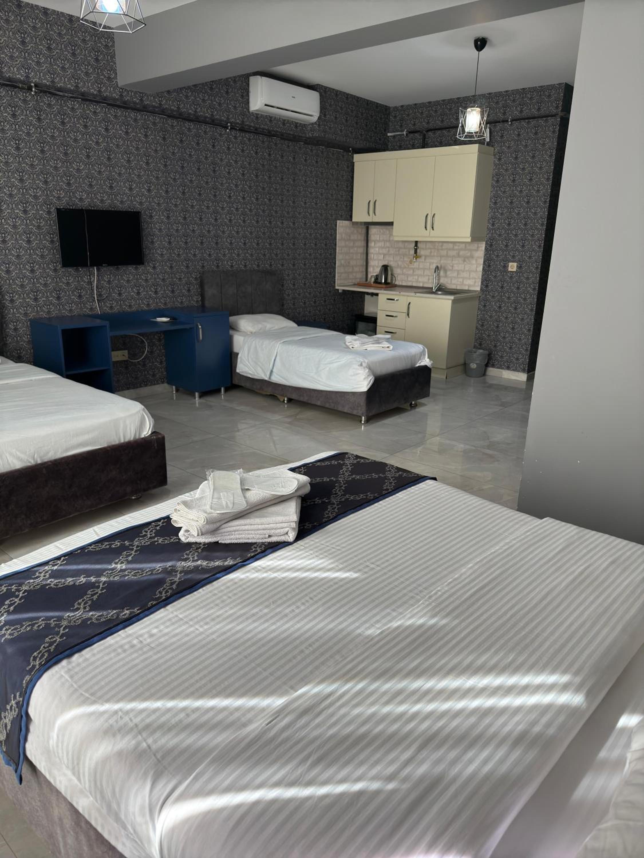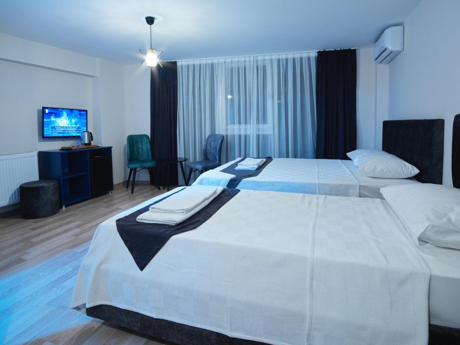Relax in well-equipped guest rooms featuring air conditioning, flat-screen TVs, and free WiFi for a comfortable stay.