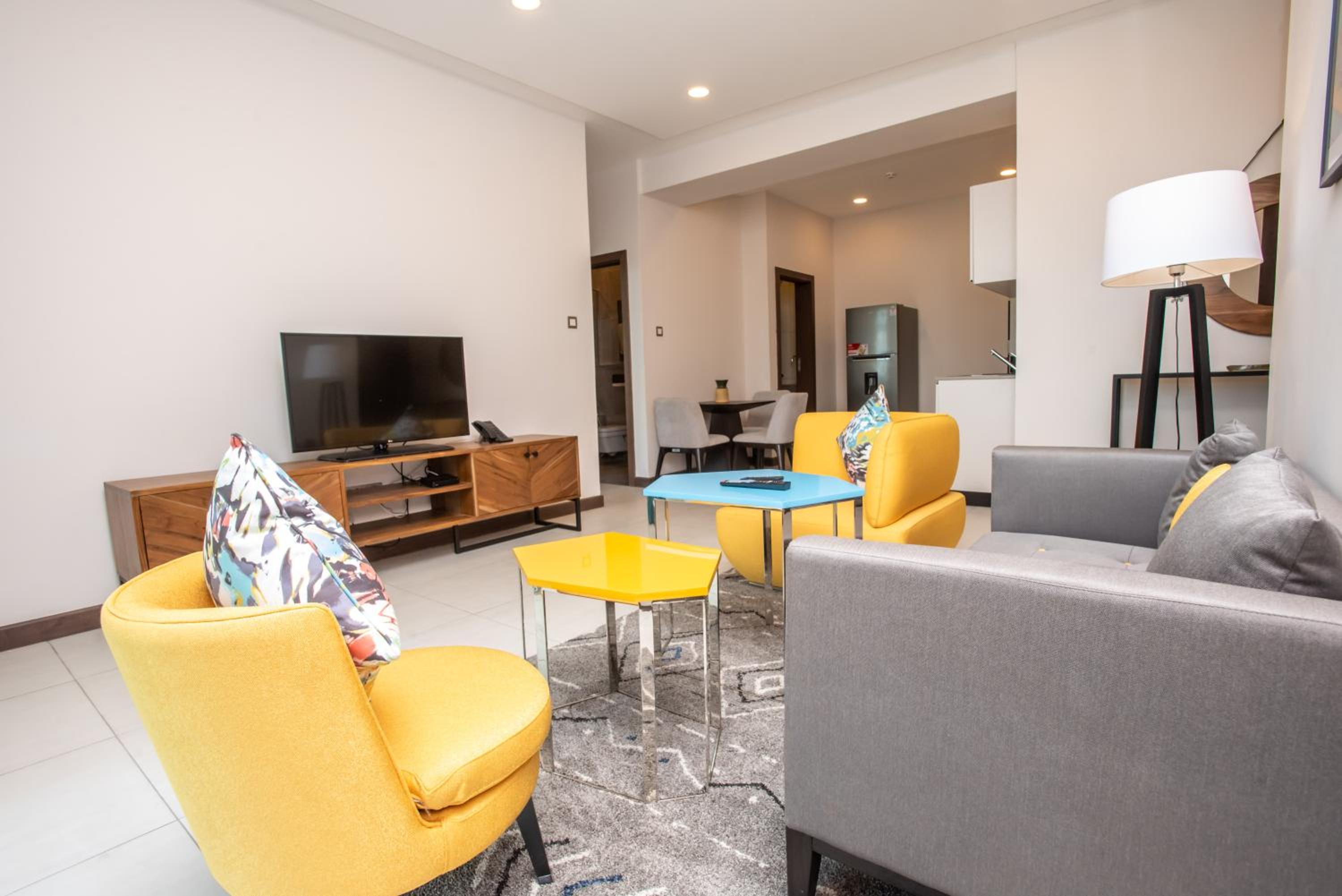 We were pleasantly surprised by the size of the apartment. Having a kitchen, living room with balcony, and a washing machine was especially convenient after travelling for some time. The apartment was cleaned perfectly every day. The pool, gym, and common areas are very nice, and the views over Nairobi from the balcony and pool are stunning. The location is good, and the coffee available downstairs is excellent.