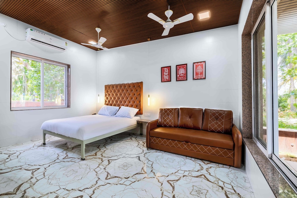 Book your retreat at Coco Bliss By Mauli Stays in Palghar for a relaxing getaway near popular attractions like Ram Temple and Shirgaon Beach.