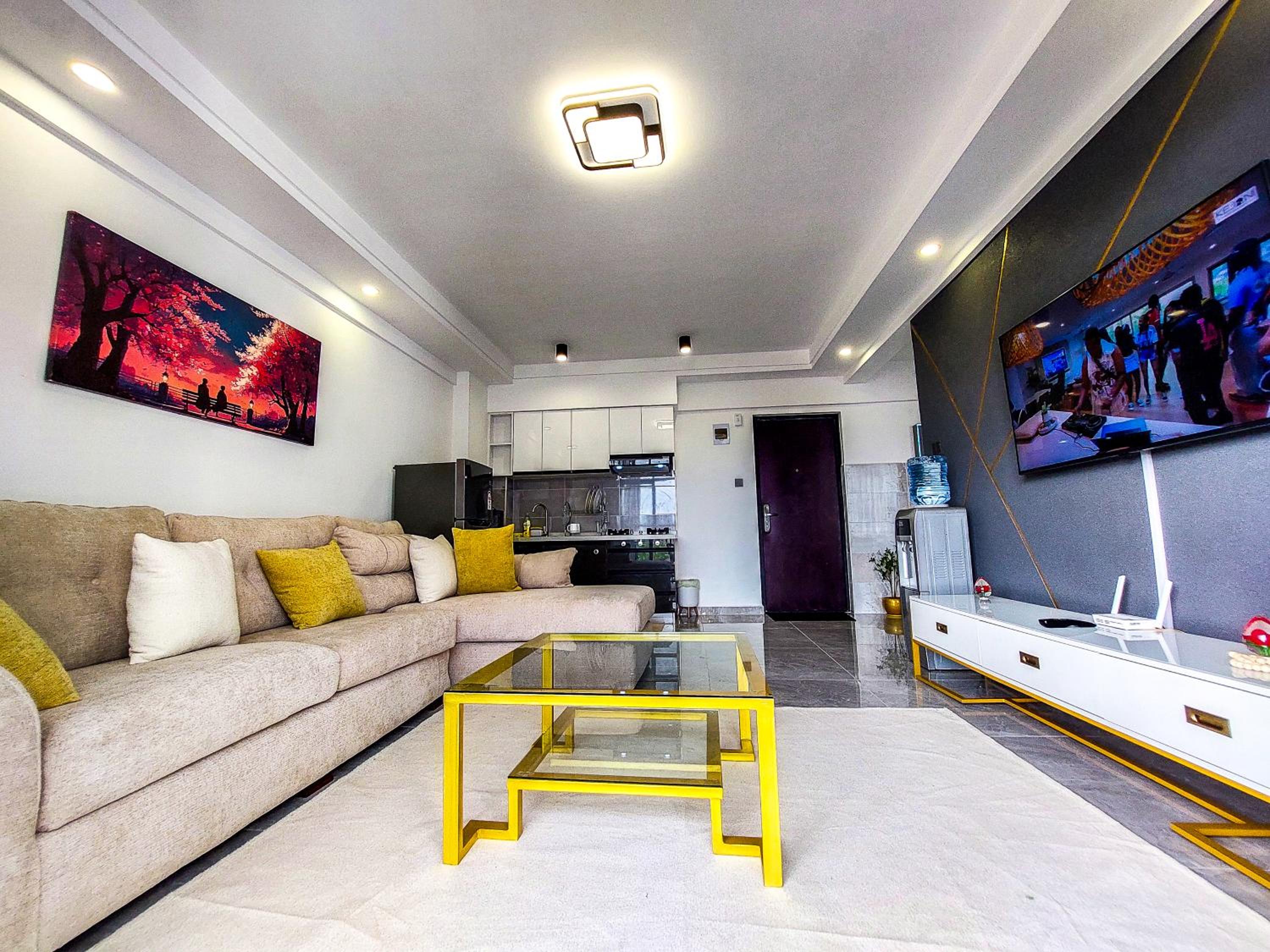 Carolina Homes - Kilimani offers a stylish 1-bedroom apartment with a fully equipped kitchen and modern amenities to ensure a comfortable stay.