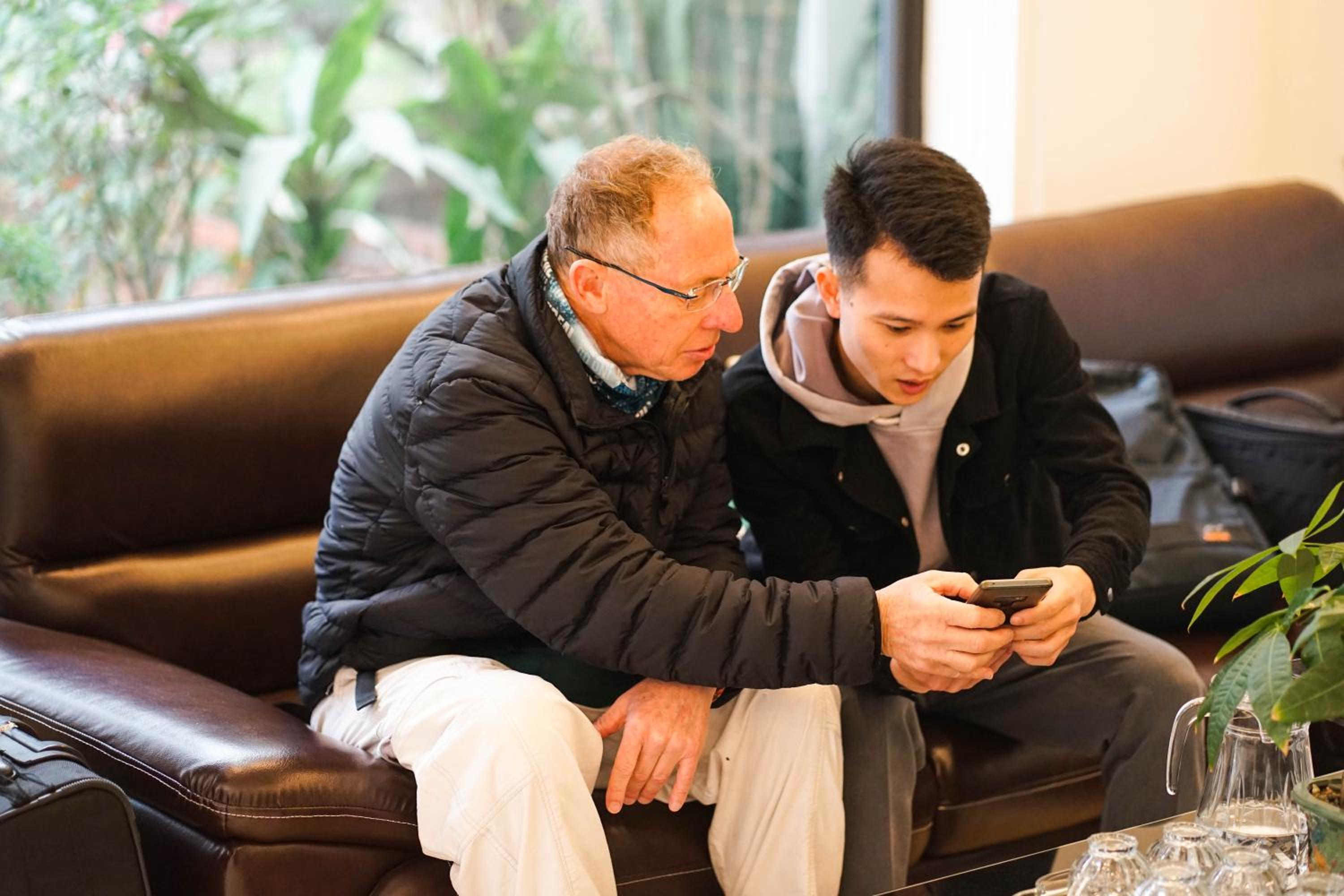 Huy de receptionist is erg vriendelijk en heeft ons aangeboden om tickets voor de bootjes te gaan halen op zijn scooter een paar kilometer verderop toen de stroom in Tam COC was uitgevallen.