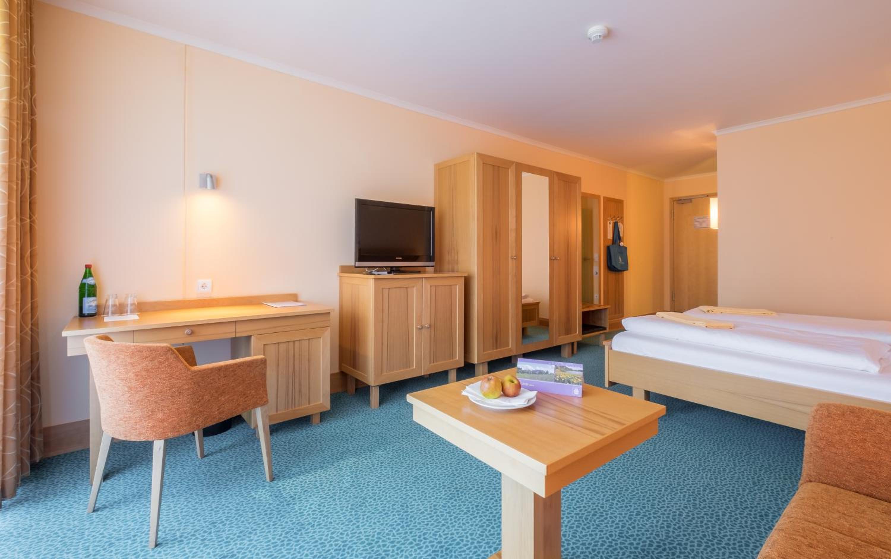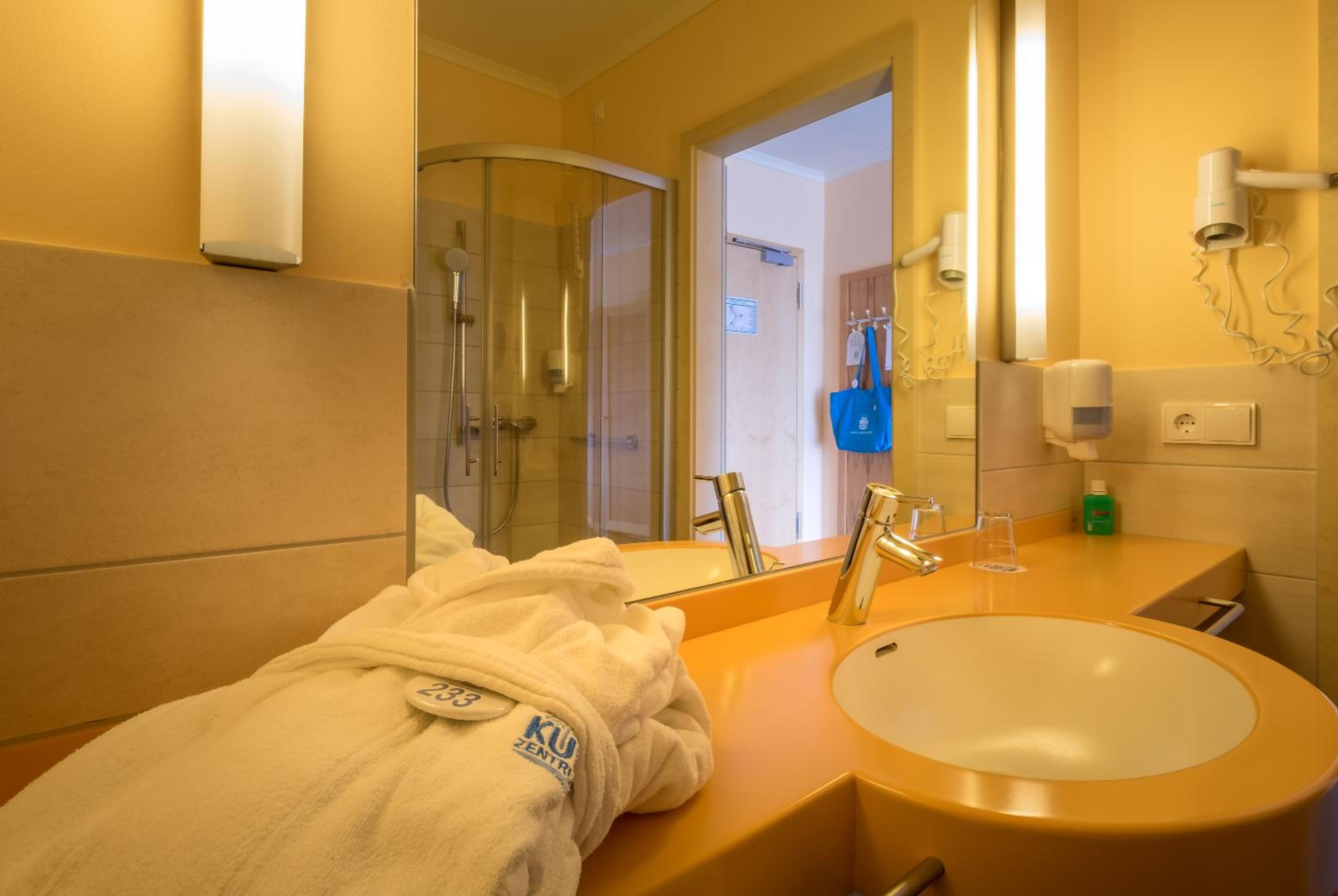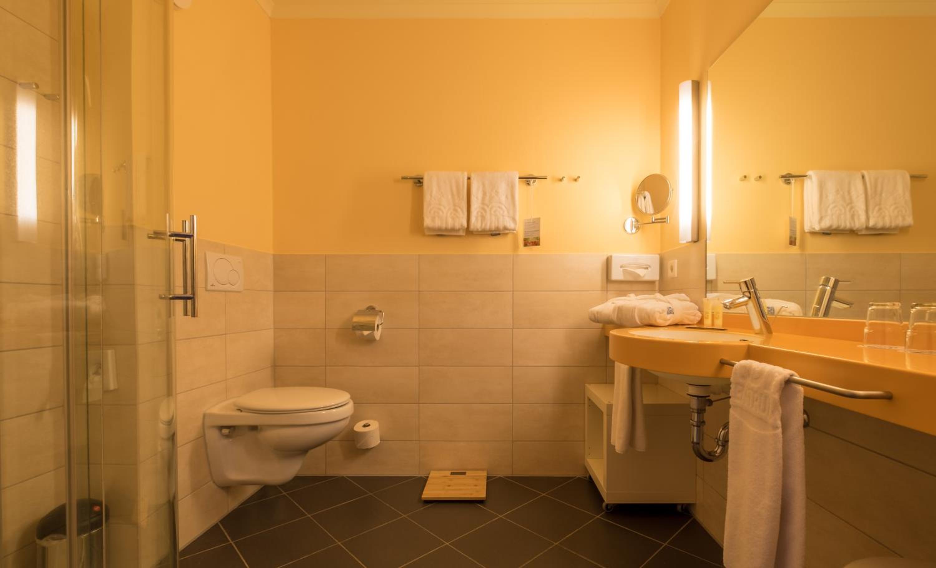 Ich hatte ein Doppelzimmer zur Einzelnutzung, daher viel Platz. Alles vorhanden, was man auch für Wellness benötigt.