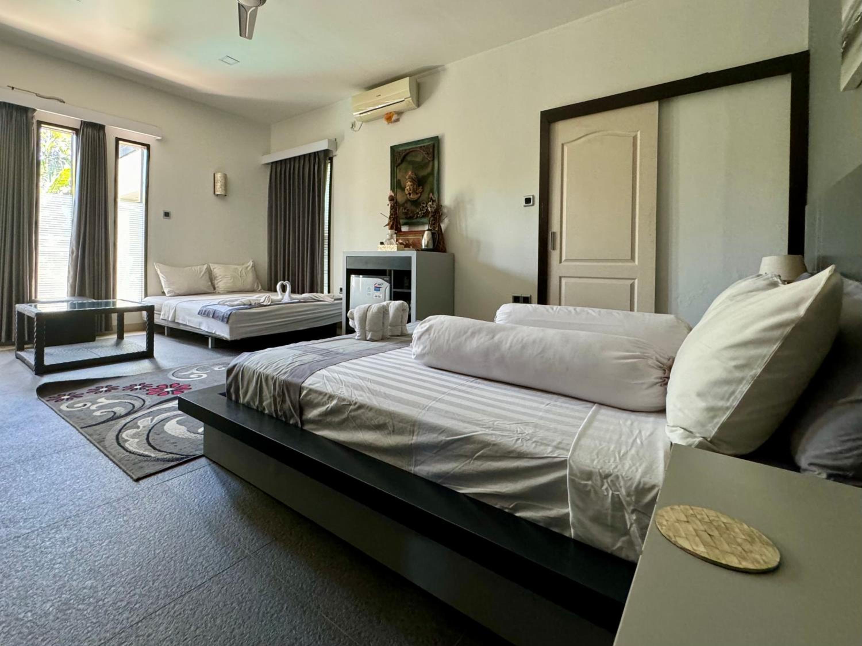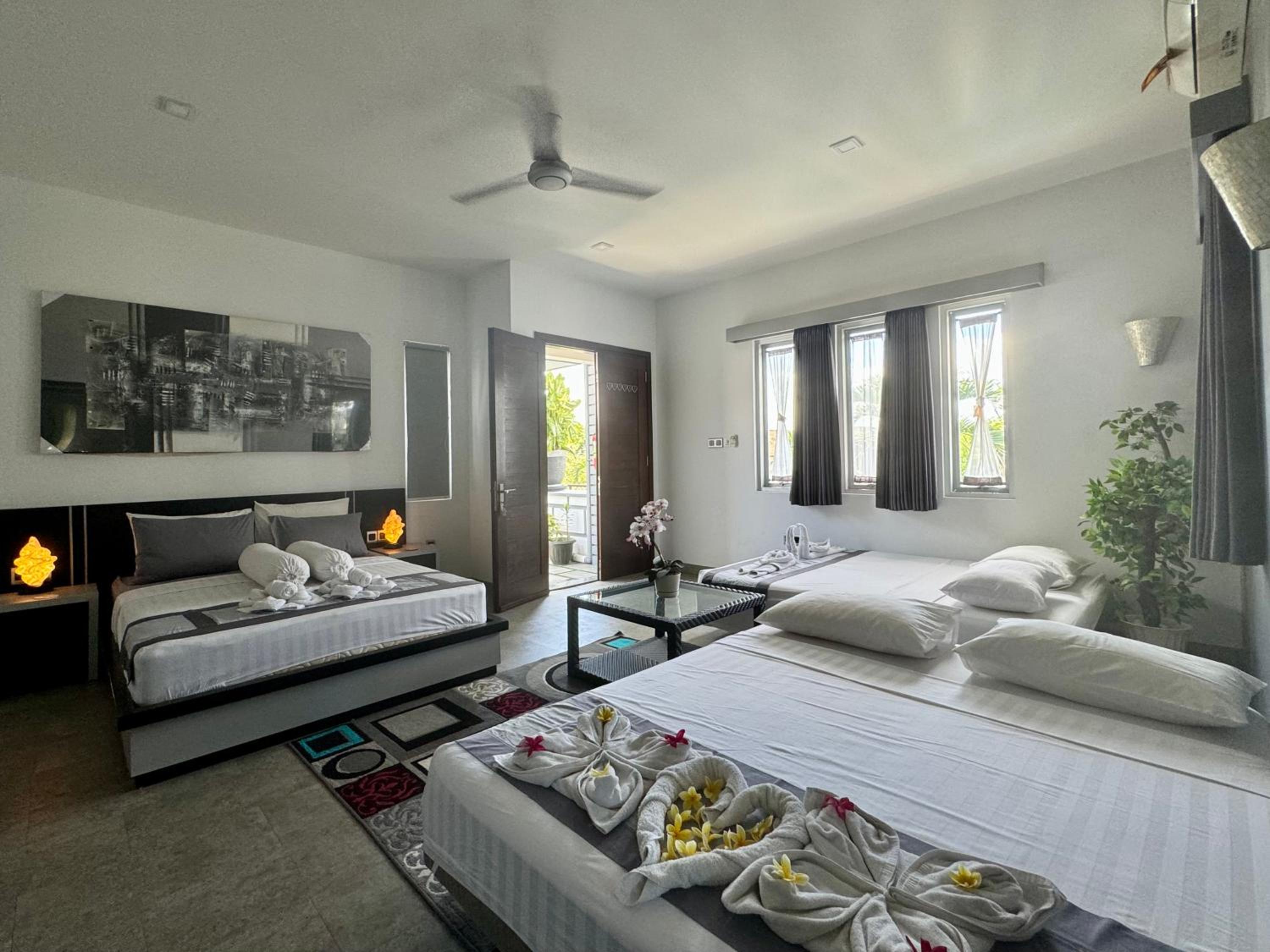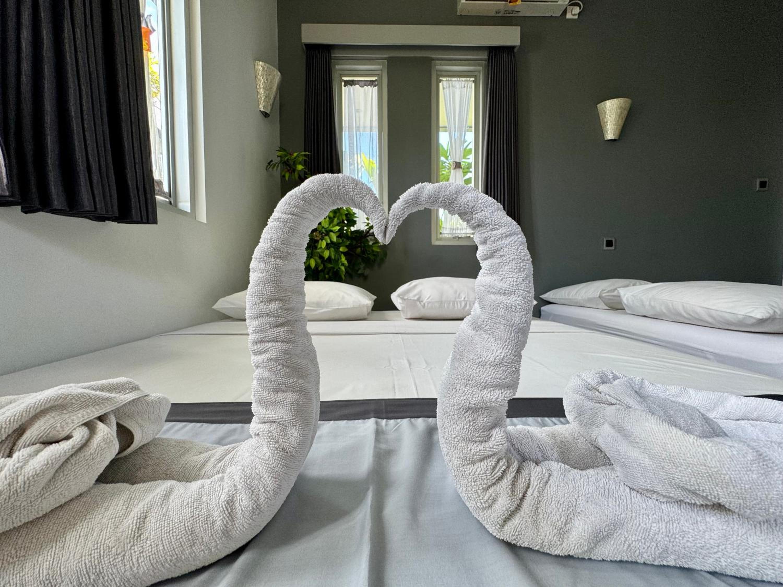 From the moment we arrived we liked the welcoming staff there and the nice swimming pool in the middle of the villa yard. The staff was very friendly and very polite and always ready to help. The rooms were very nice and the bed very big and comfort. It was nice that we could even dive in the pool late at night for a refreshing swim and throwing the balls in the basket above the swimming pool. Also the owner John welcomed us with warm feelings and we felt great about the good contact we had with him and the staff. We liked the dog, he had a very complicated name, hahahah so we called him Harry, hahaah We took many pictures and we had a lovely holiday. The beaches on Lombok are very nice and the Wildlife park is great. Also the snorkling on Gille Islands our daughter liked very much.