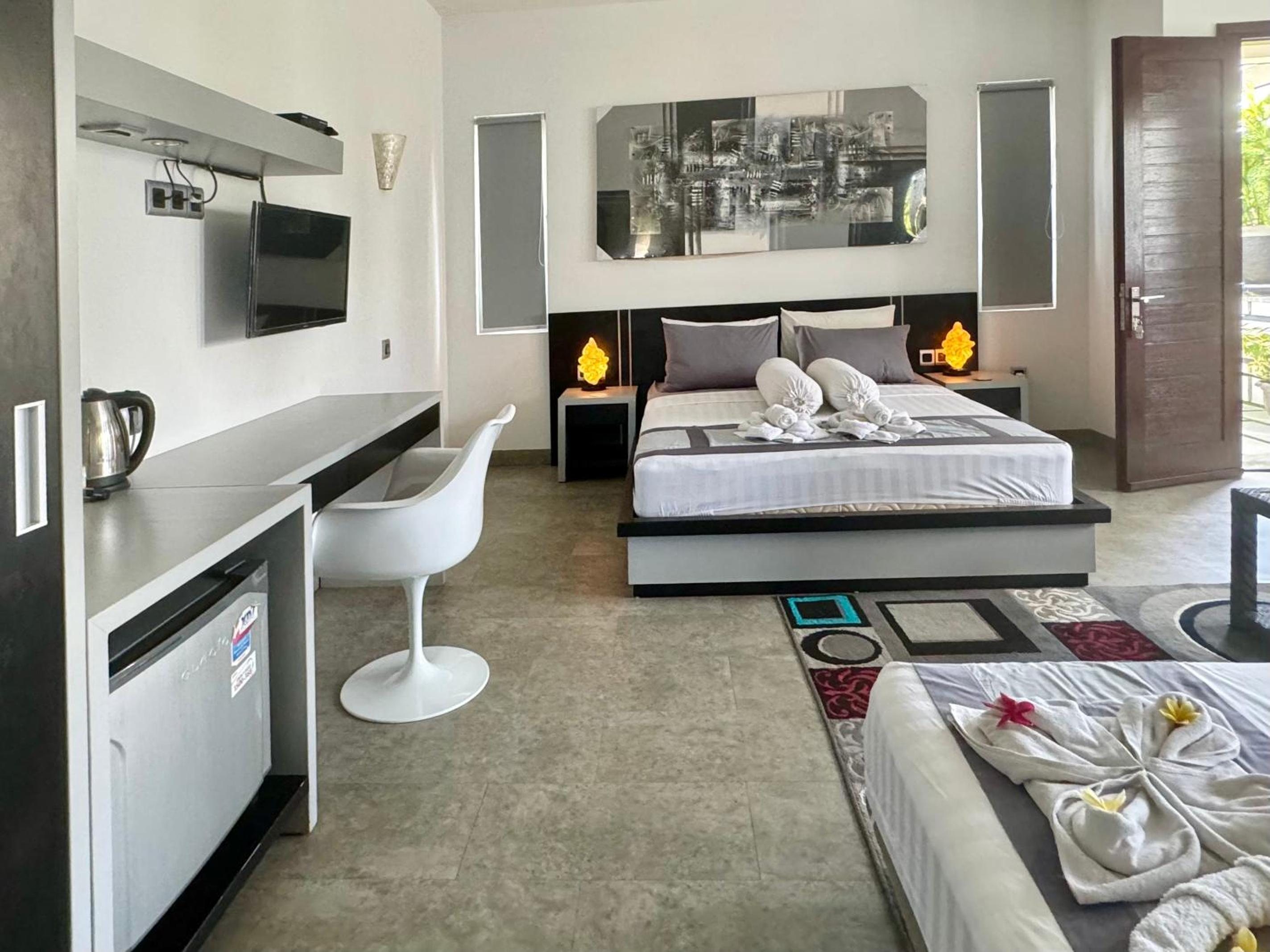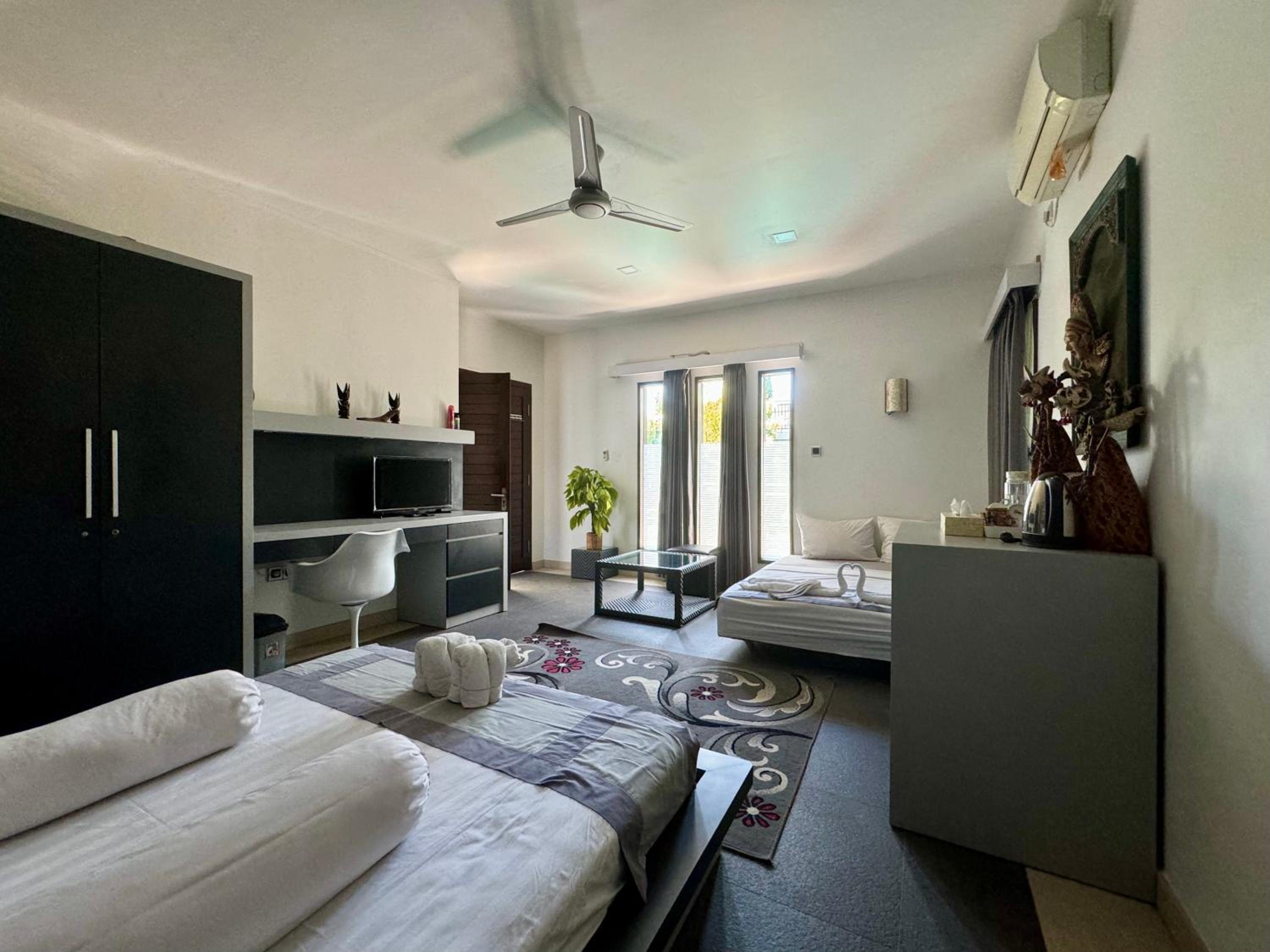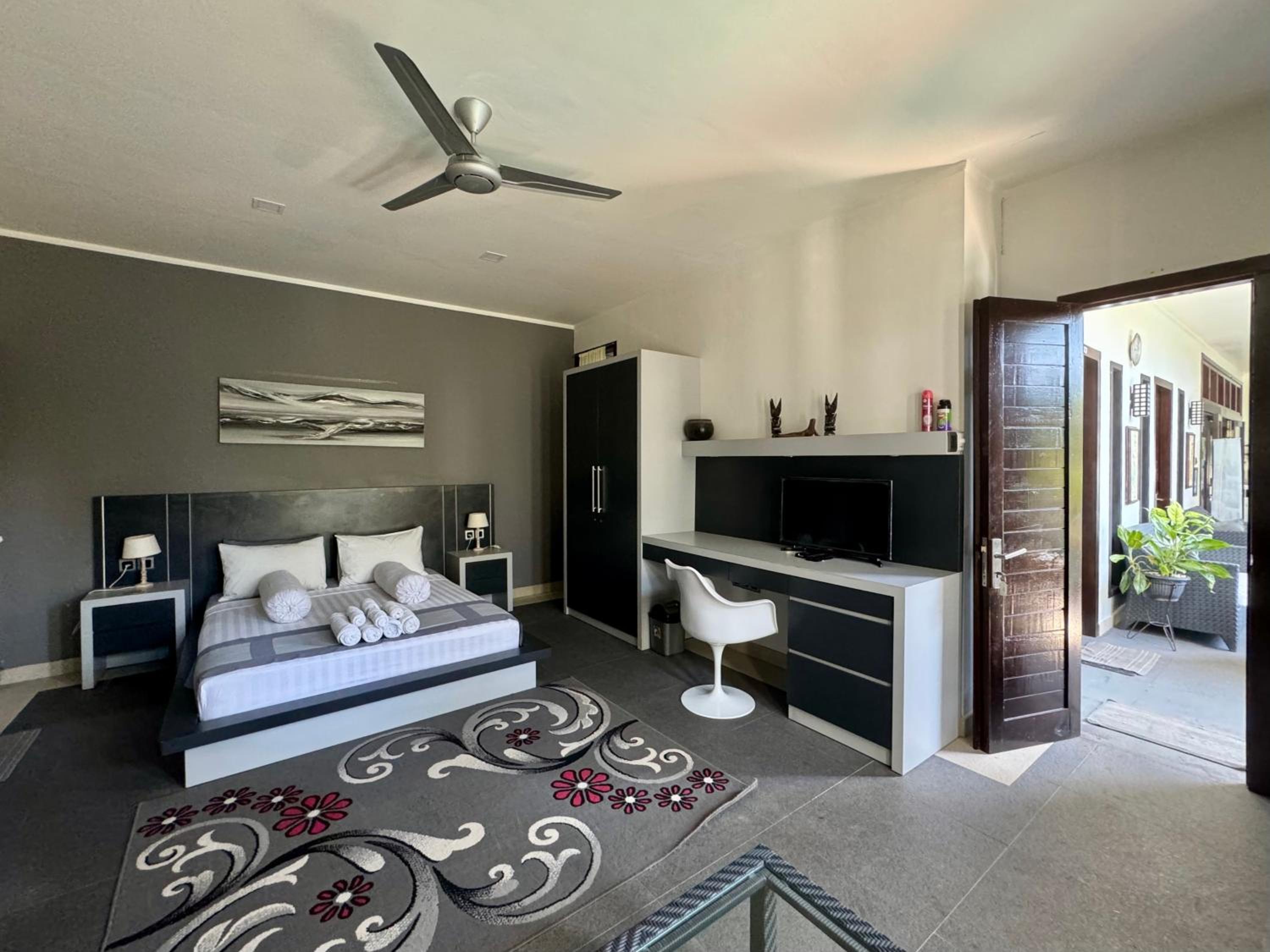 From the moment we arrived we liked the welcoming staff there and the nice swimming pool in the middle of the villa yard. The staff was very friendly and very polite and always ready to help. The rooms were very nice and the bed very big and comfort. It was nice that we could even dive in the pool late at night for a refreshing swim and throwing the balls in the basket above the swimming pool. Also the owner John welcomed us with warm feelings and we felt great about the good contact we had with him and the staff. We liked the dog, he had a very complicated name, hahahah so we called him Harry, hahaah We took many pictures and we had a lovely holiday. The beaches on Lombok are very nice and the Wildlife park is great. Also the snorkling on Gille Islands our daughter liked very much.