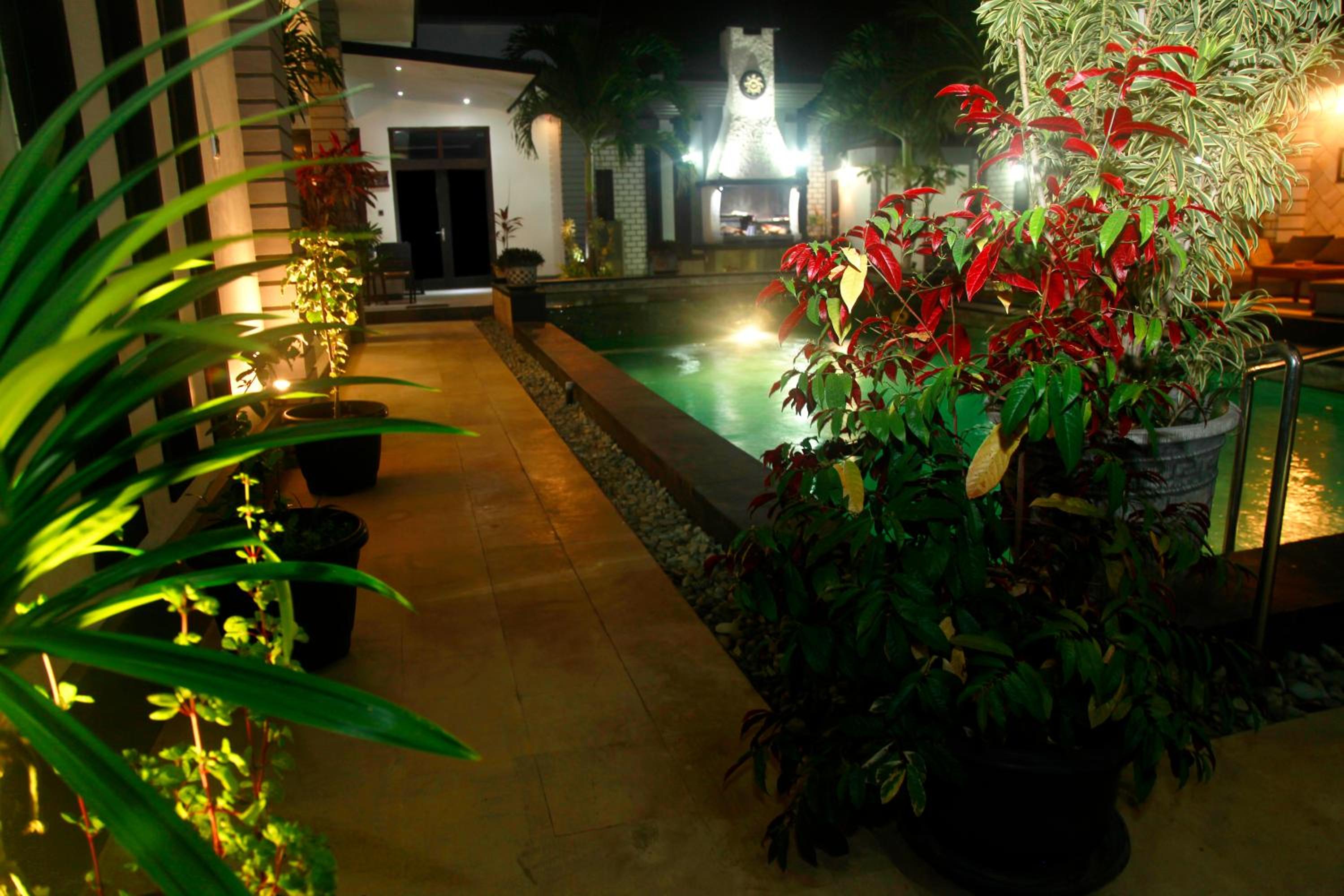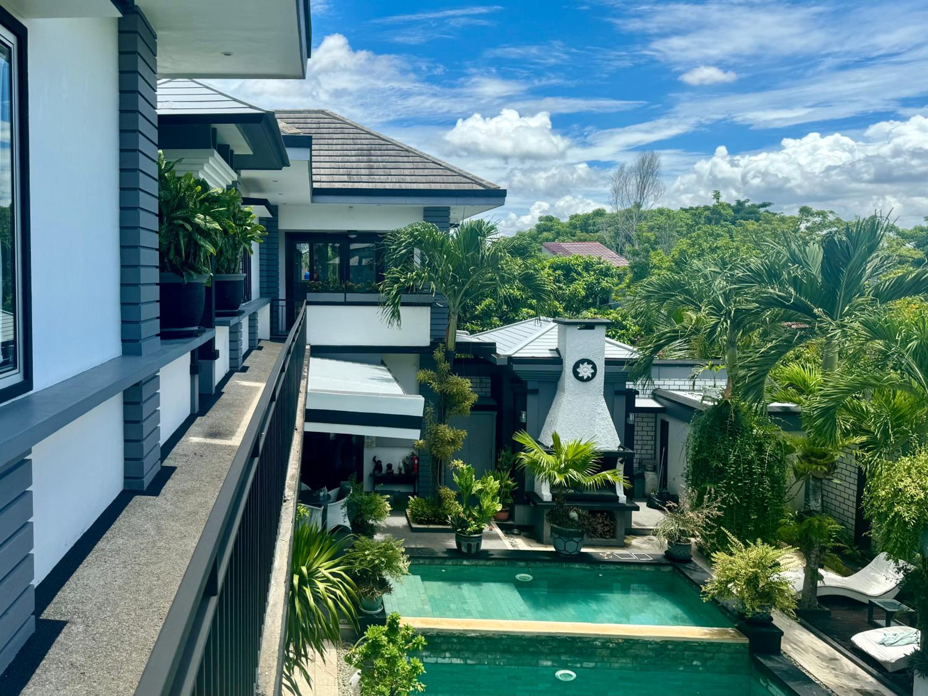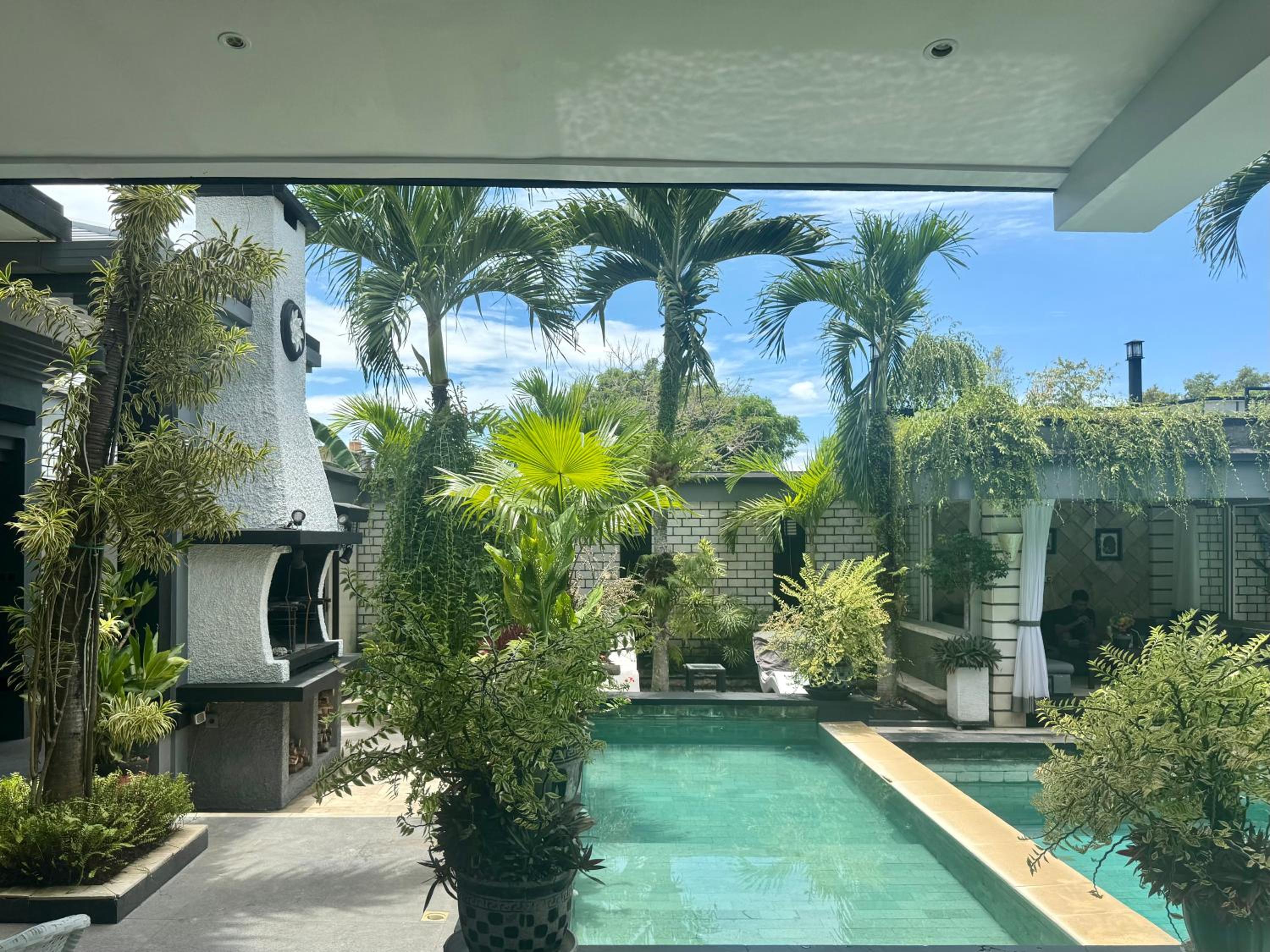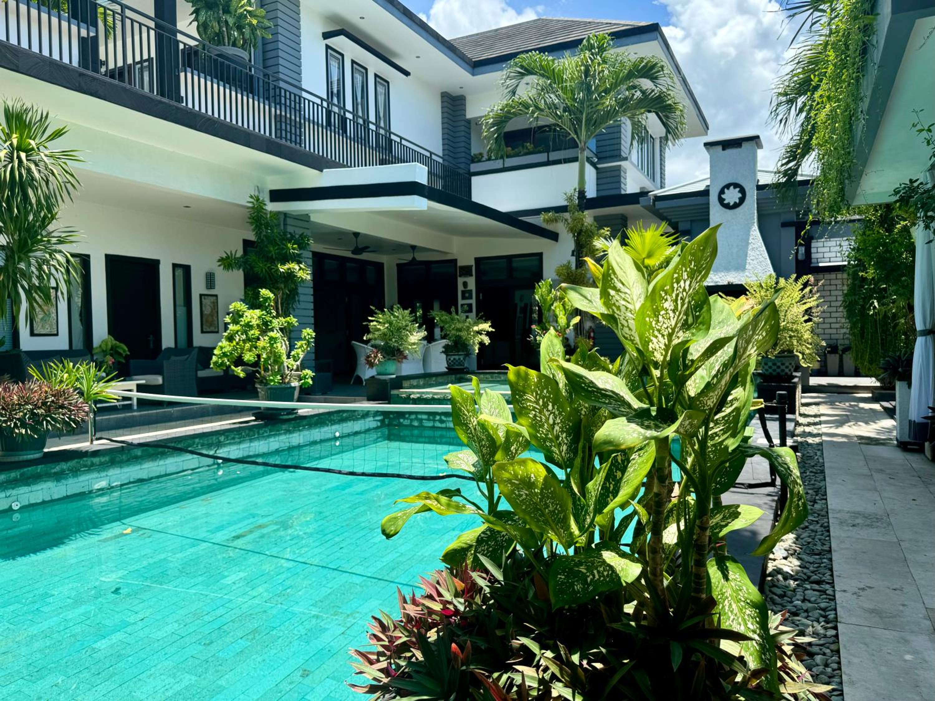 Garden & Pool Oasis: Enjoy a serene garden setting and take a dip in the outdoor pool at Villa Rumah Putih Abu Abu. Perfect for relaxation and unwinding.