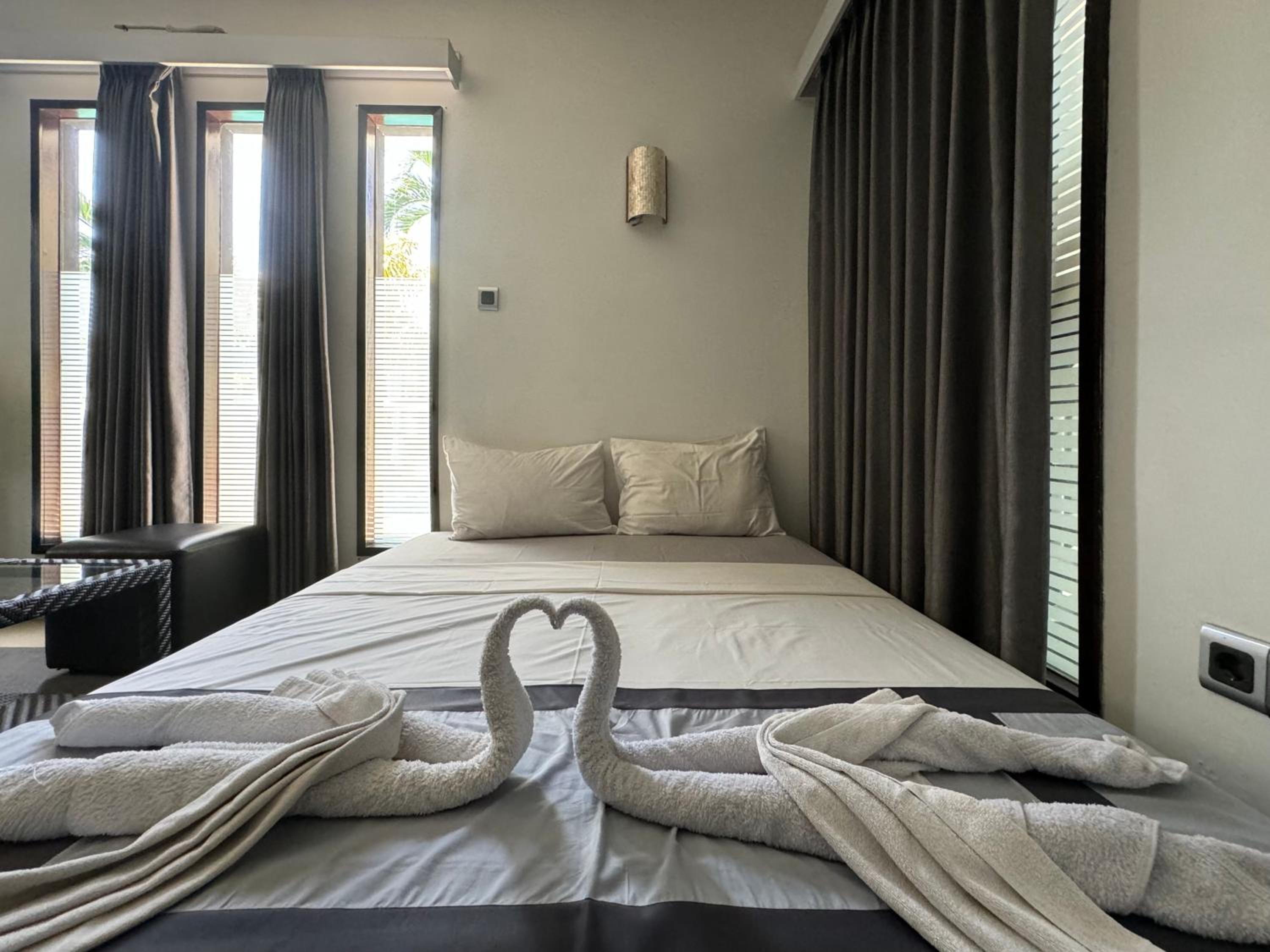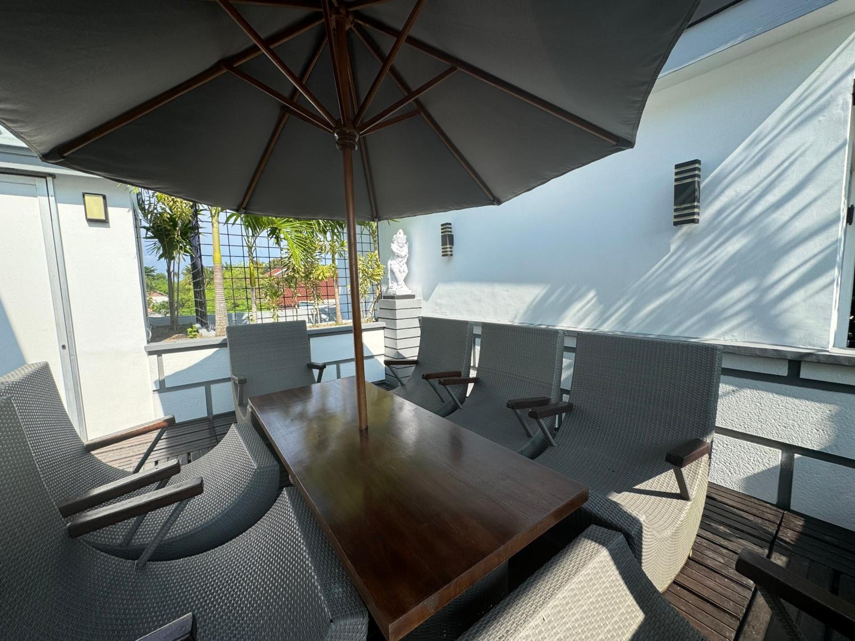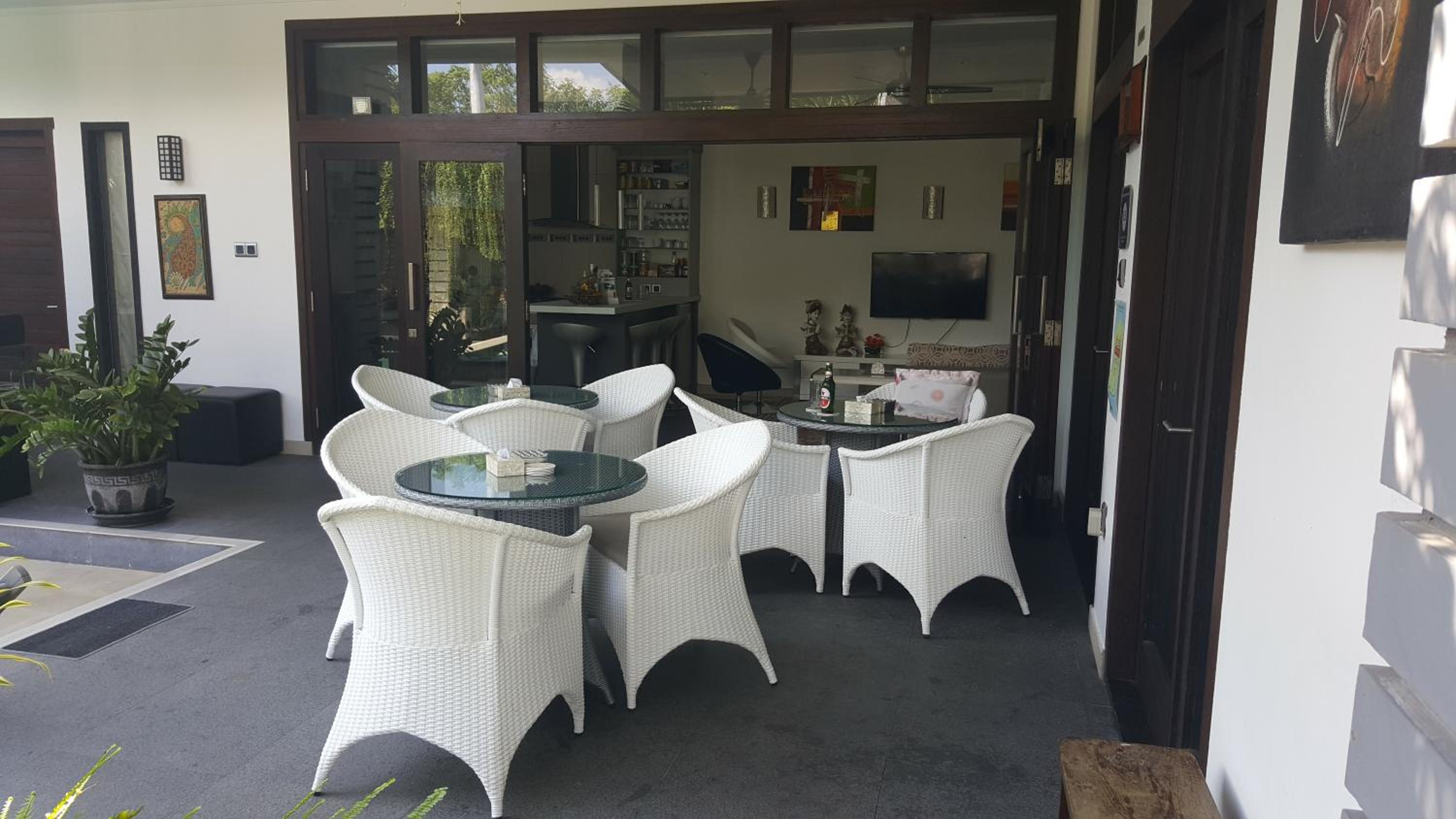 When I booked the villa, it said in the description the villa was located 500 meters from the beach, which was true, but the real areas of good beaches, restaurants, sightseeing things were a bit of distance from the villa, as we always needed to call a private driver to have a day out. Also, at first we had the impression that the breakfast menu was restricted, as not much choice, which felt a bit disappointing, but after mentioning this with the owner John, he said happily we could have anything we wanted. Maybe a form of miscommunication or mention this on the breakfast menu, so we were aware of this from the first day. Also, the airconditioning in the room did not work properly, but I do not like to feel that coldness on my sweating body as flue comes very fast in this case. The airconditioning was directly pointing at the bed. A bit of discomfort was the many mosques in the area, all active at the same time sometimes and all you hear is the muslim prayer from all directions.