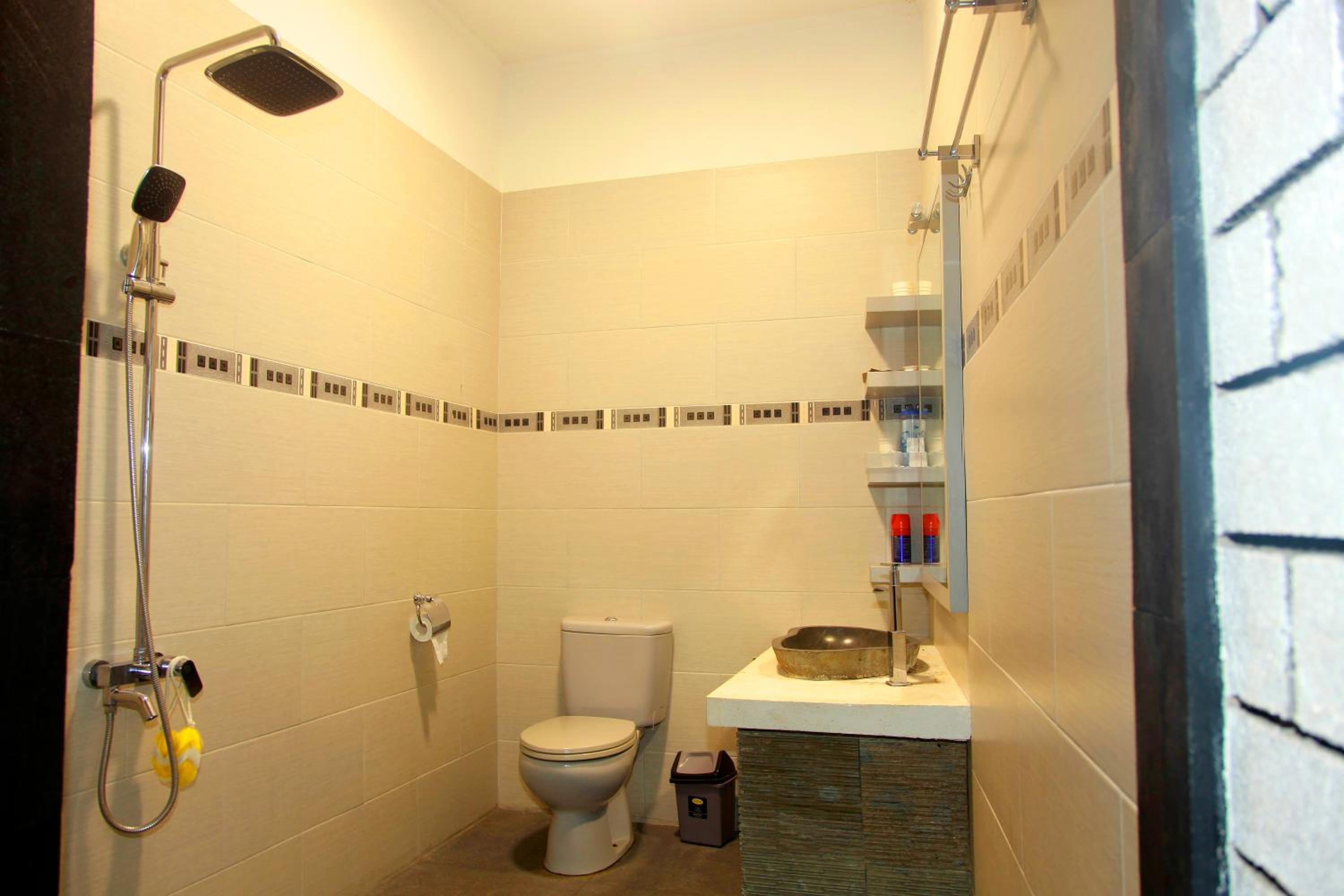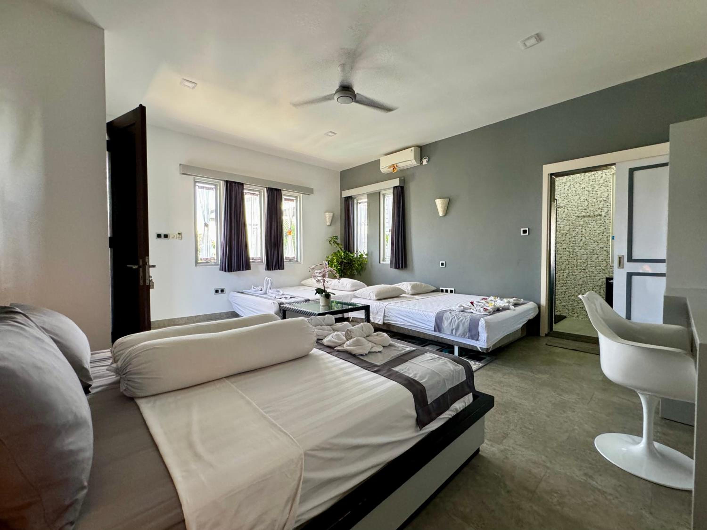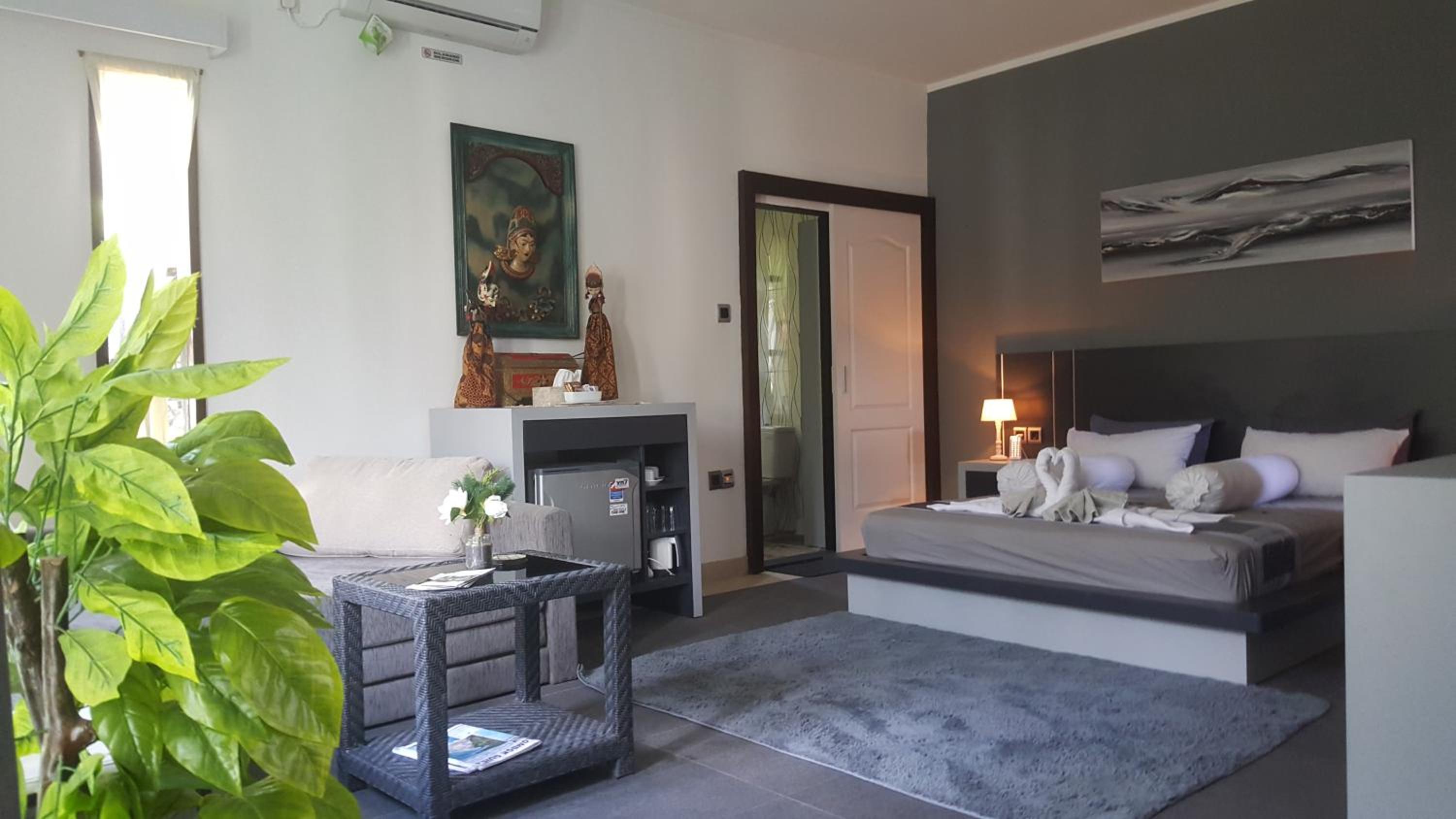 When I booked the villa, it said in the description the villa was located 500 meters from the beach, which was true, but the real areas of good beaches, restaurants, sightseeing things were a bit of distance from the villa, as we always needed to call a private driver to have a day out. Also, at first we had the impression that the breakfast menu was restricted, as not much choice, which felt a bit disappointing, but after mentioning this with the owner John, he said happily we could have anything we wanted. Maybe a form of miscommunication or mention this on the breakfast menu, so we were aware of this from the first day. Also, the airconditioning in the room did not work properly, but I do not like to feel that coldness on my sweating body as flue comes very fast in this case. The airconditioning was directly pointing at the bed. A bit of discomfort was the many mosques in the area, all active at the same time sometimes and all you hear is the muslim prayer from all directions.