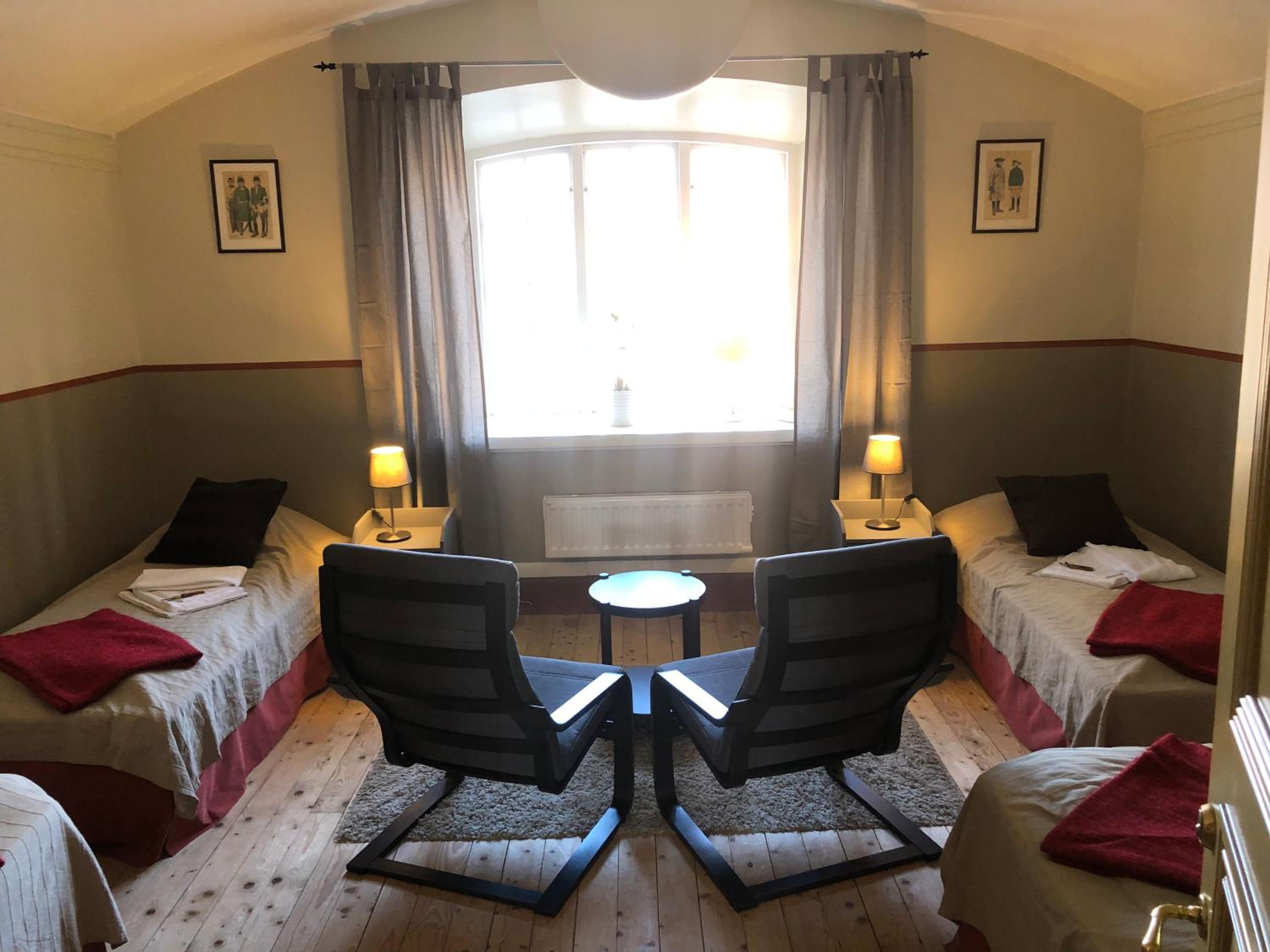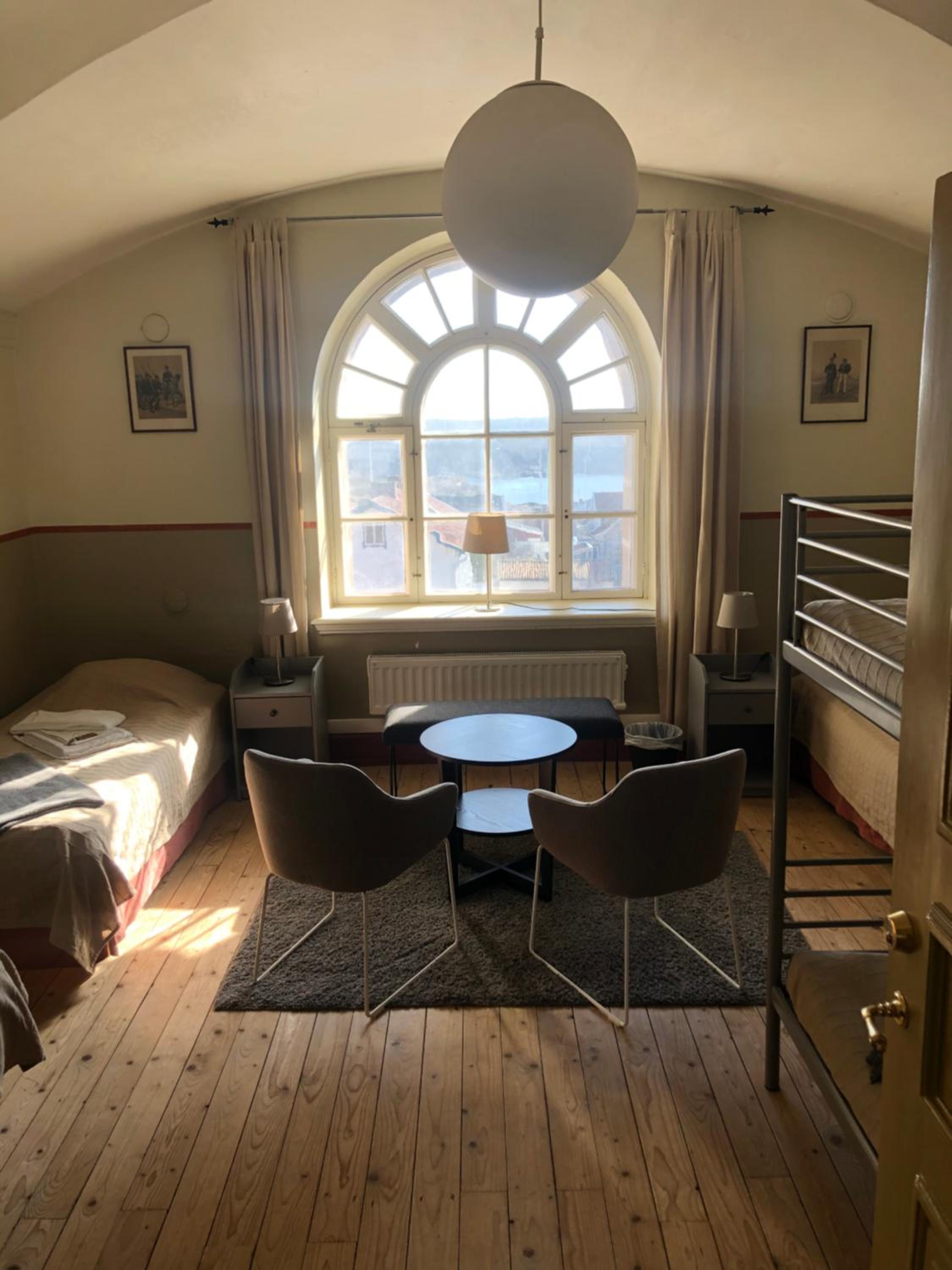 Spännande att bo på fästningens område! Fina rum och bra gemensamhetsutrymmen. Jättegod frukost och serviceinriktad trevlig personal.