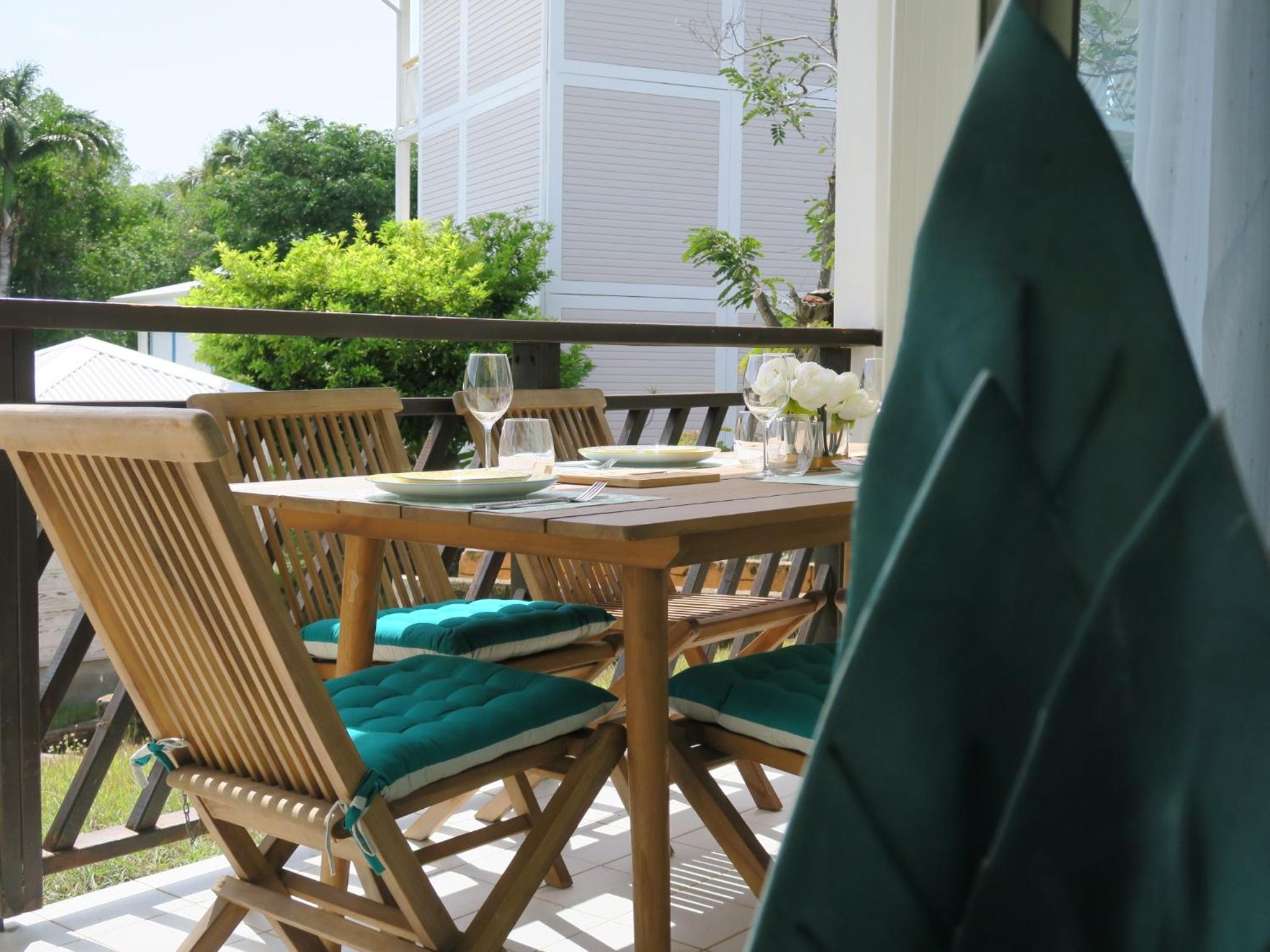 The complex that the rental was in was nice, with a parking lot, access to a private beach, and proximity to restaurants in Saint Francois. The rental had a pleasant little deck. The air conditioning worked well.