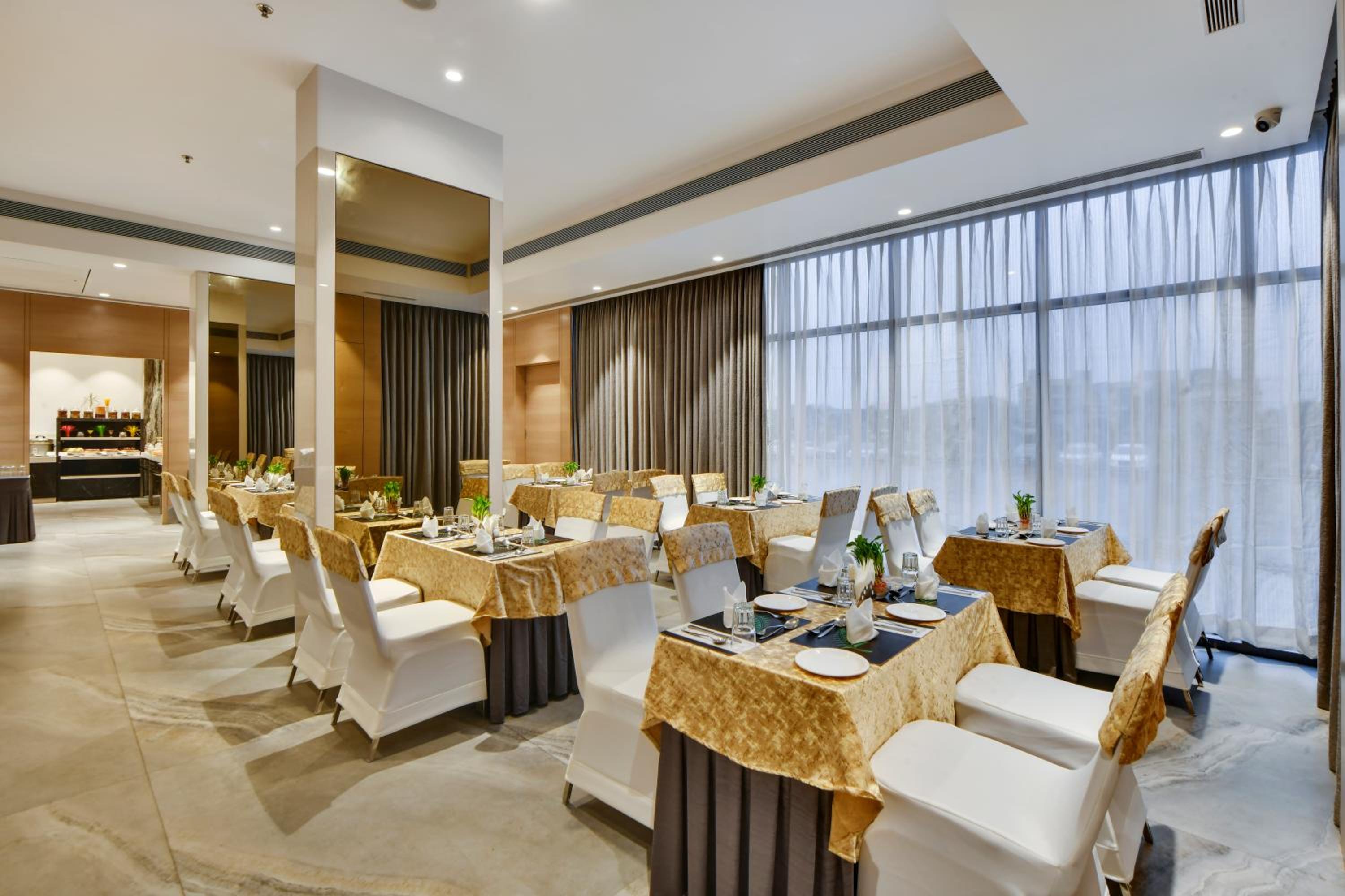 Indulge in a variety of dining options at the hotel, with a restaurant serving American, Chinese, and French cuisine. Guests can start their day with a buffet, à la carte, or continental breakfast.