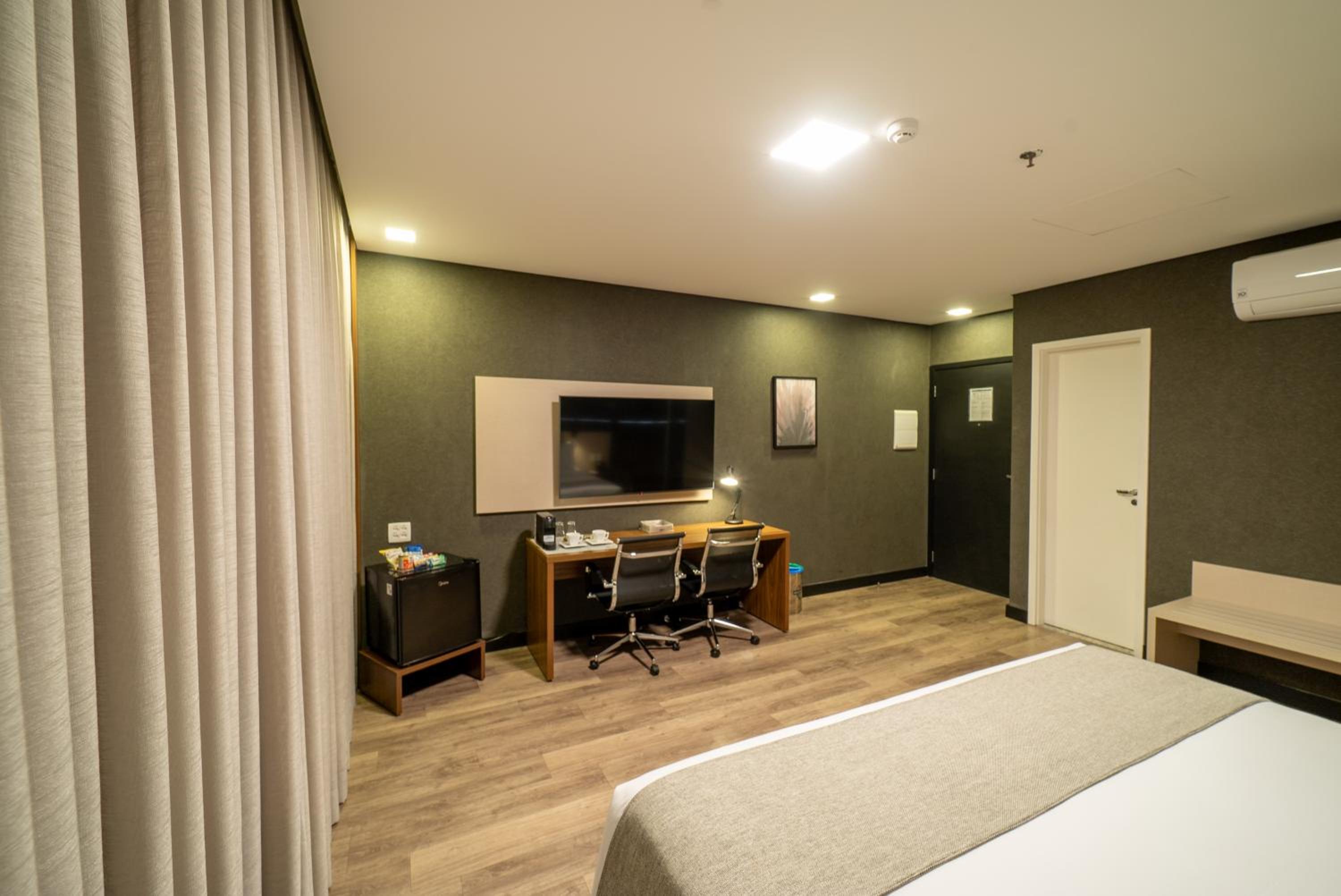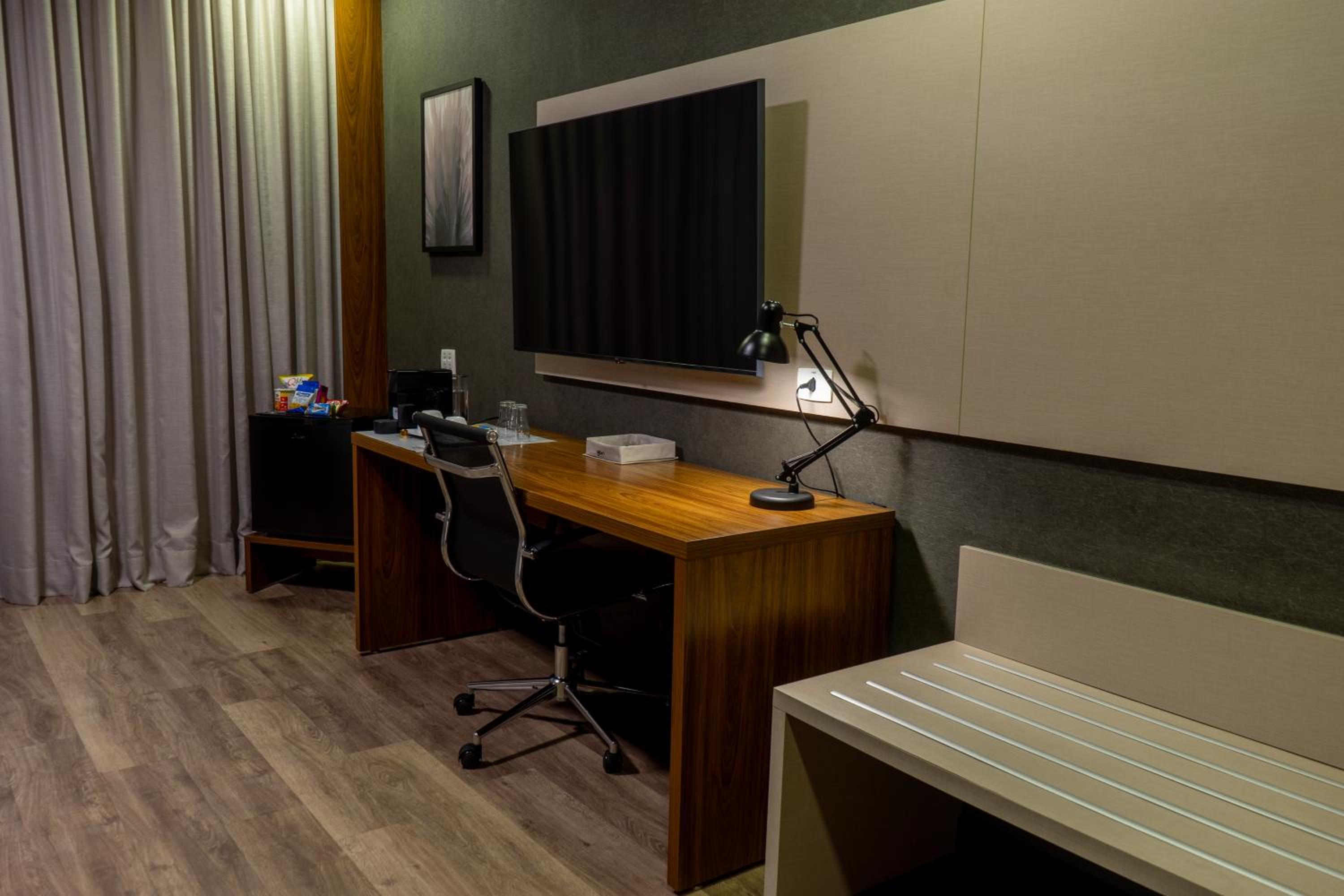 Experience comfort and style at URBAN by UNU Osasco Hotel with well-appointed rooms featuring city views, air conditioning, and modern amenities like flat-screen TVs and free WiFi.