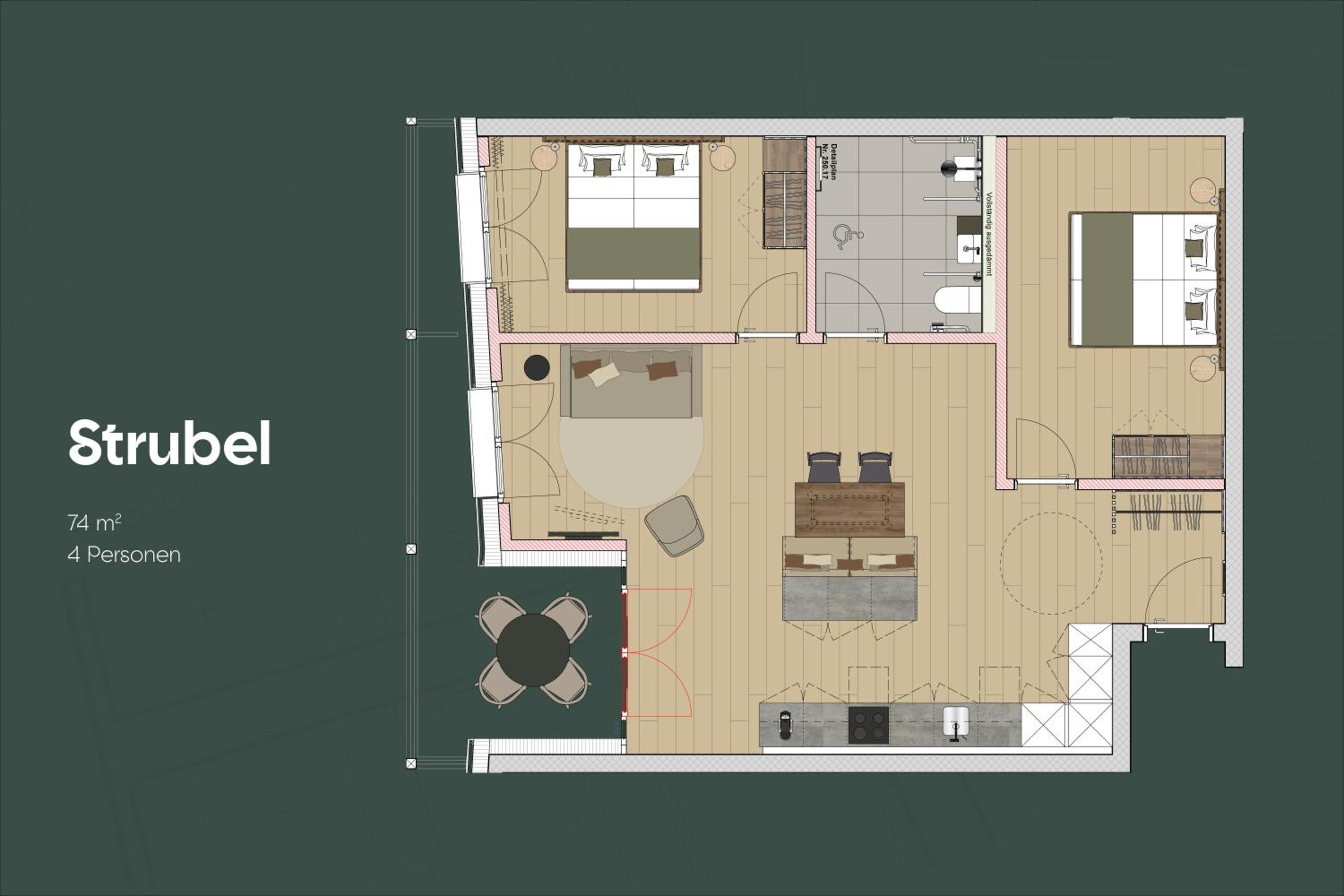 Das alles gut erreichbar war mit Kinderwagen. Mann hat nichts von den Nachbarn gehört. Kein schlechtes Gewissen gehabt wenn unser Baby geschrien hat. Die ganze Einrichtung und der super Ausblick. Das "Buch" ist auch super da ist alles super beschrieben und im Notfall gibt es noch eine Rezeption zum nachfragen.