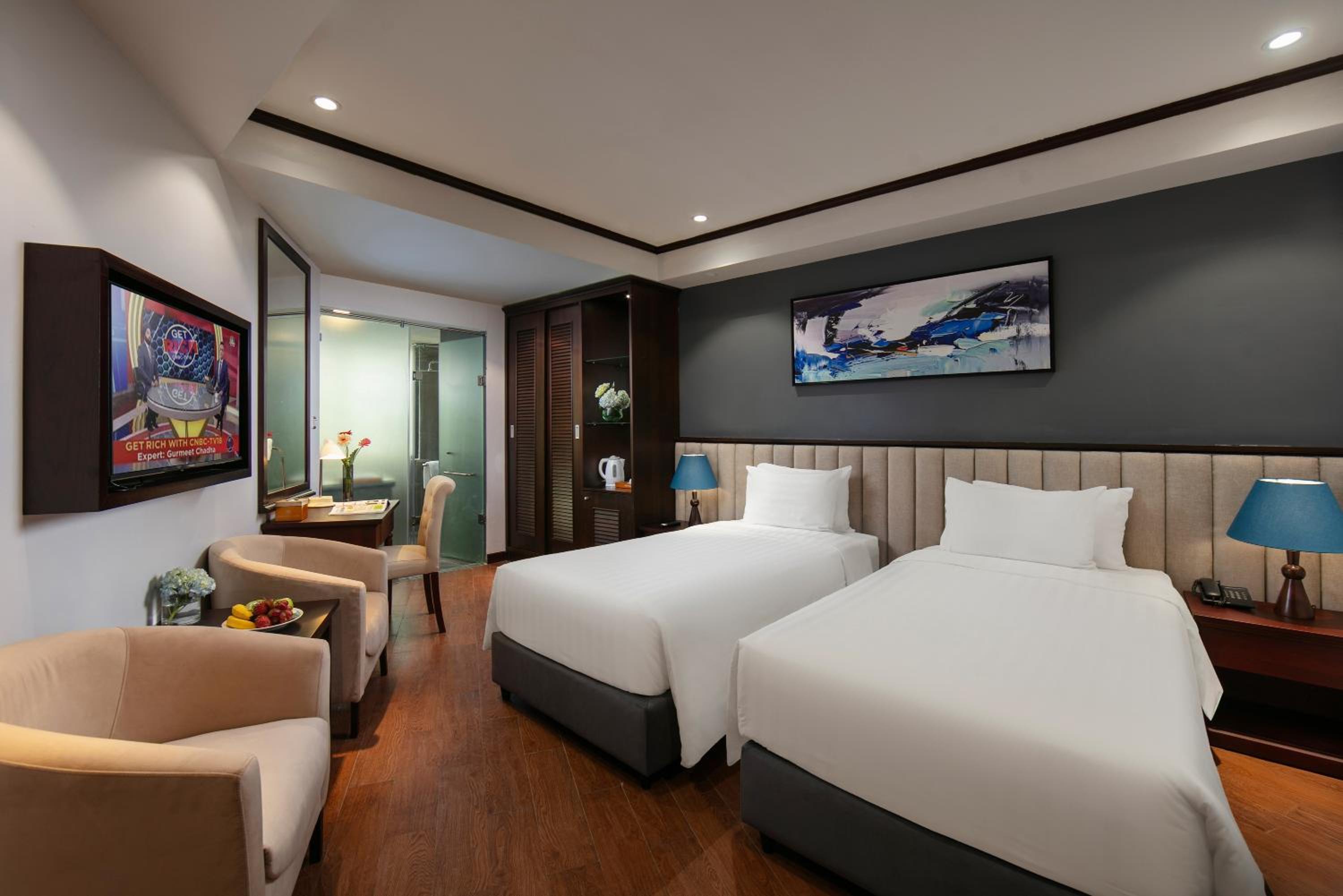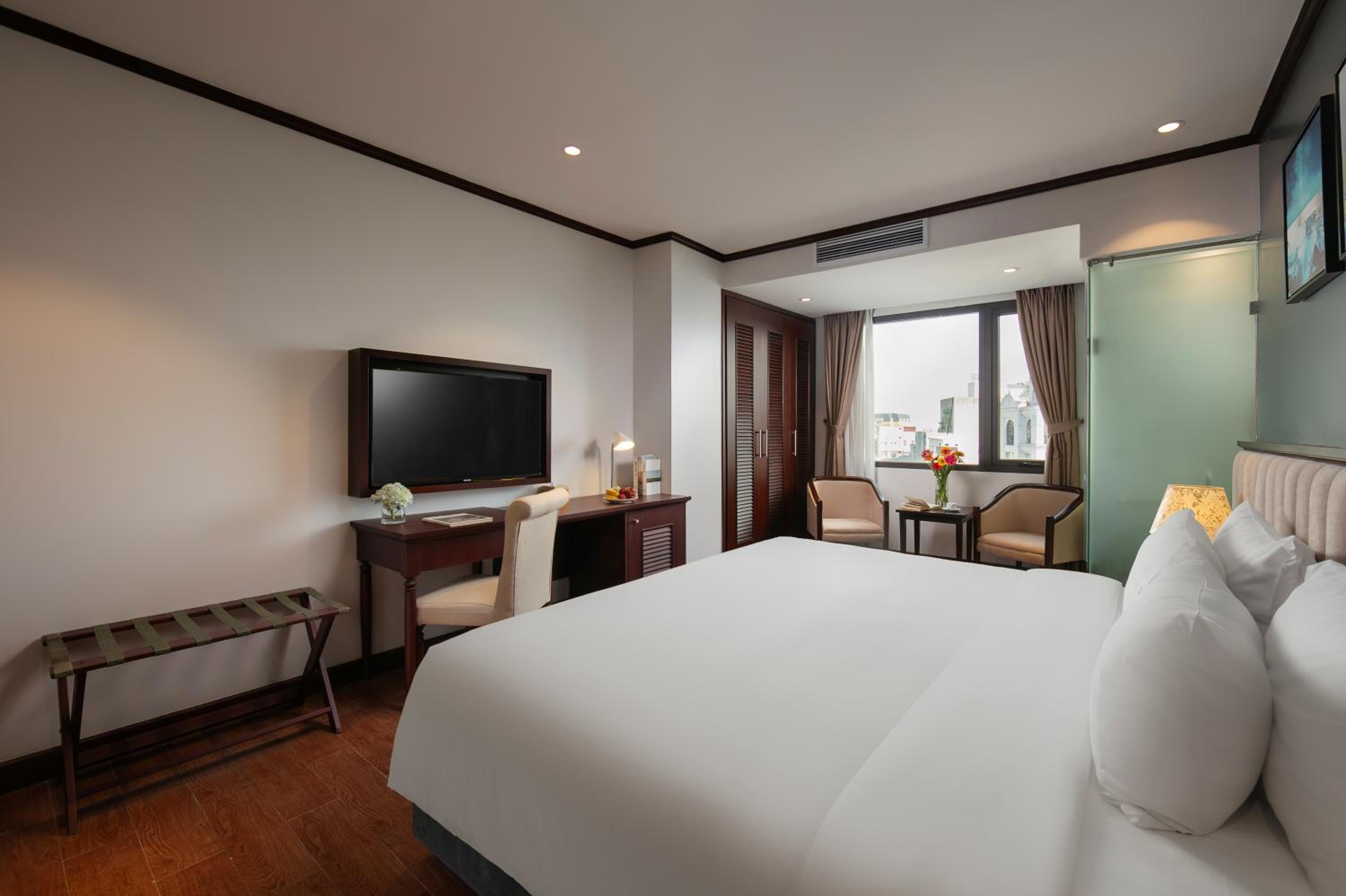 Upon checking in the room smelled like smoke (someone perhaps smoked inside previously). The front desk offered a new room, but only after coming upstairs to check themselves (like we were lying?) The second room the bathroom door got locked from the inside, so the mechanic had to come unlock it - quite disappointed checkin experience but it was handled well. Initially we were told a 4% extra fee would be applied for card payment- despite a no card fee notice on booking.com. eventually it was waved, but it was quite annoying that this is not managed better (no other respectable hotel chains in VN charge such fees).
