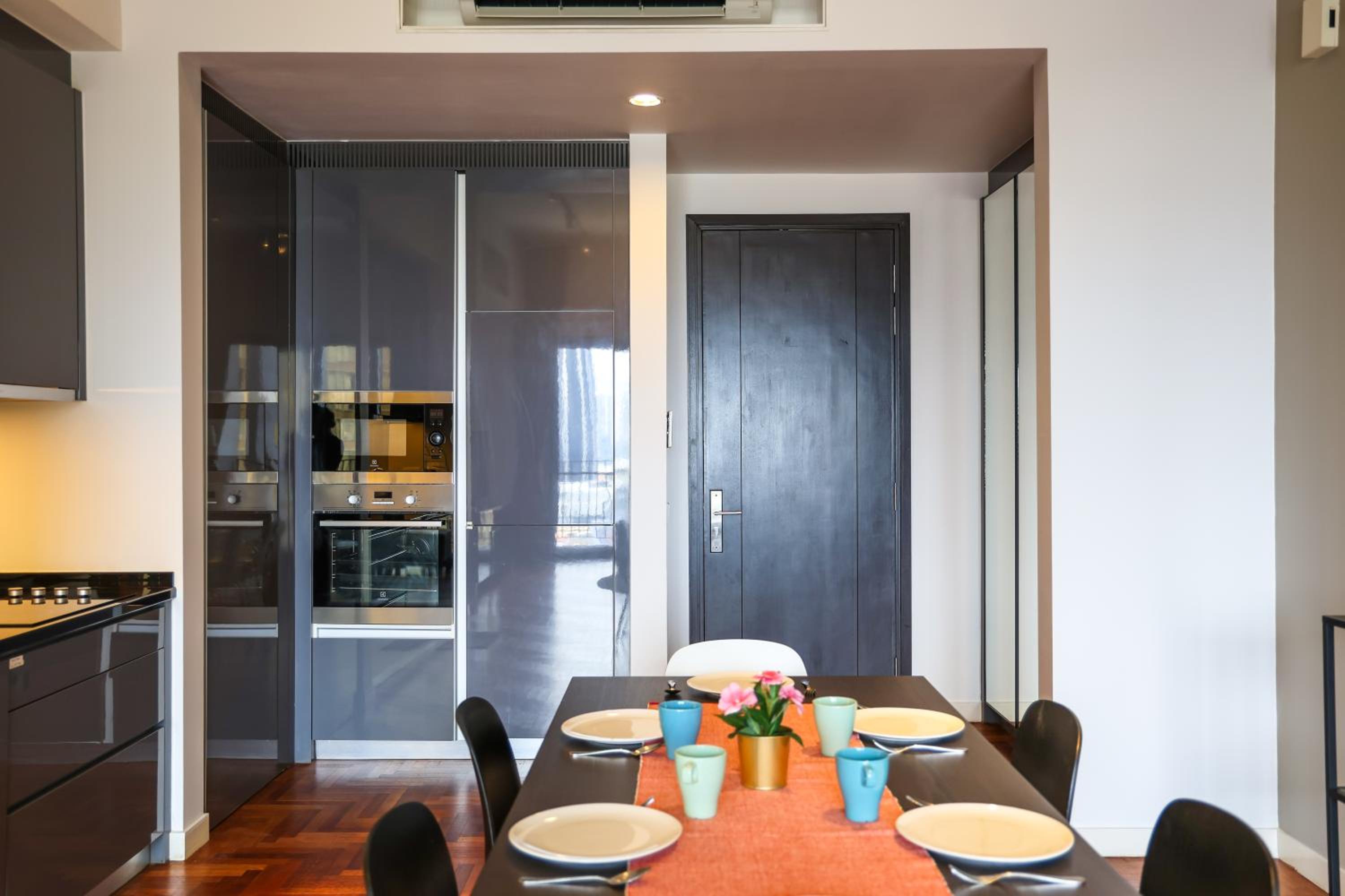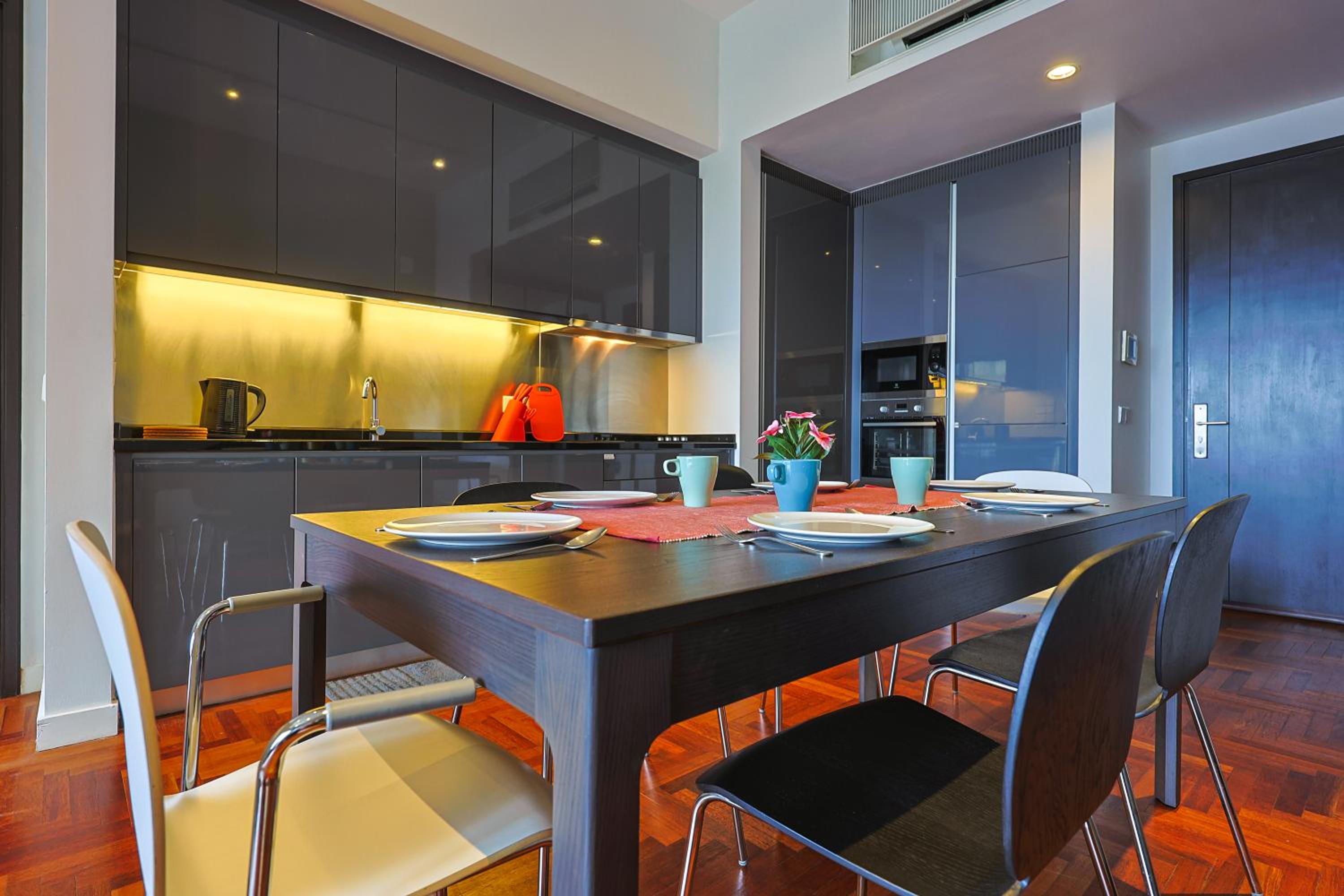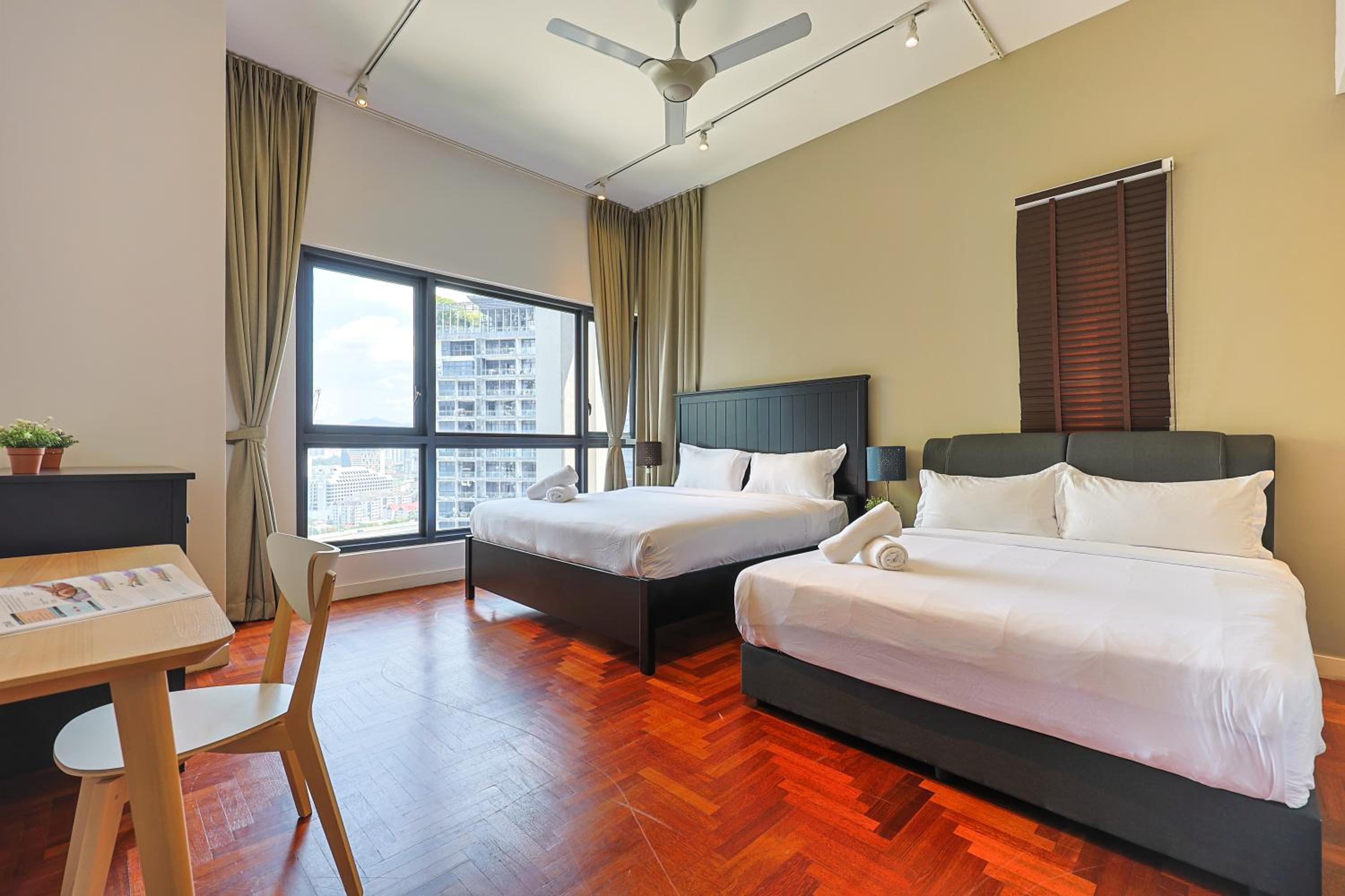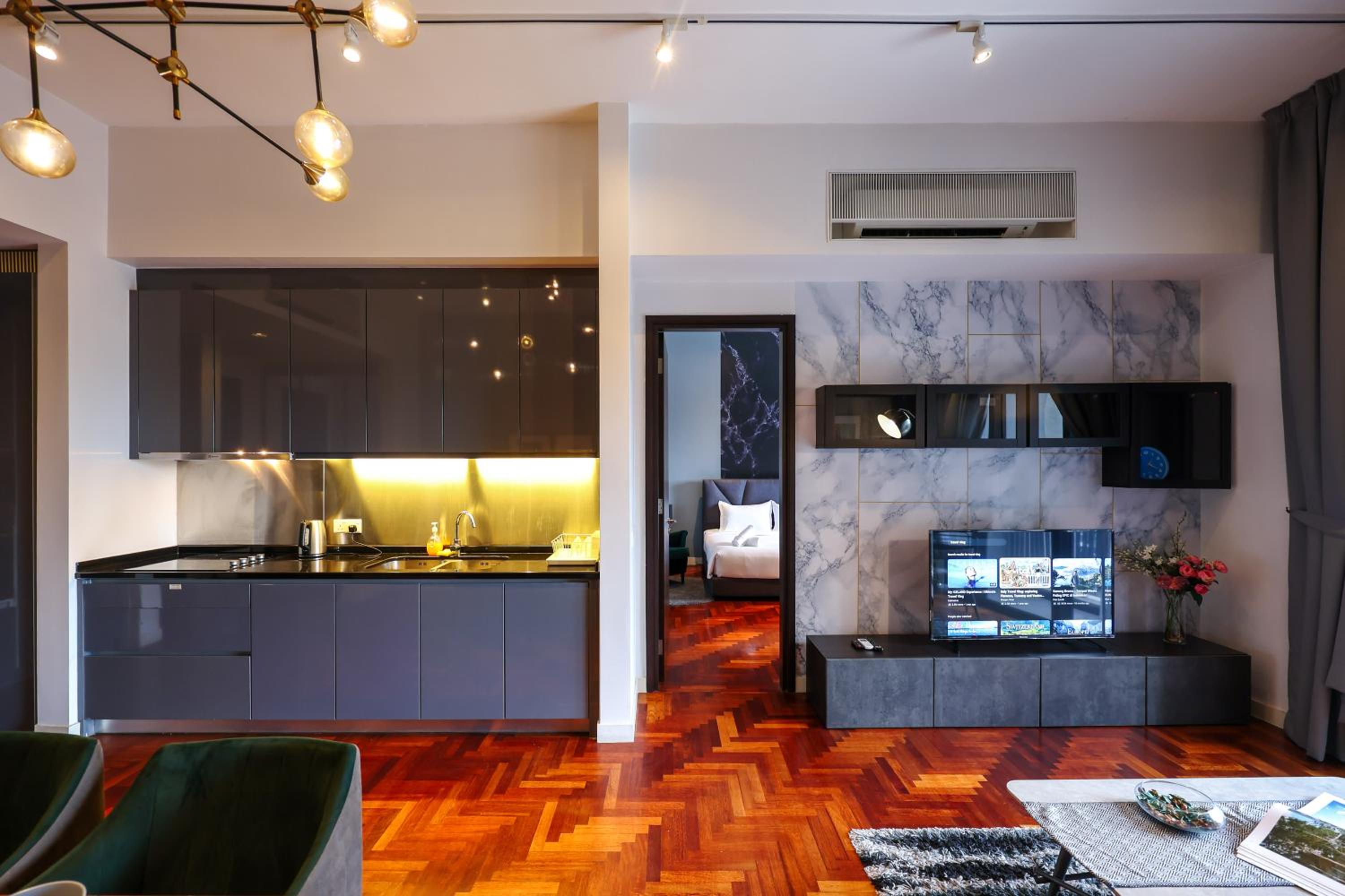 Indulge in beautifully designed rooms with modern amenities and stunning city views. Enjoy a comfortable stay with a fully equipped kitchen, flat-screen TV, and a private bathroom for your convenience.