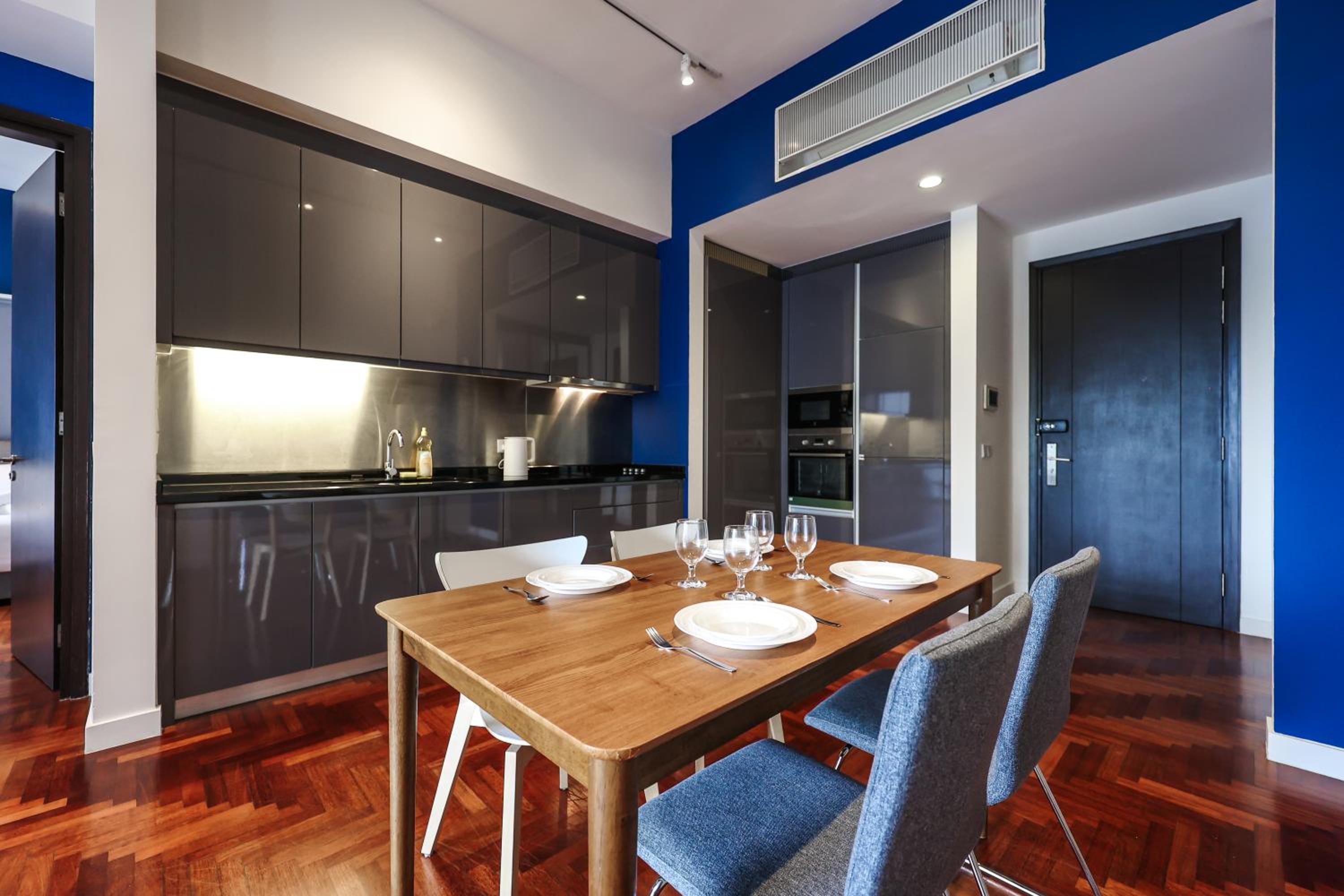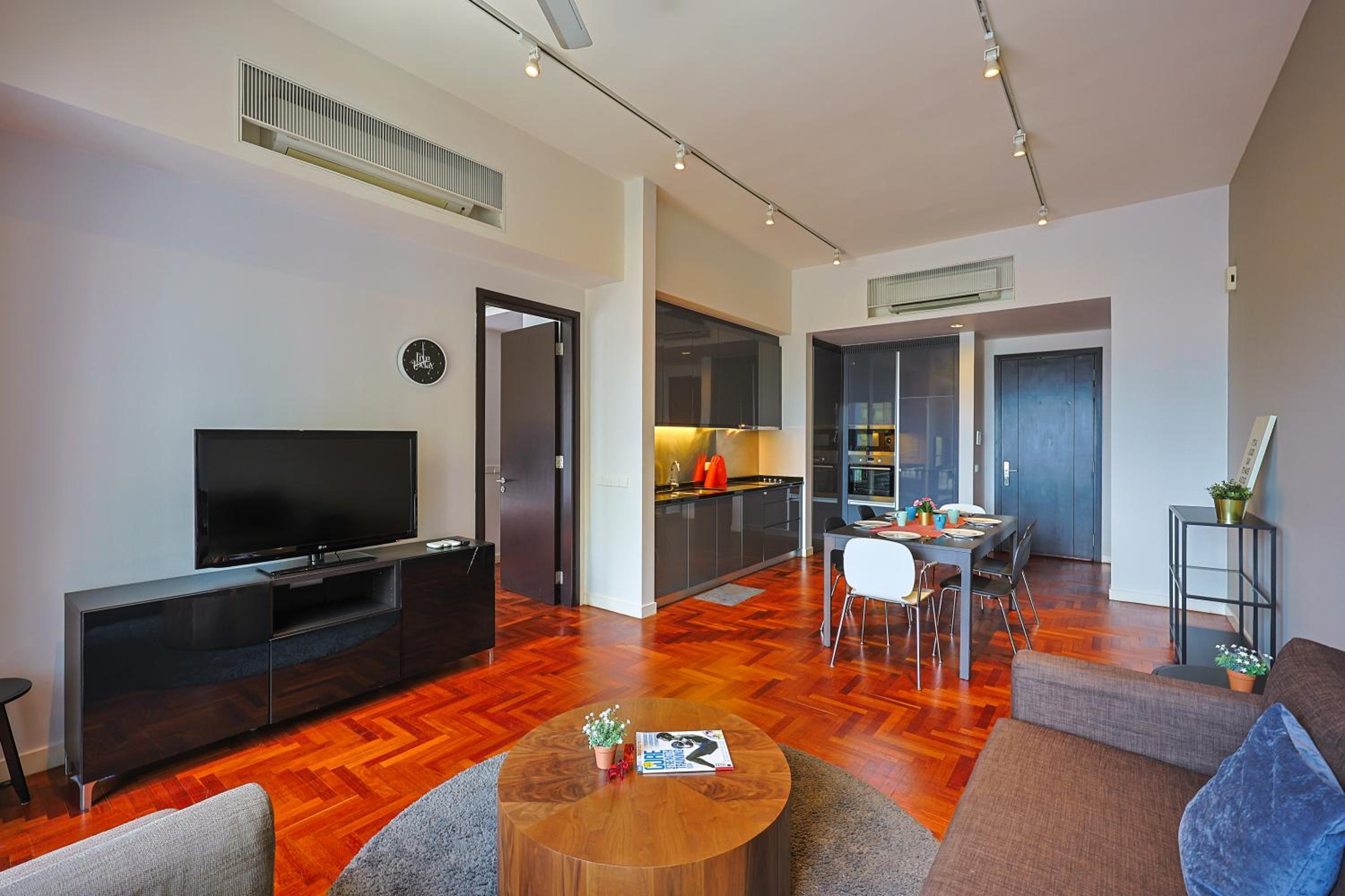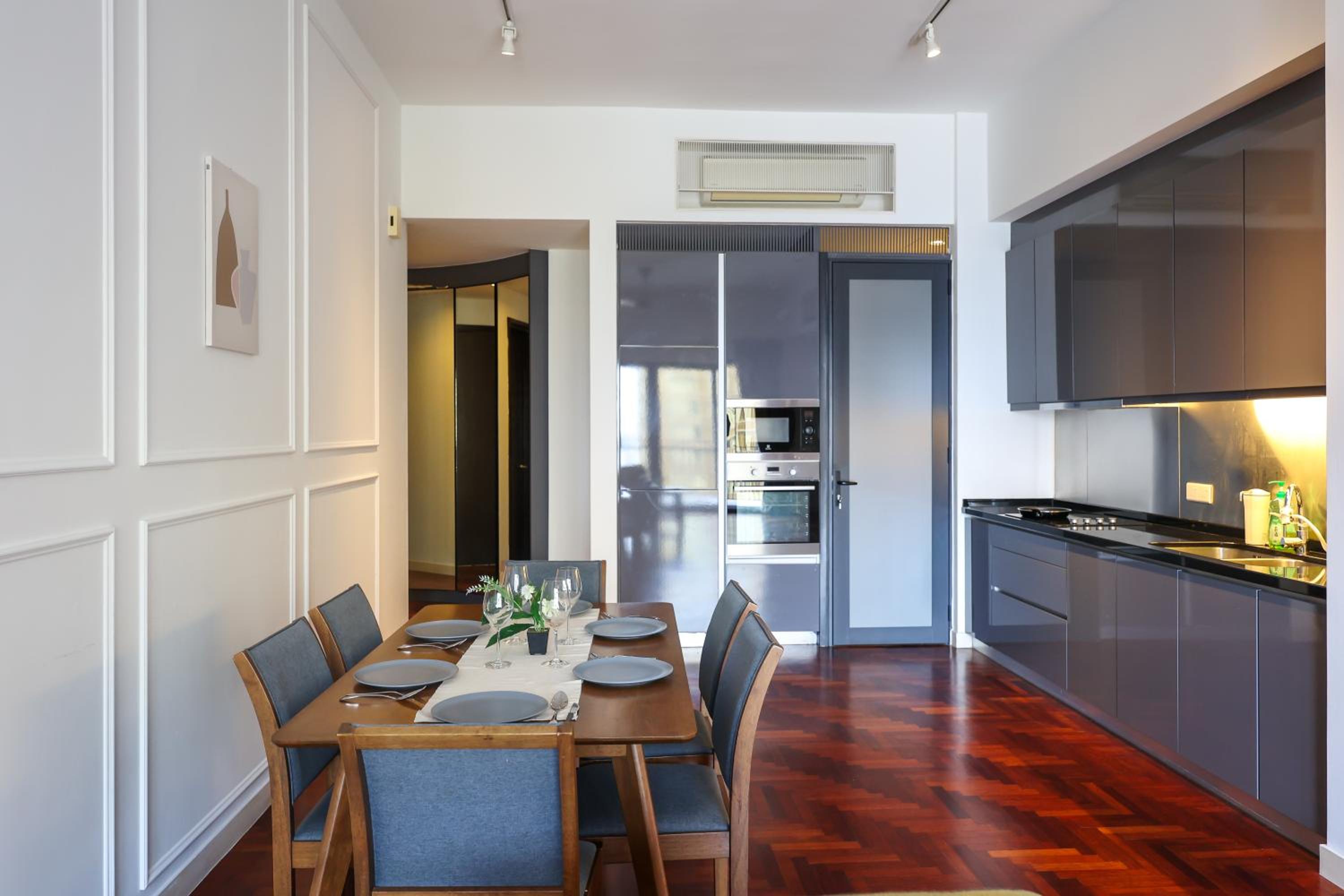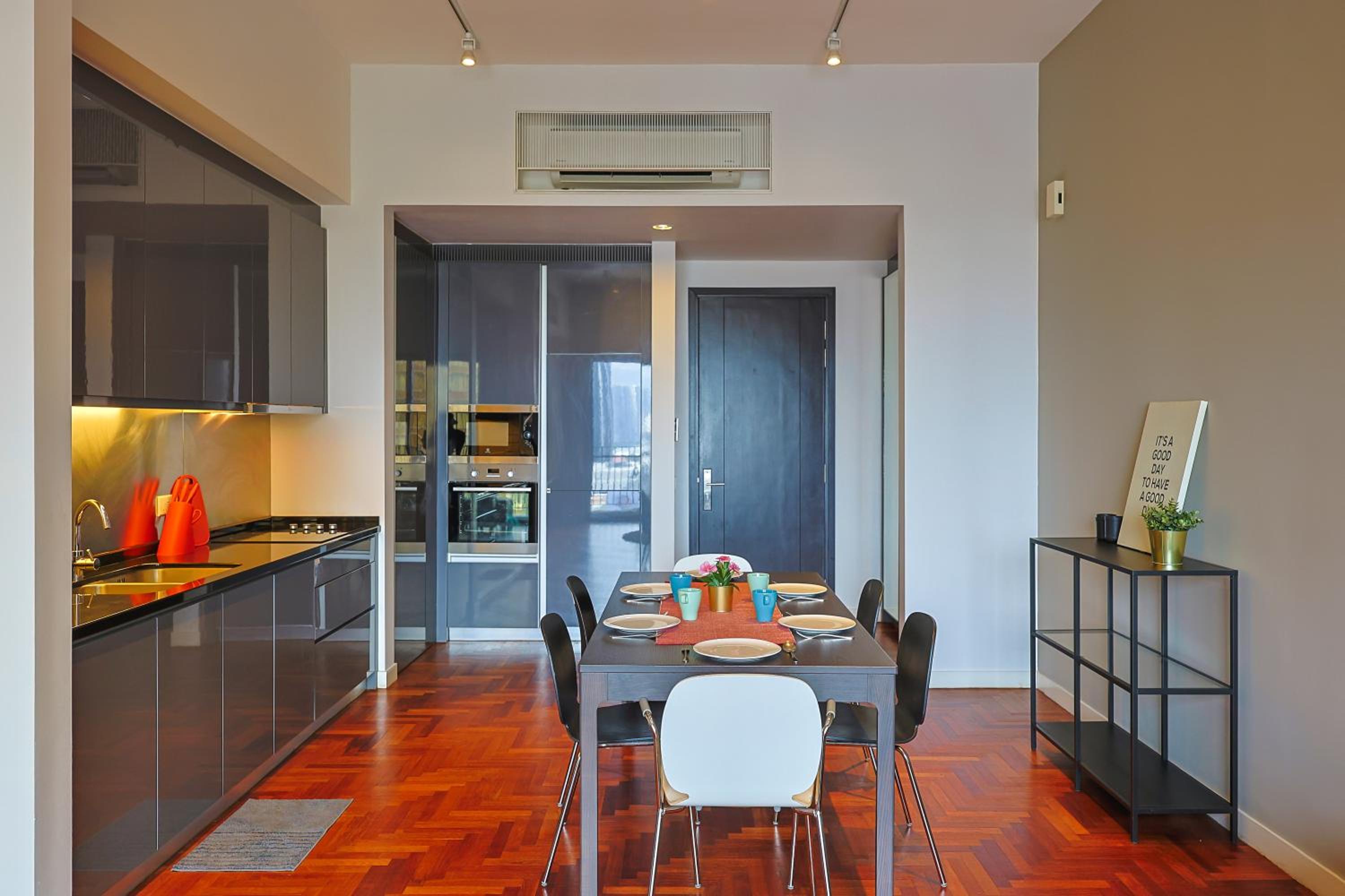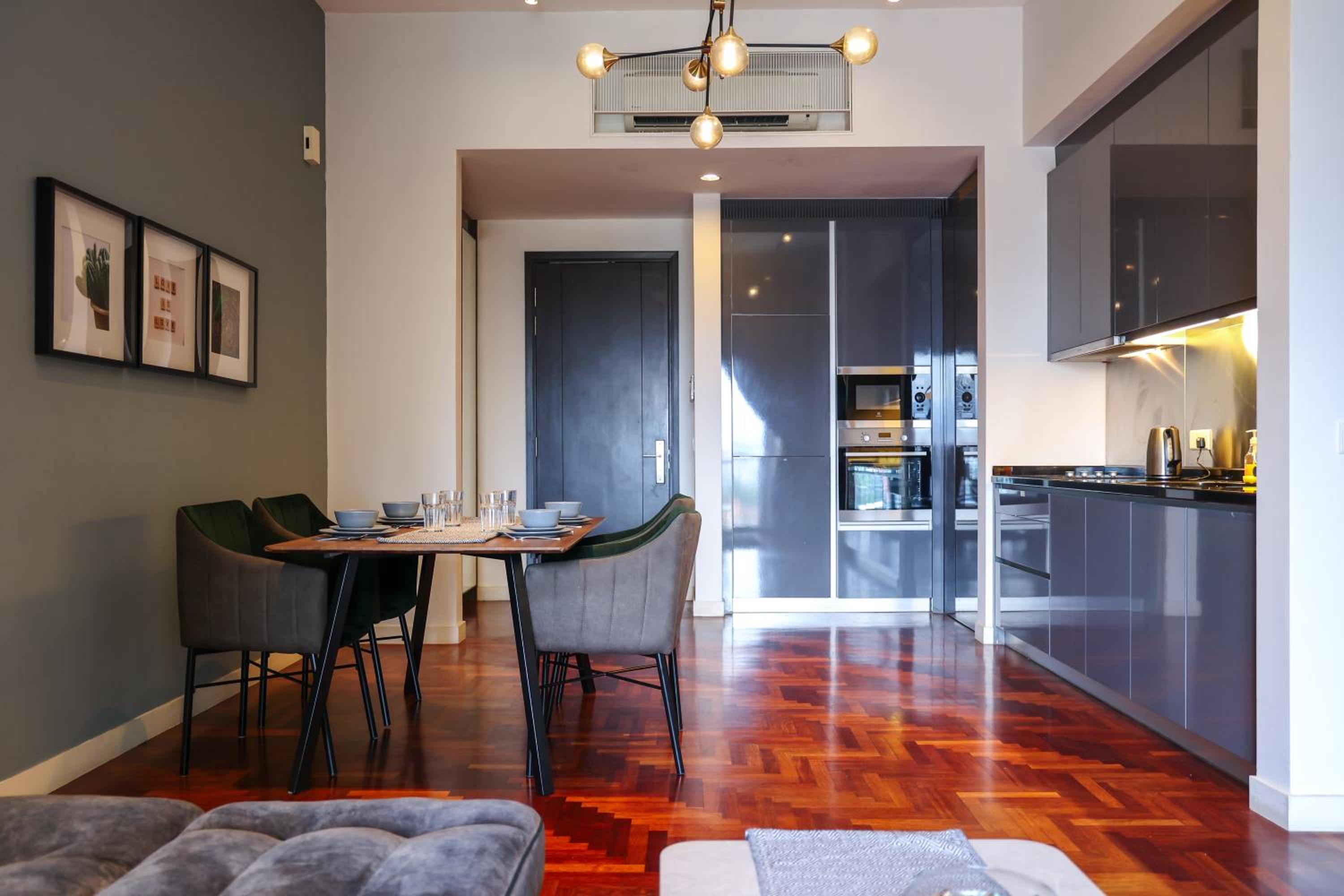 Indulge in beautifully designed rooms with modern amenities and stunning city views. Enjoy a comfortable stay with a fully equipped kitchen, flat-screen TV, and a private bathroom for your convenience.
