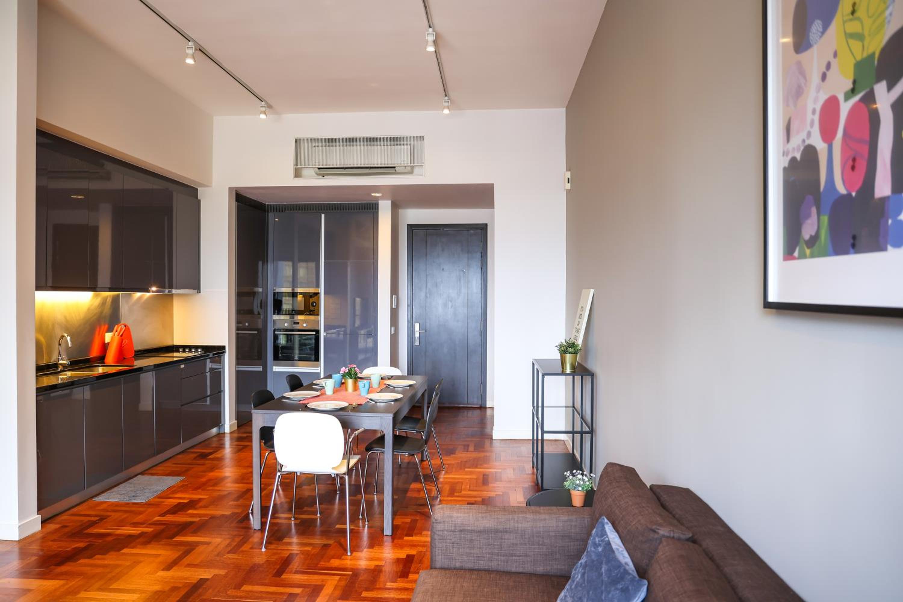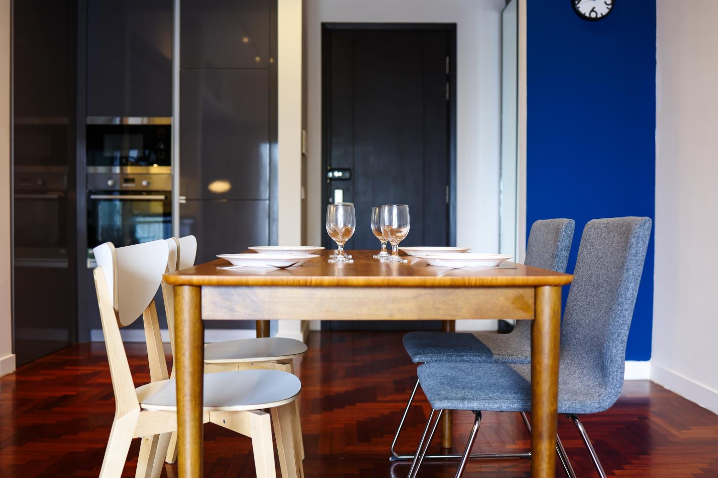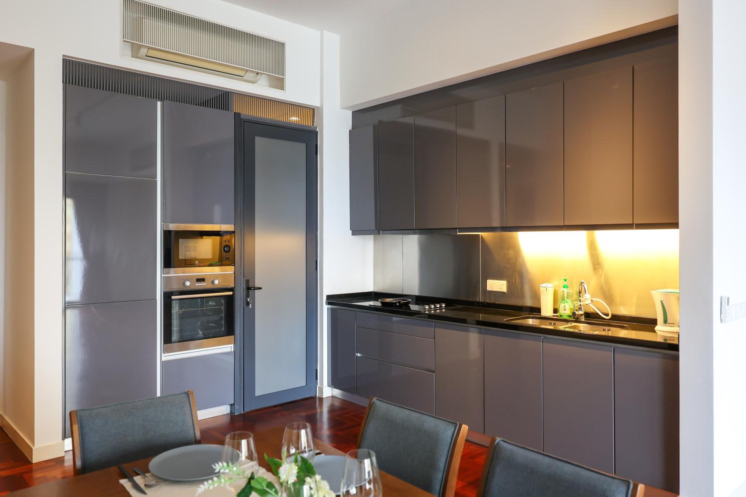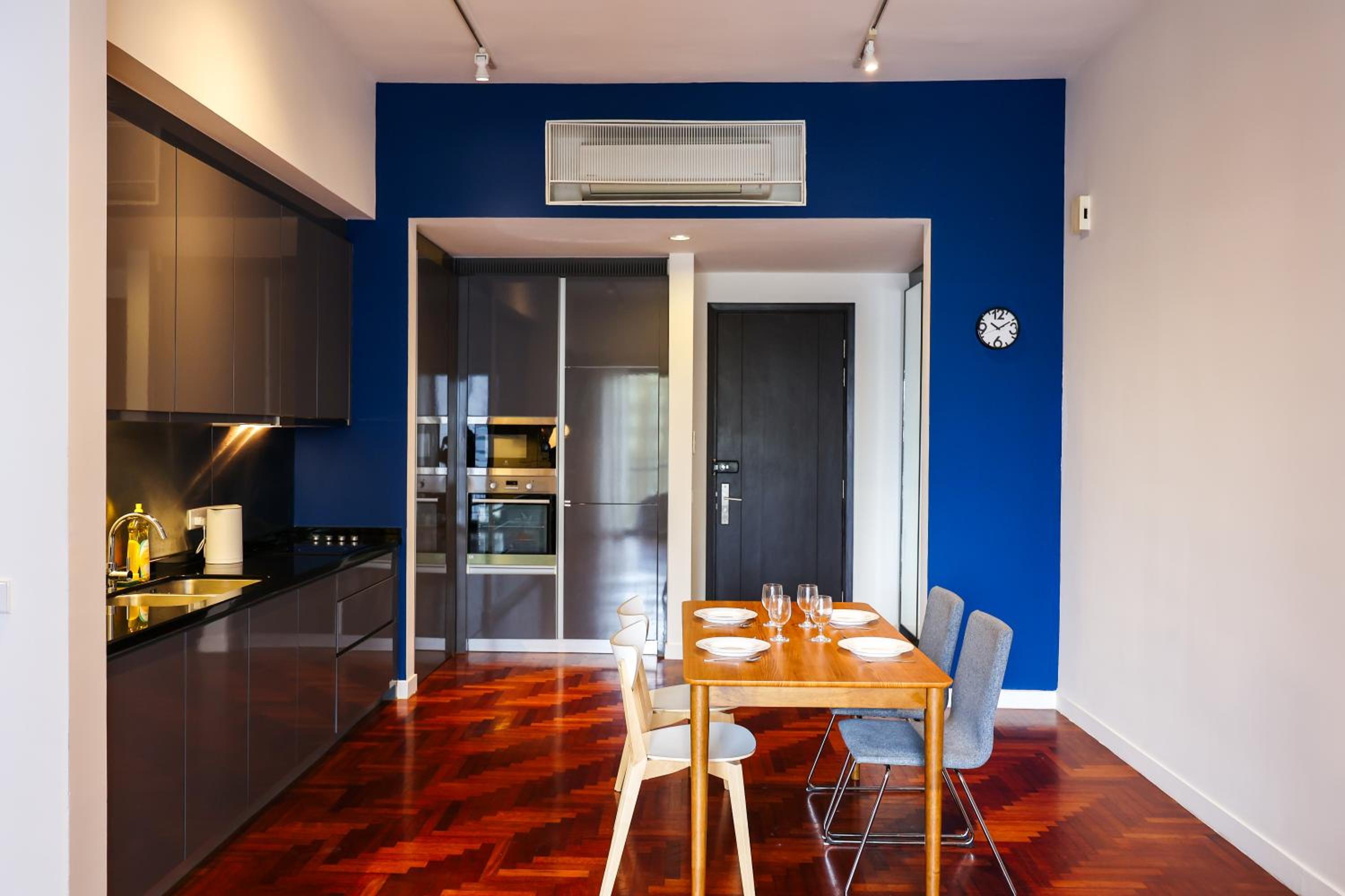 Indulge in beautifully designed rooms with modern amenities and stunning city views. Enjoy a comfortable stay with a fully equipped kitchen, flat-screen TV, and a private bathroom for your convenience.