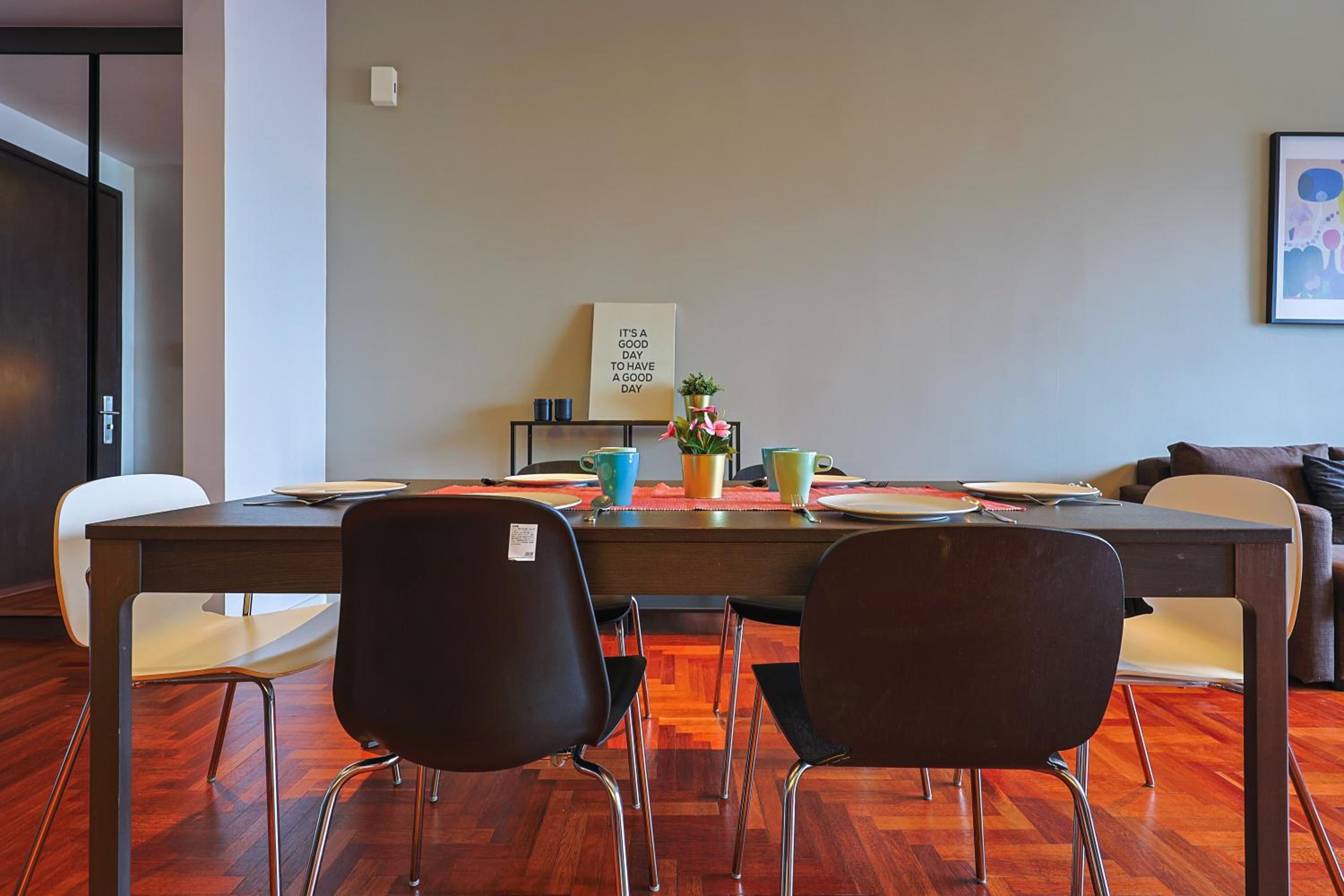 The apartment is spacious for large group. Clean & Have basic facilities.