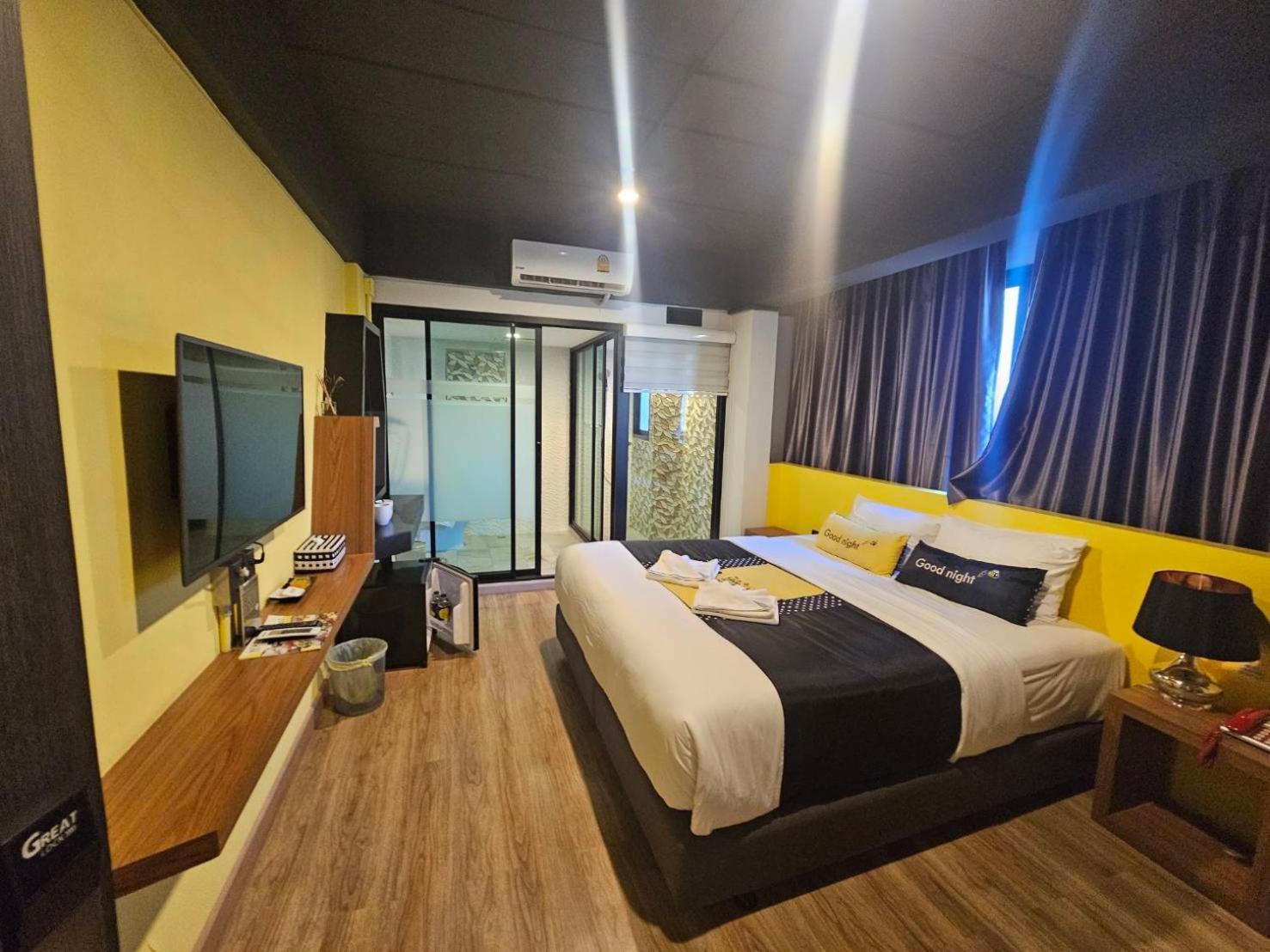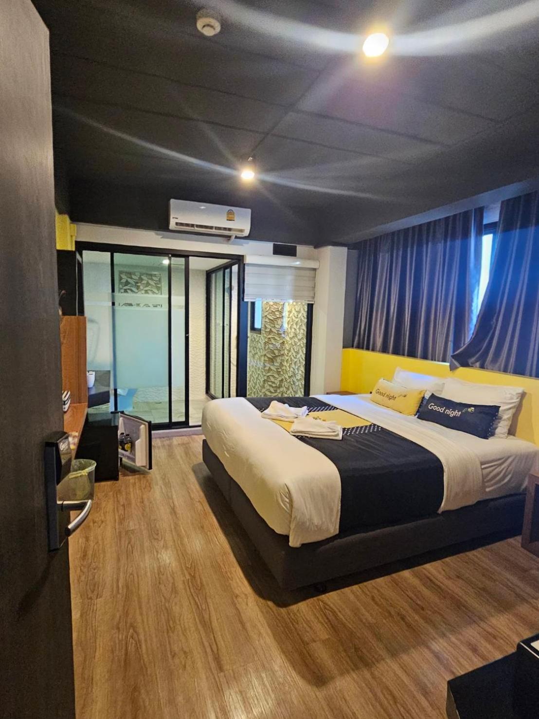 Pas de verre dans la chambre, ni de ceintre et d'armoire, climatisation bruyante et surtout pas de fenêtre dans la chambre principale. Dommage, l'hôtel pourrait faire beaucoup mieux avec pas grand chose de plus