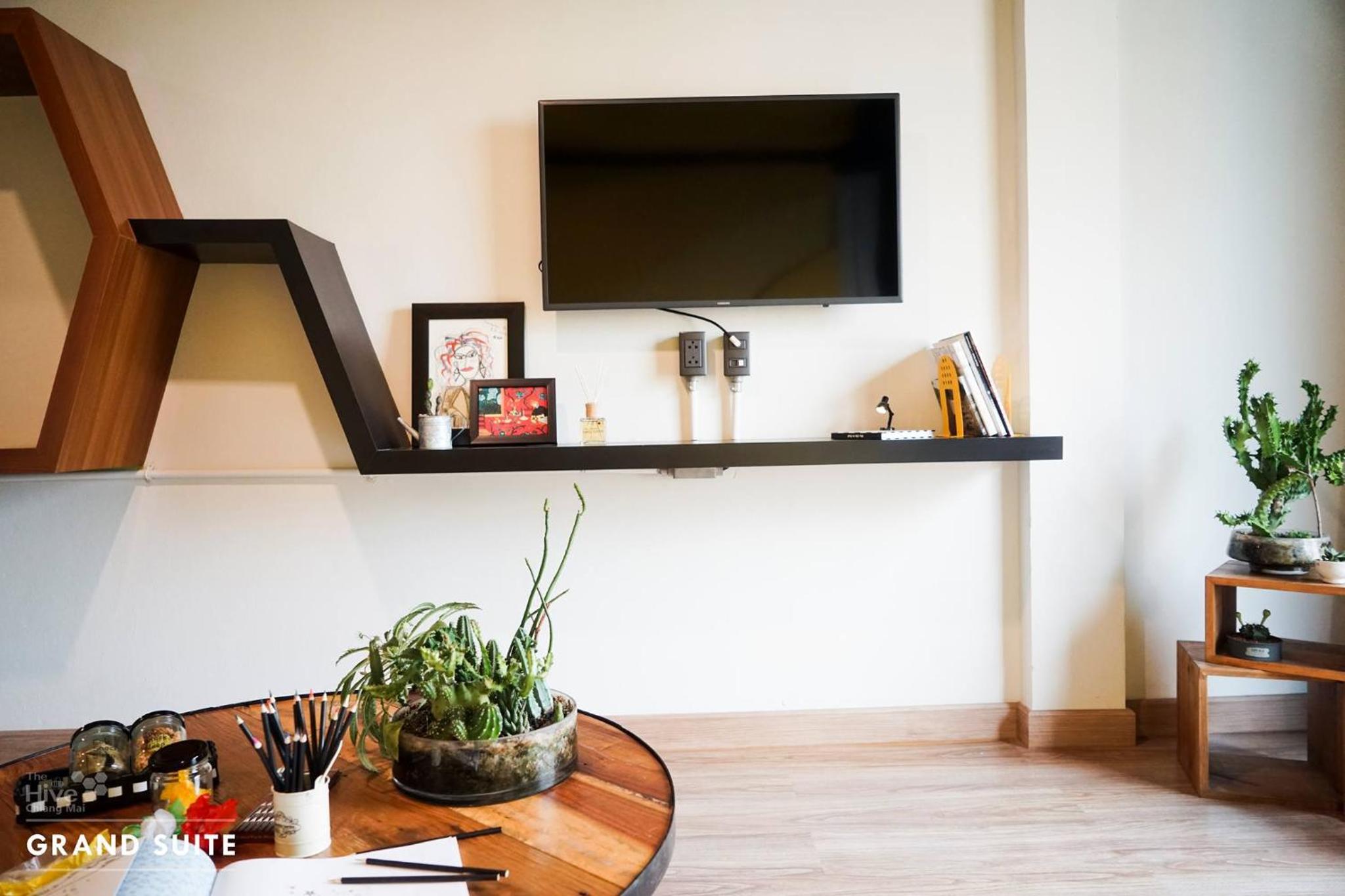 Experience comfort with 40-inch flat screen LED TV, USB power sockets, and stylish decor. Refresh in the en suite bathroom with hot water and separate wet and dry areas. Some rooms offer stunning Doi Suthep views.
