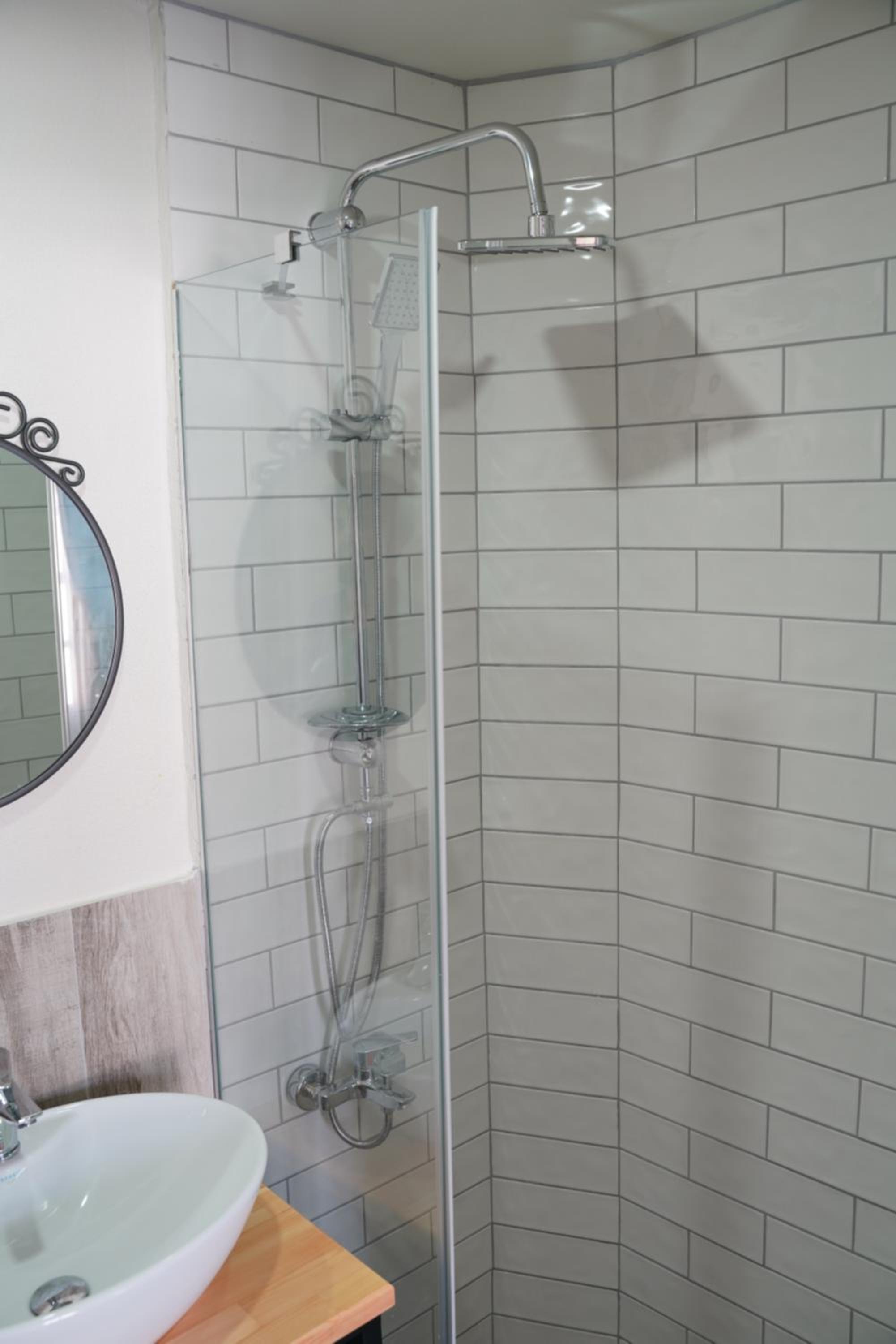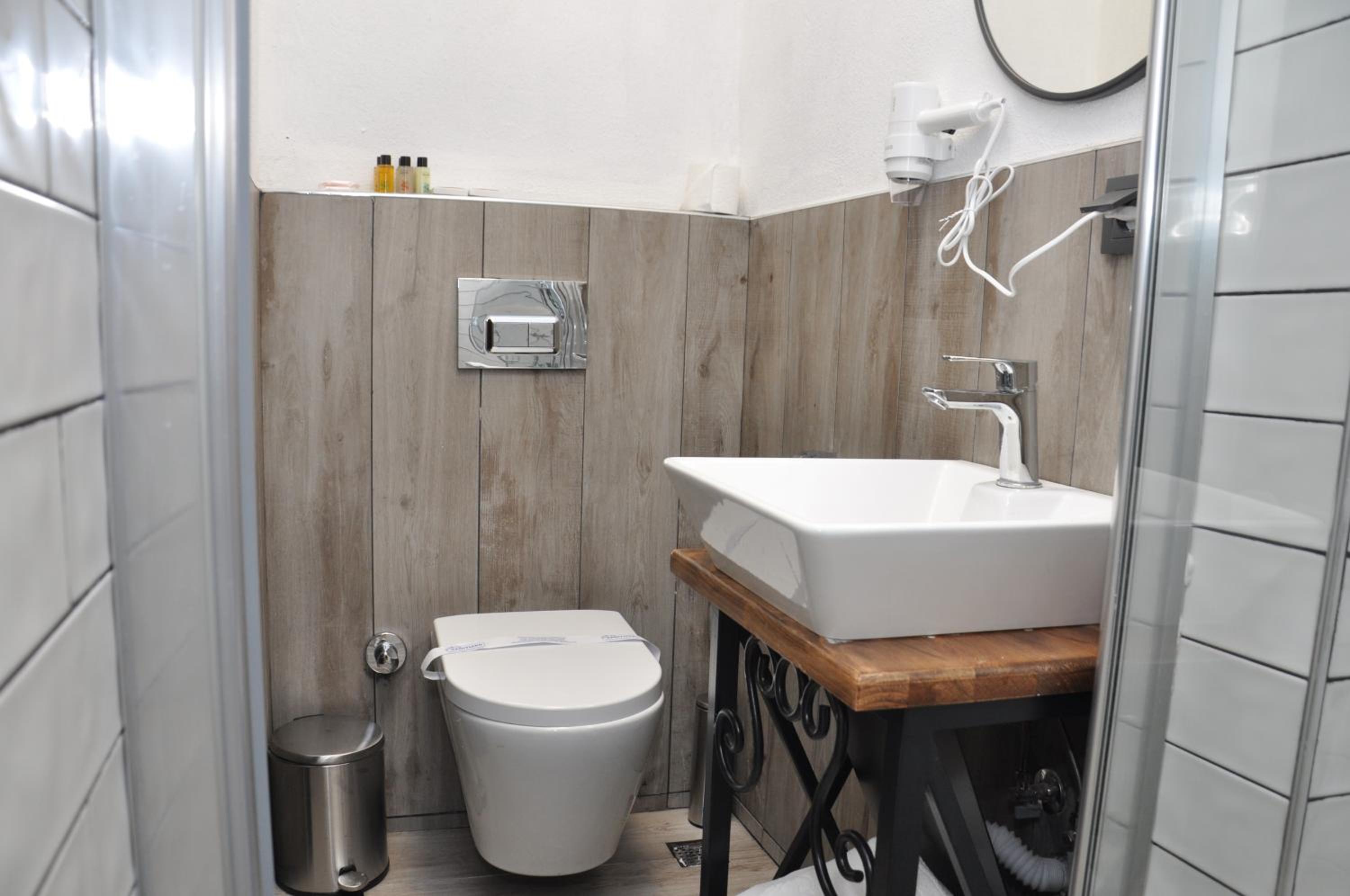 Dusche und WC sehr modern, heißes Wasser top, Tag und Nacht.
