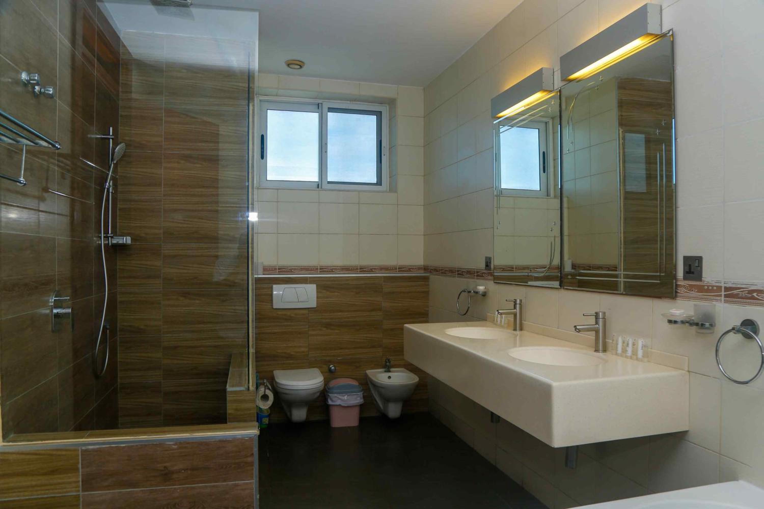 Guests can enjoy the outdoor swimming pool, fitness centre, and terrace during their stay. The hotel also provides free shuttle service, room service, and a restaurant for a hassle-free experience.