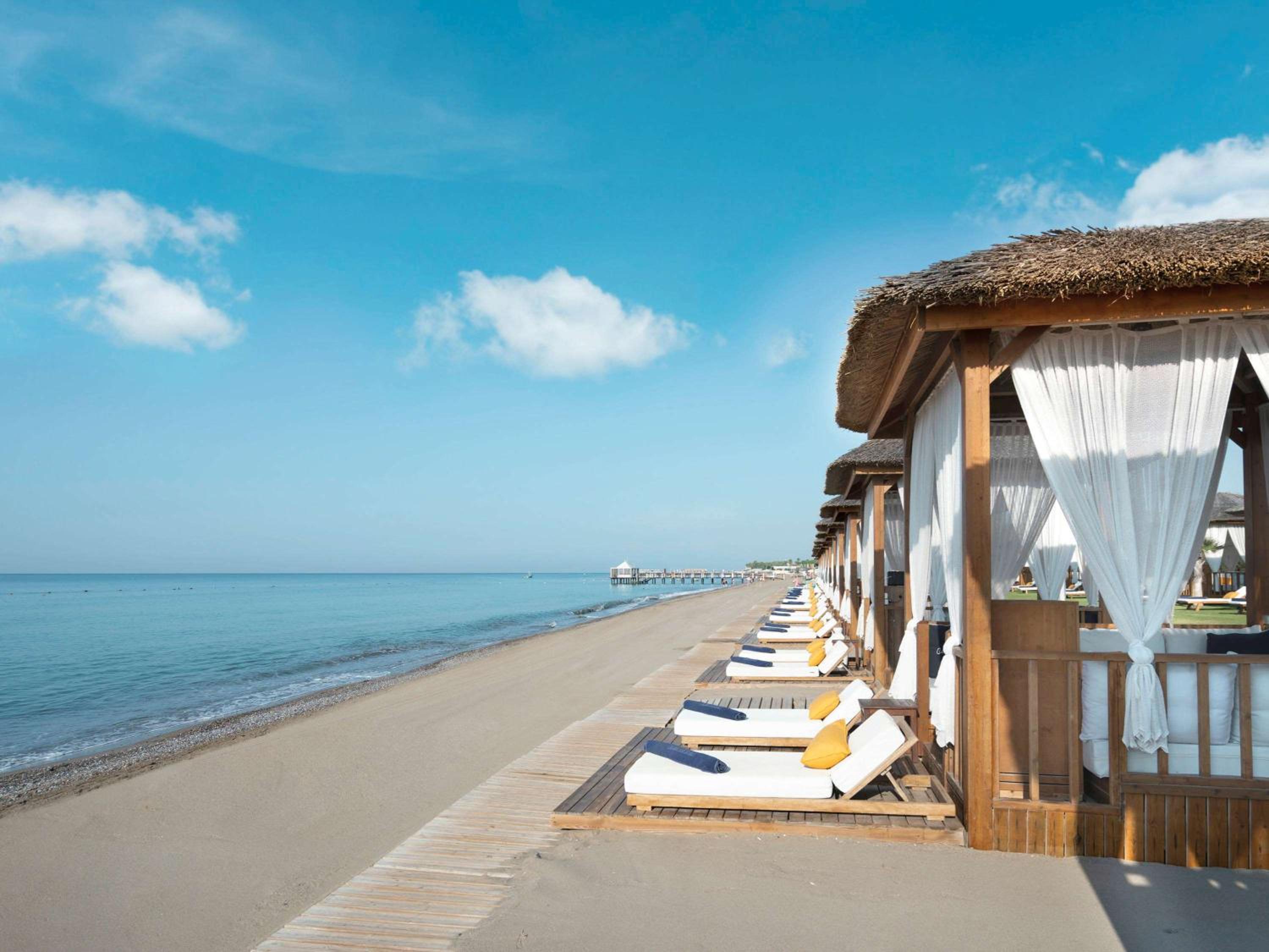 Experience a refined vacation at Club Prive by Rixos Belek, boasting a 300-meter long beach along the turquoise Mediterranean Sea. Each villa offers a private pavilion for the ultimate relaxation.