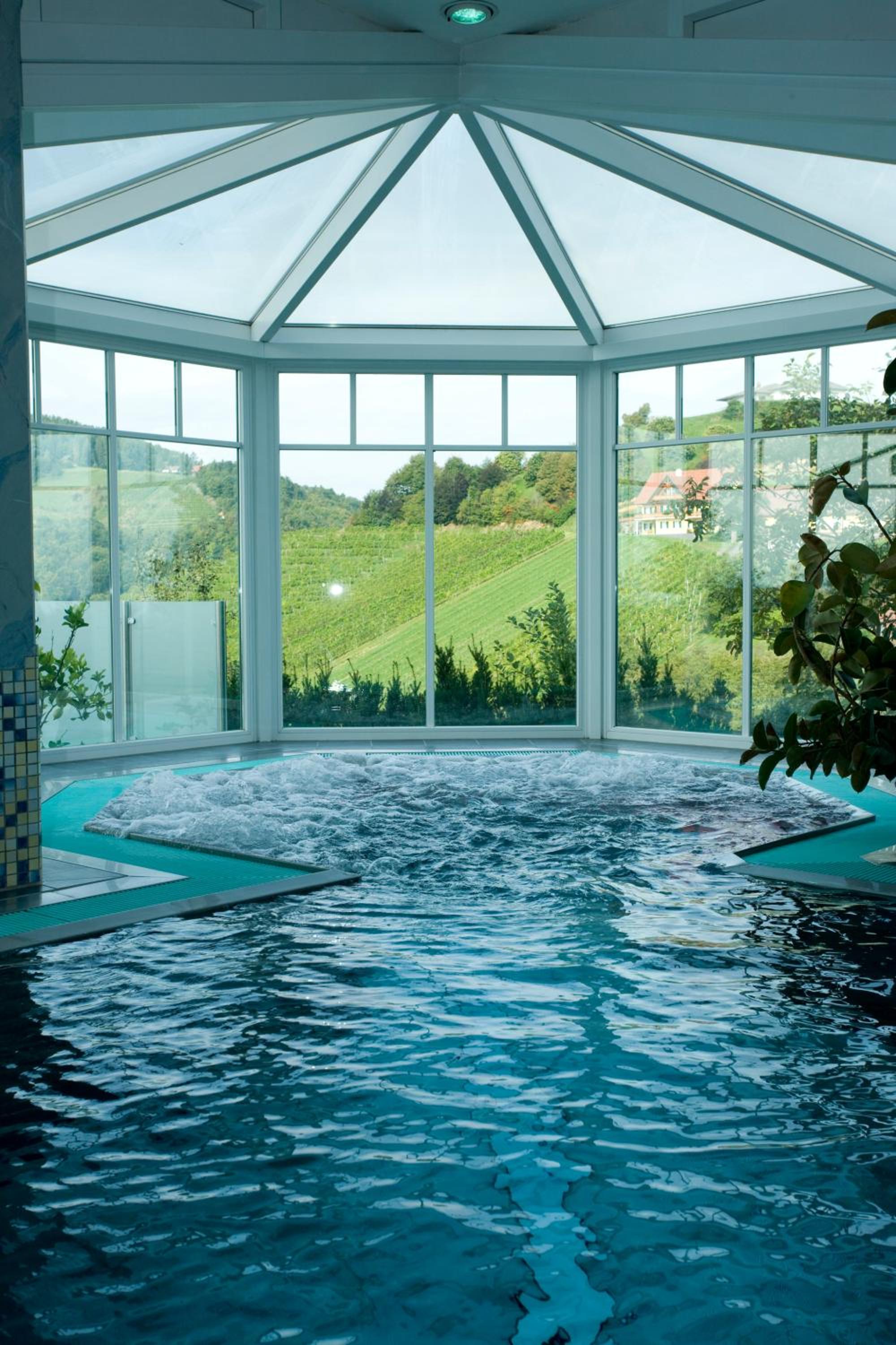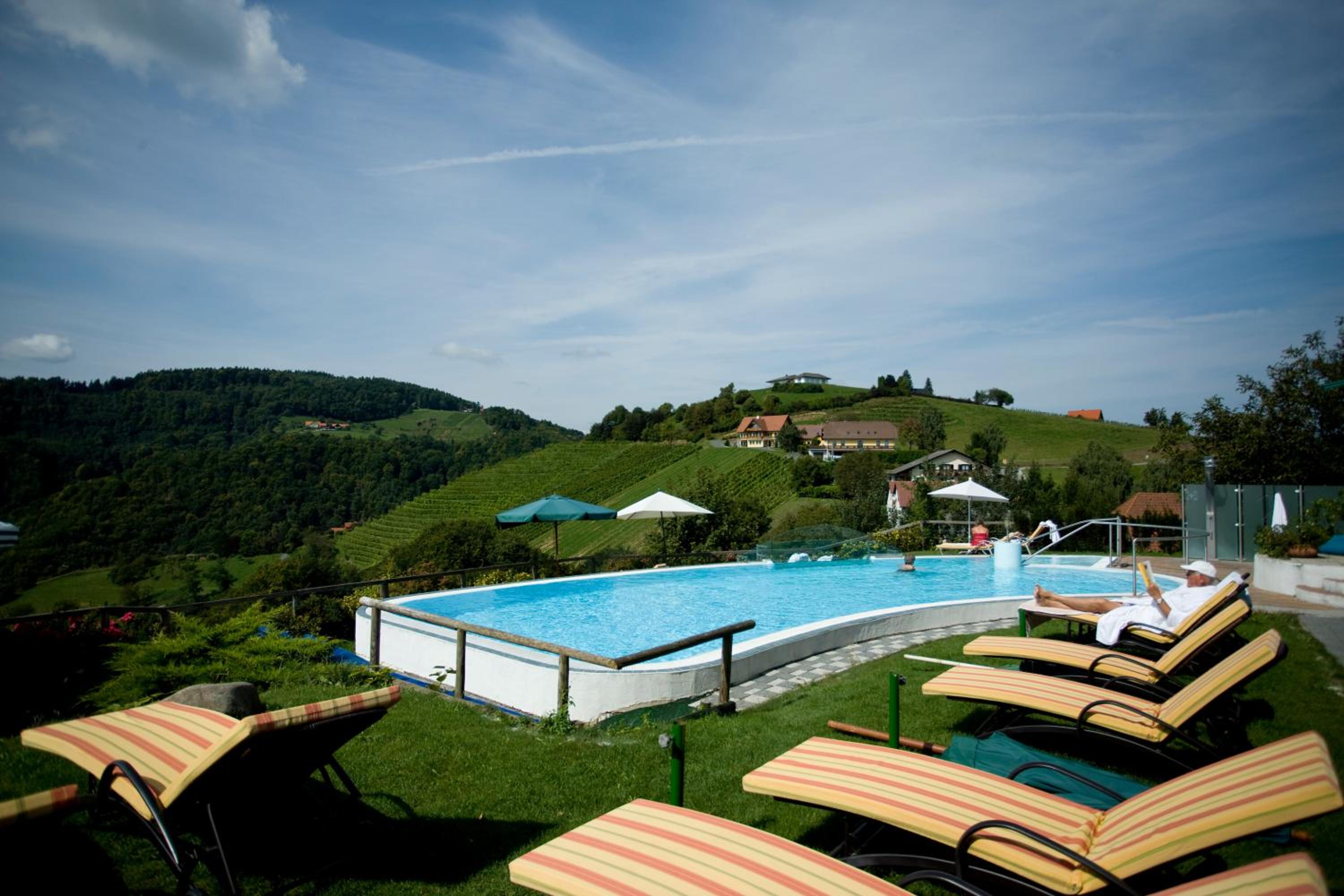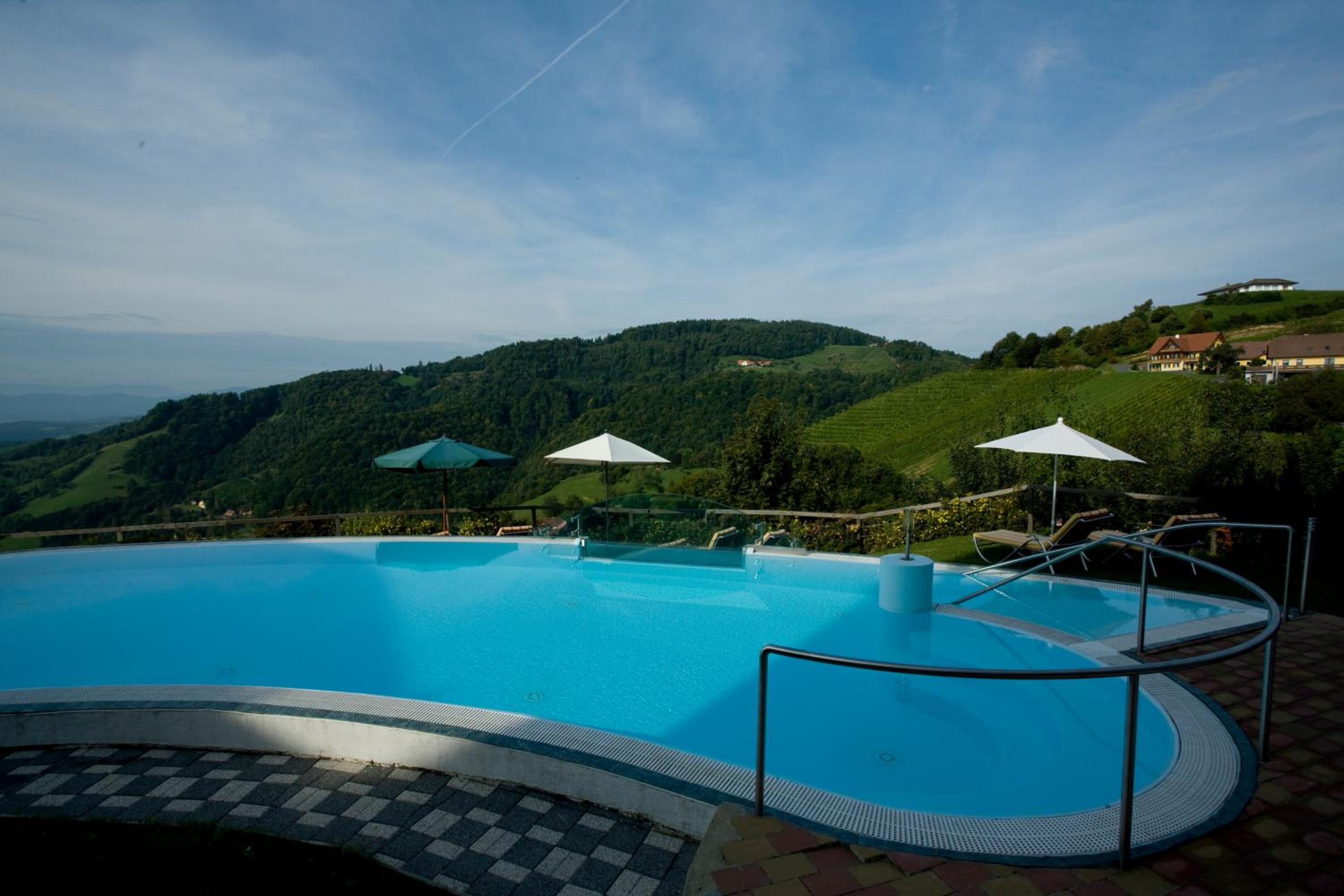 das kappel wein gut hotel offers a range of luxurious amenities, including an outdoor swimming pool, fitness centre, and spa with indoor pool, sauna, and hot tub.
