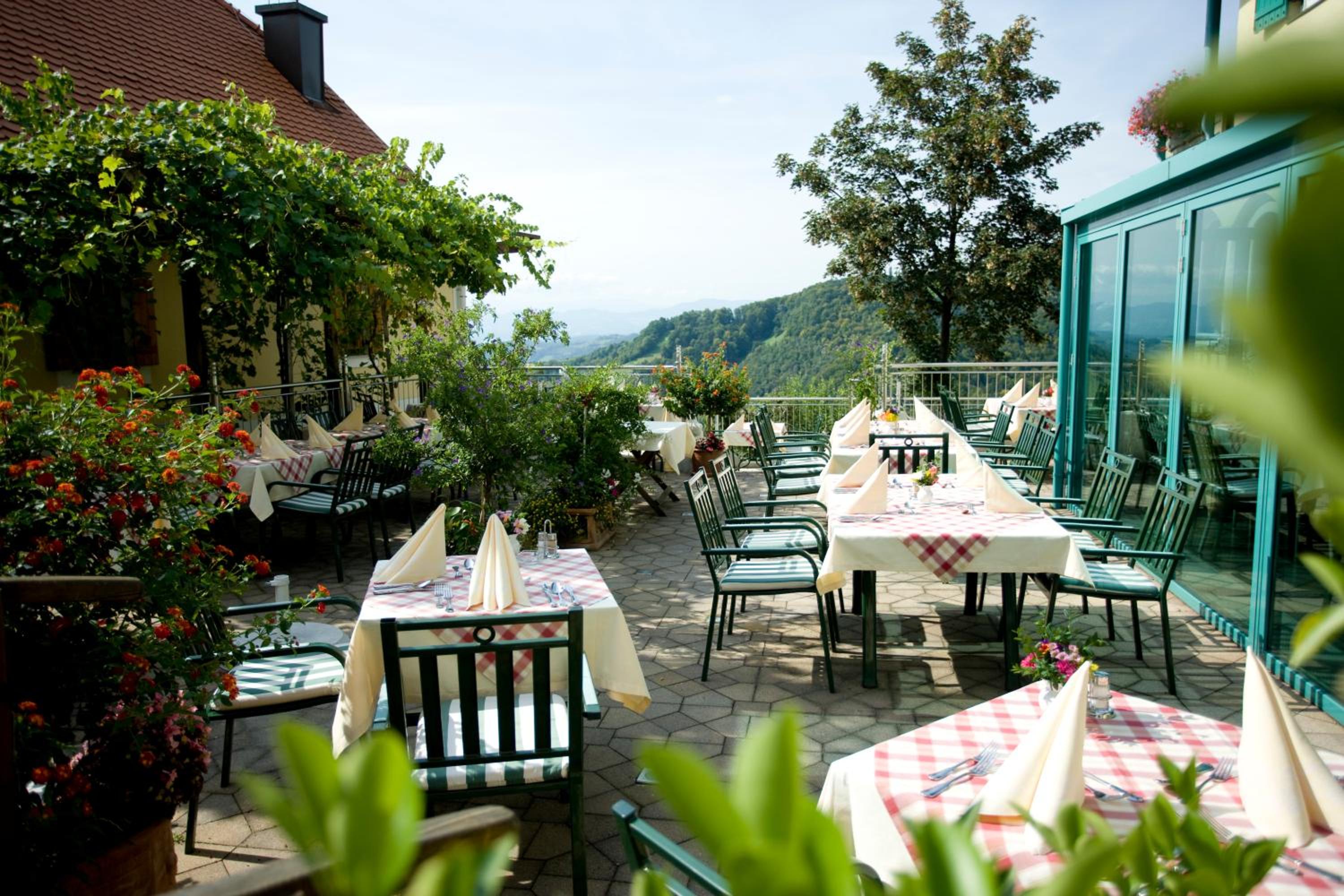 Guests can indulge in a variety of dining options at the on-site restaurant, which serves up delicious Austrian cuisine alongside vegetarian, dairy-free, and gluten-free choices.