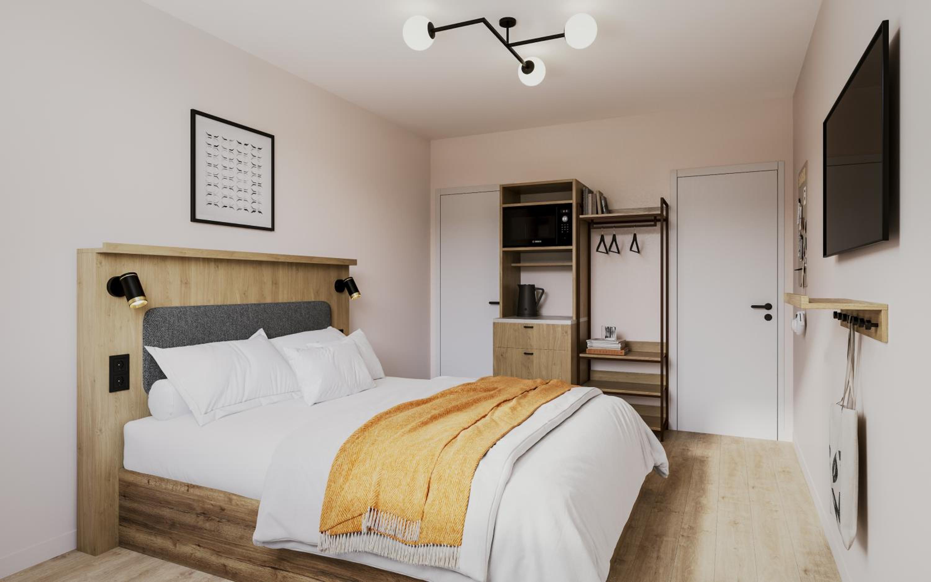 La chambre était petite mais confortable, une petite table à déplier serait appréciable. Le lit était confortable, et la salle de bain simple mais de qualité et bien équipée.