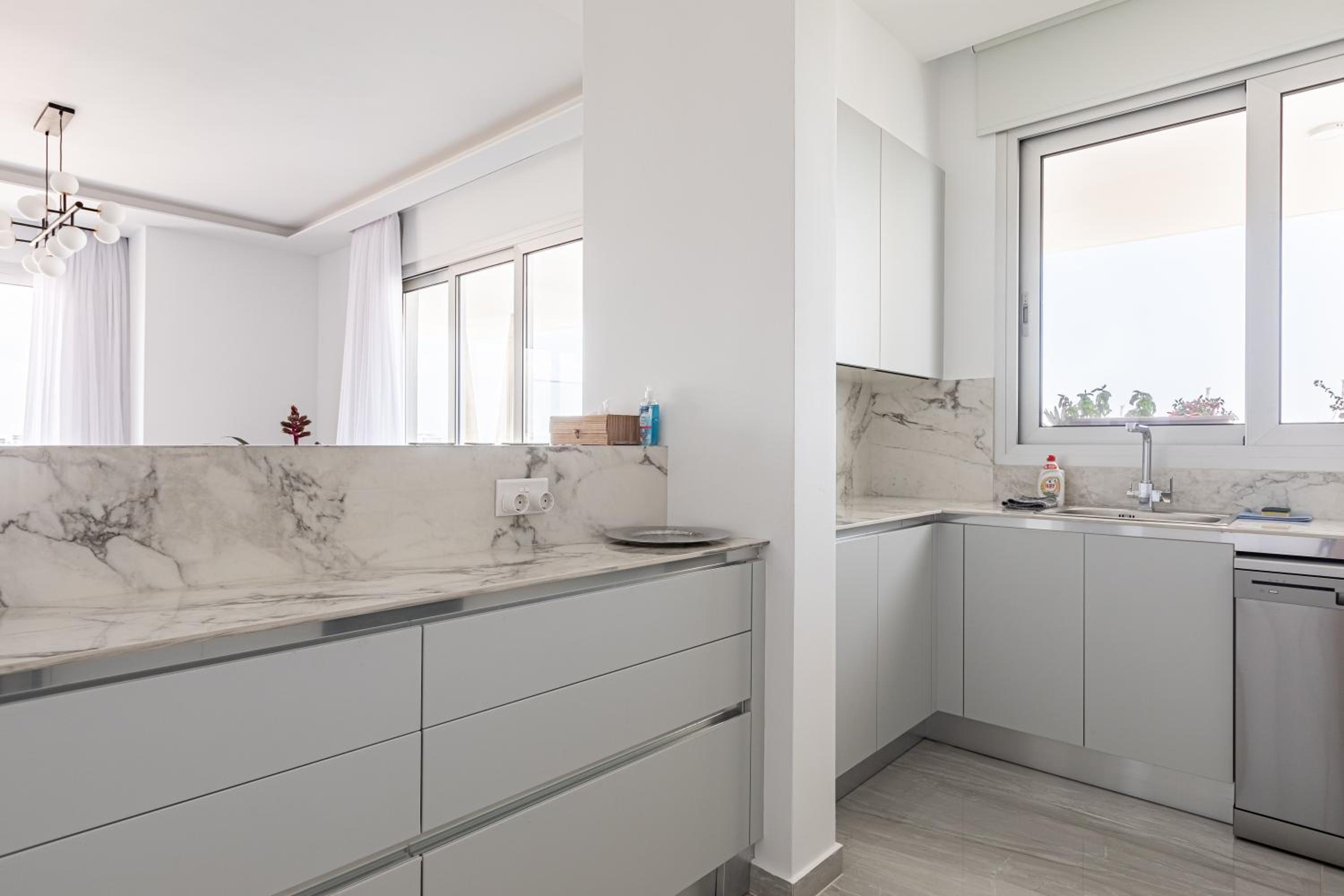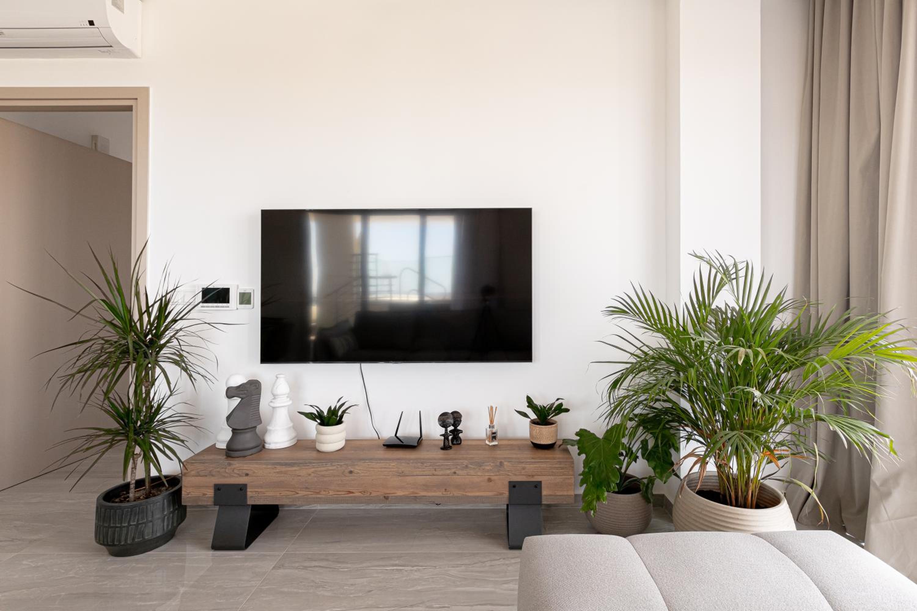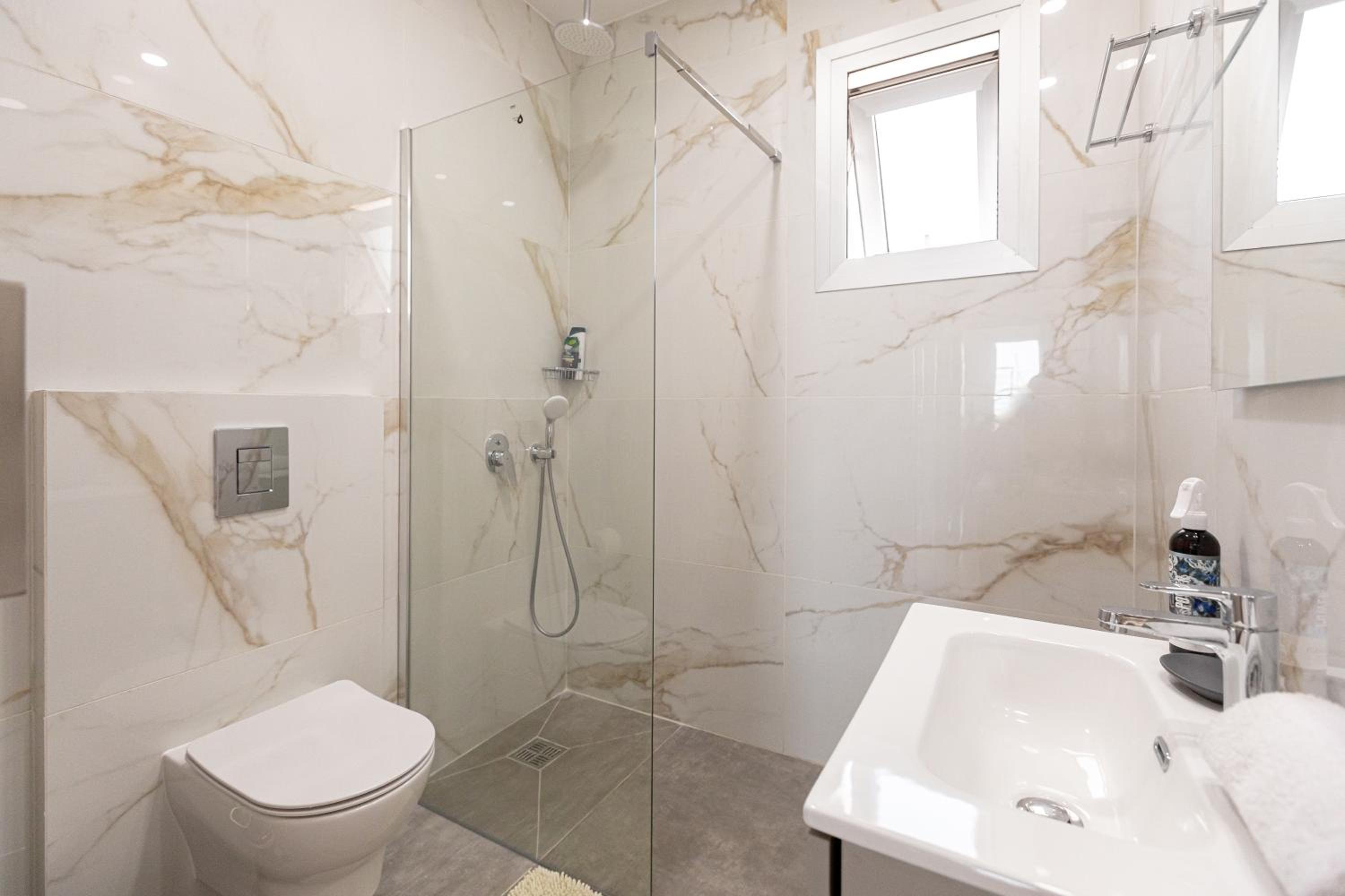 Modern Amenities: Indulge in comfort with 3 bedrooms, 3 bathrooms, a fully equipped kitchen, flat-screen TV with streaming services, and a terrace overlooking the sea.