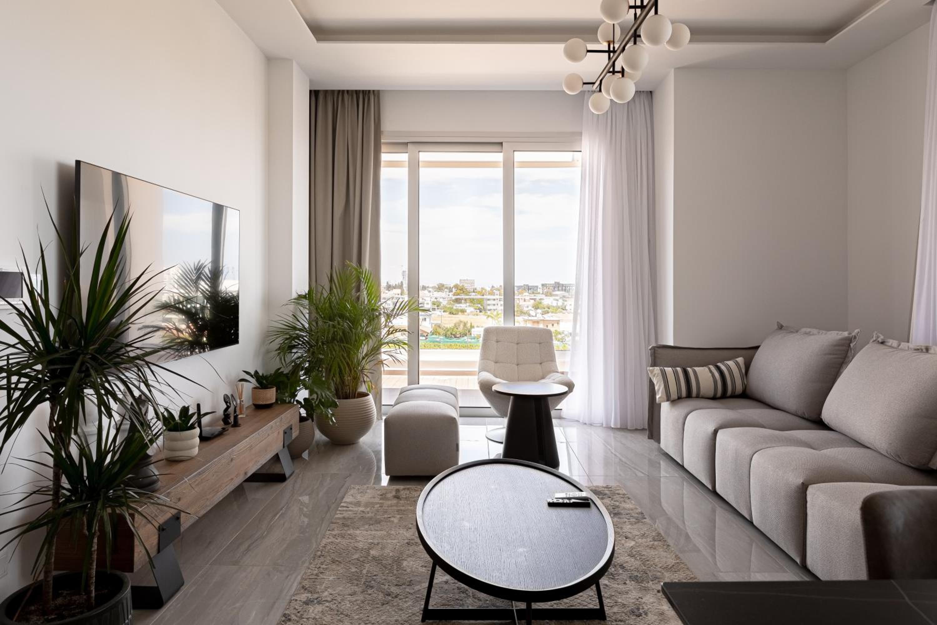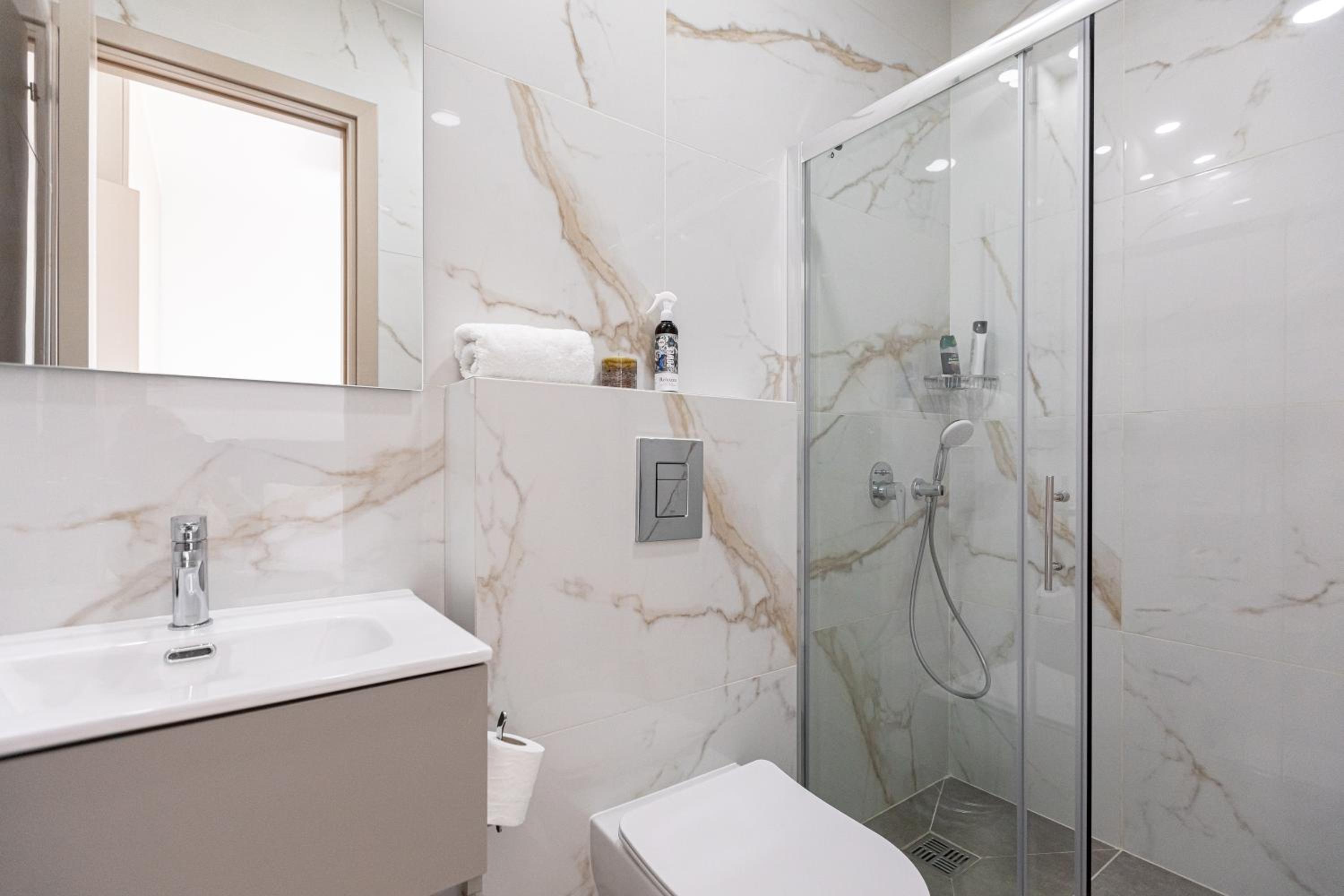 The property is new, within a good central location, clean and very well equipped. Plenty of hot water. The balcony is huge with comfortable armchair and a table - excellent for the morning coffee. There are even power adapters!