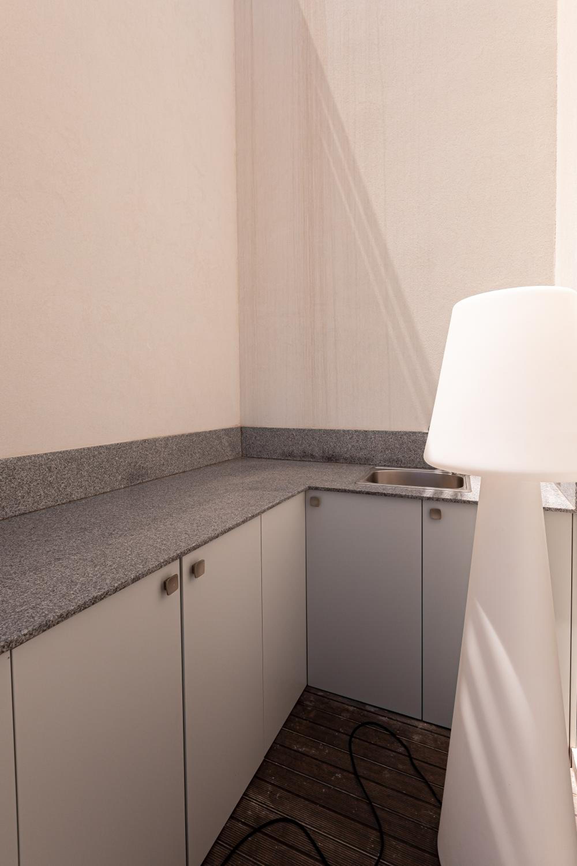 В Апартаментах ковер на полу был в больших грязных пятнах, не пропылесосен,окна грязные ,в углах комнат лежала пыль , стены местами тоже грязные, постельное белье было мятое, утюг был сожжен, одежду таким гладить точно нельзя, санузлы очень маленьких размеров, разочарованы. на фото выглядело все намного лучше