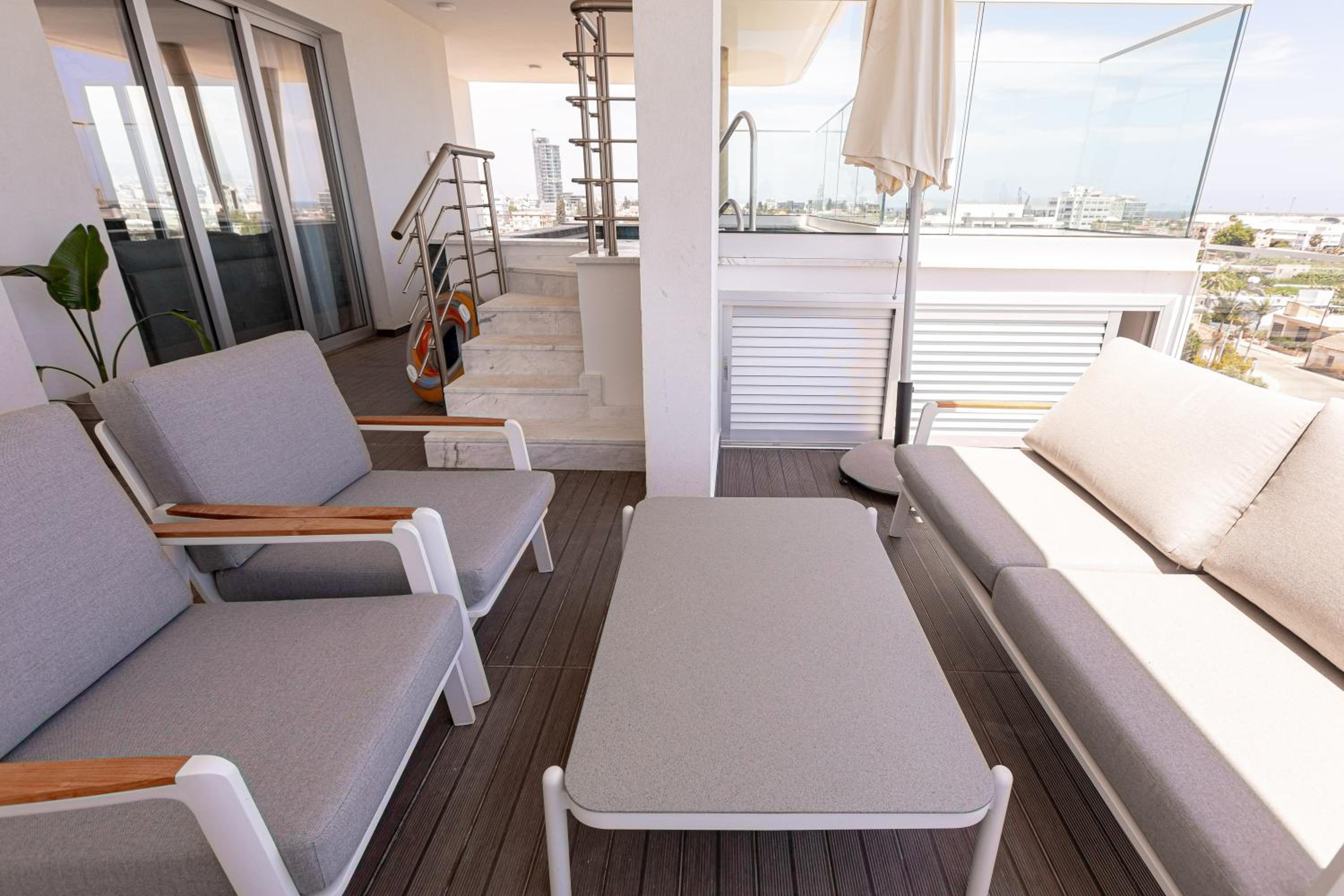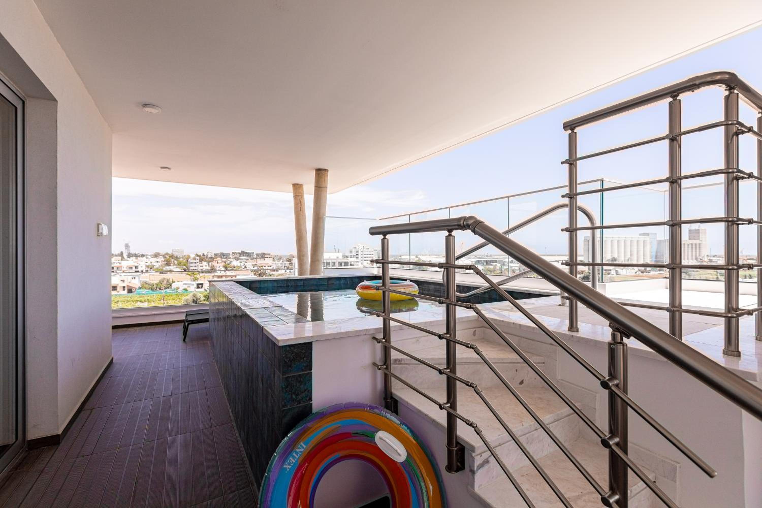 Private Pool and City View: Enjoy a relaxing stay in this air-conditioned penthouse with a private pool and a patio offering breathtaking city views.