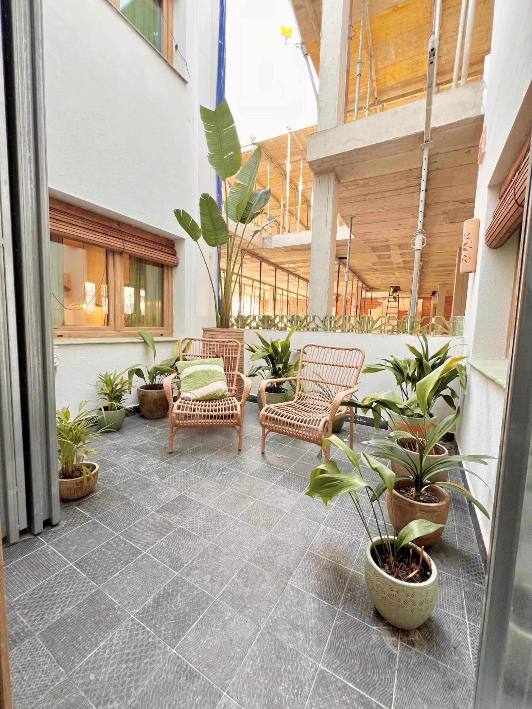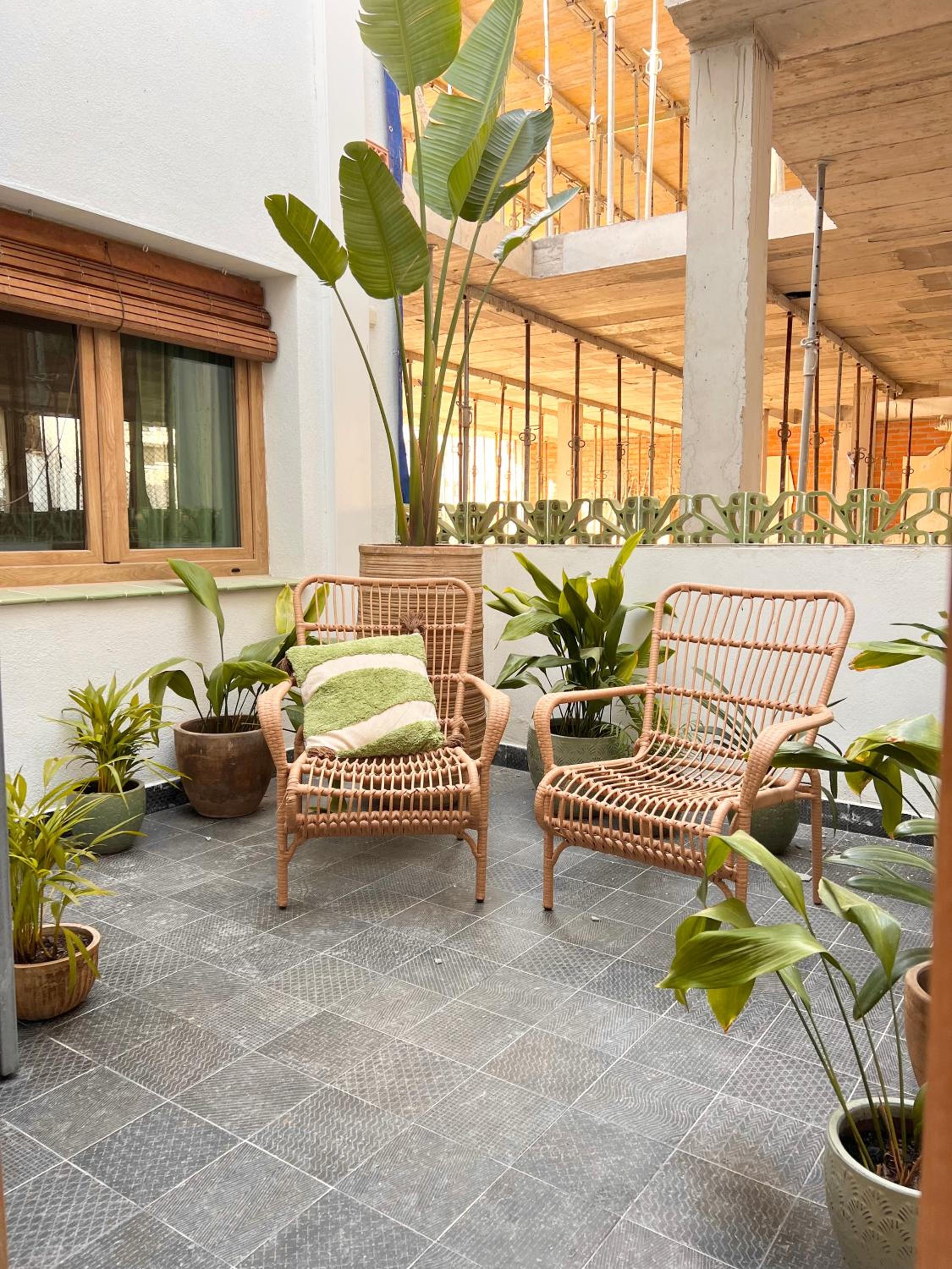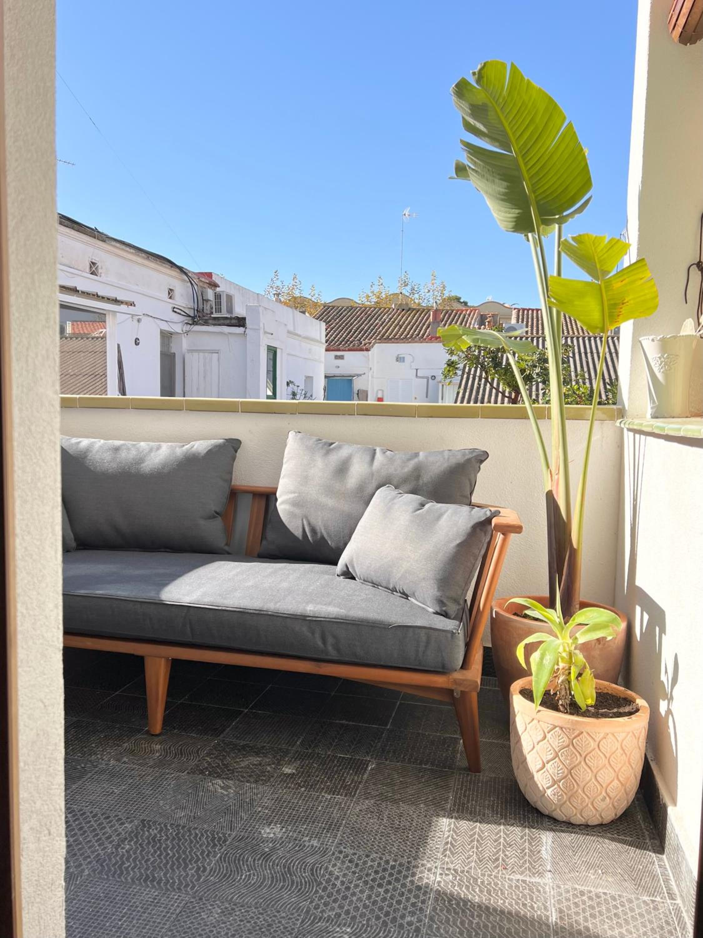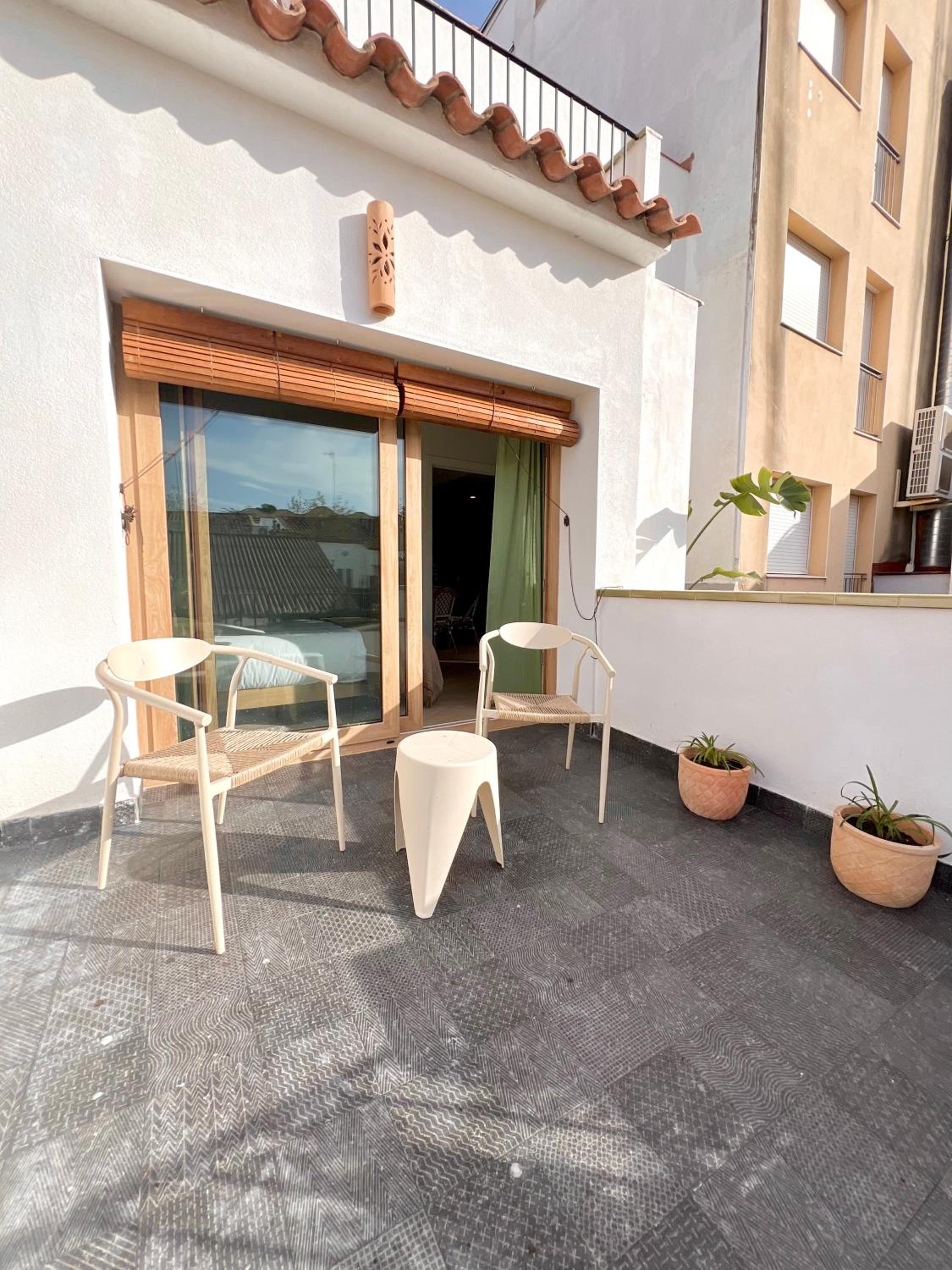 Ons appartement was achteraan het gebouw gelegen, ondanks de drukte in het centrum van Sitges was het er heerlijk rustig.
