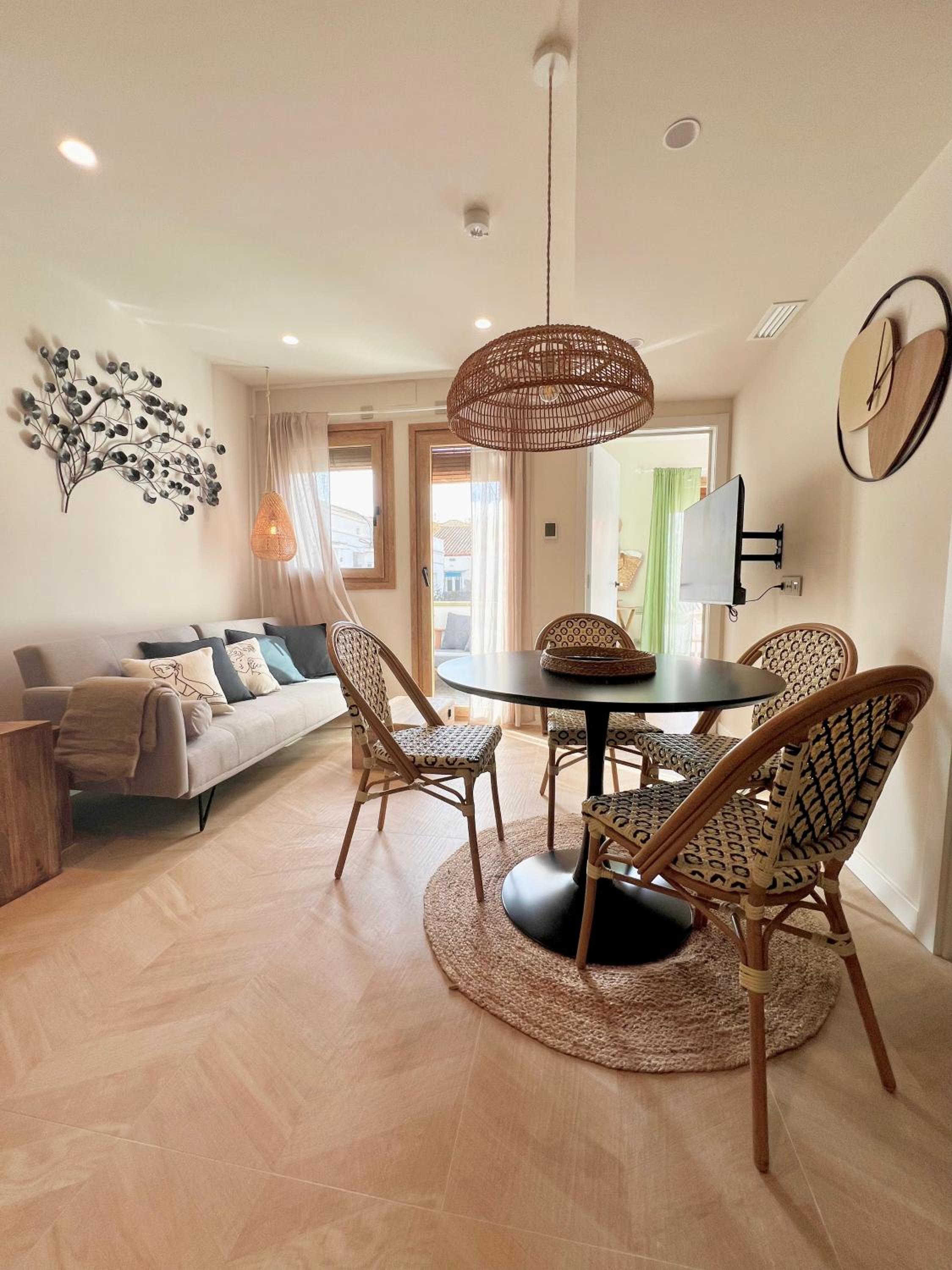 It's right in the heart of Sitges - fabulous location. Despite this, no noise gets in from the nightlife around. It's a beautiful little flat - impeccably presented with everything you could need and scrupulously clean. Easy access with a key code and lockbox to get in. Feels safe and secure. Smells delicious!