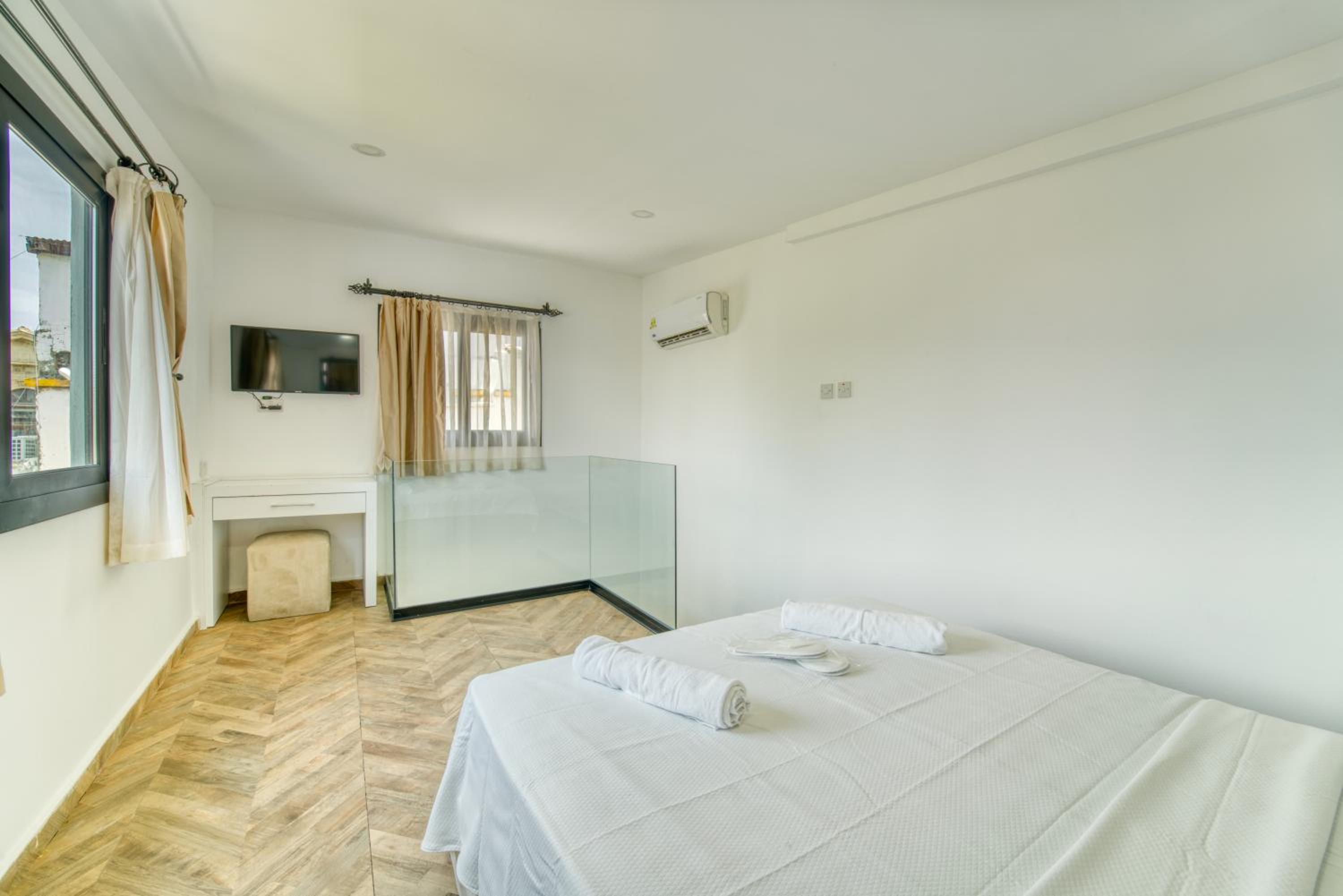 Öncelikle konum olarak harika bir yerde, Girne'nin tam göbeği. Her yere ulaşım çok rahat kötü hava koşullarında bile rahat taksi, araç bulabilirsiniz. Otel personeli güleryüzlü, dış kapıdan şifre ile giriliyor güvenli, resepsiyon 24 saat hizmet veriyor, bu açıdan çok güzeldi.