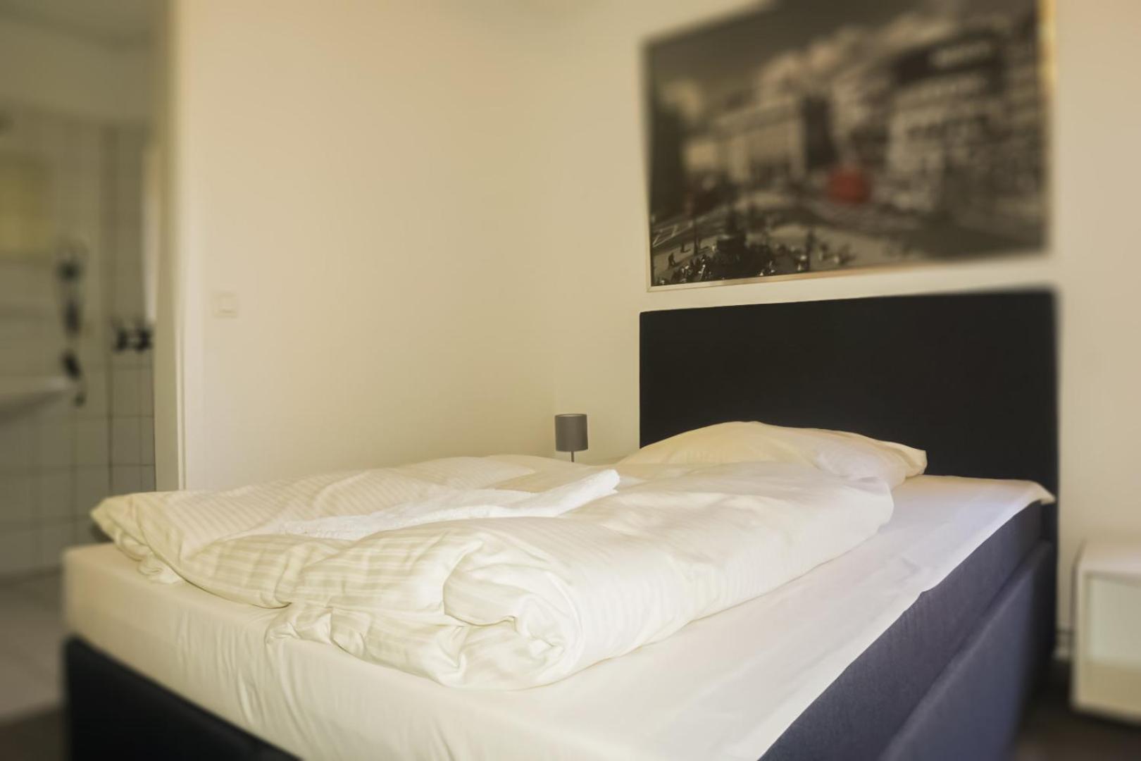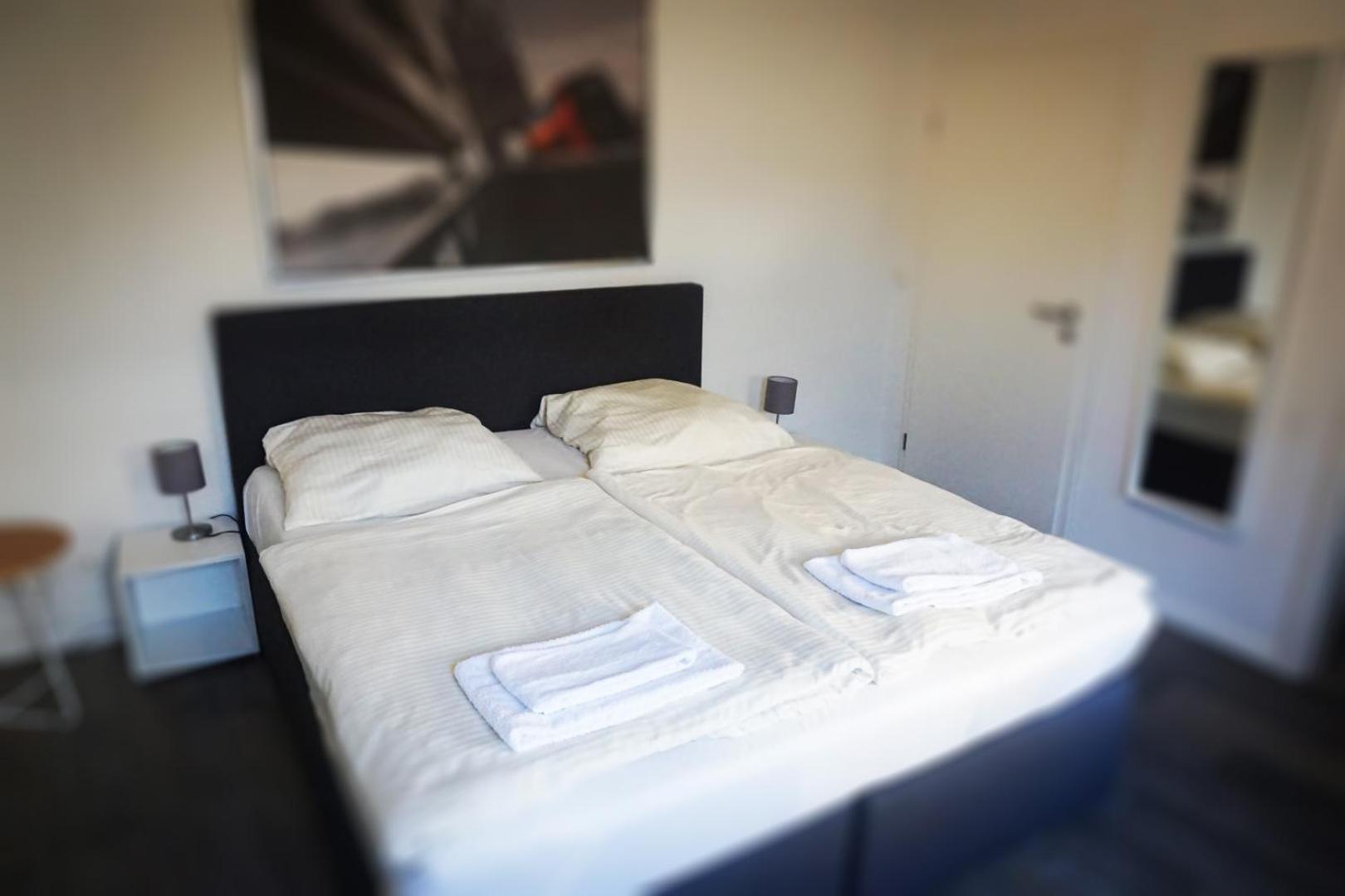 Ik had een lekker breed tweepersoonsbed voor mezelf (zoals geboekt), maar met een eenpersoons laken betekent dit dat het laken smaller was dan het bed.