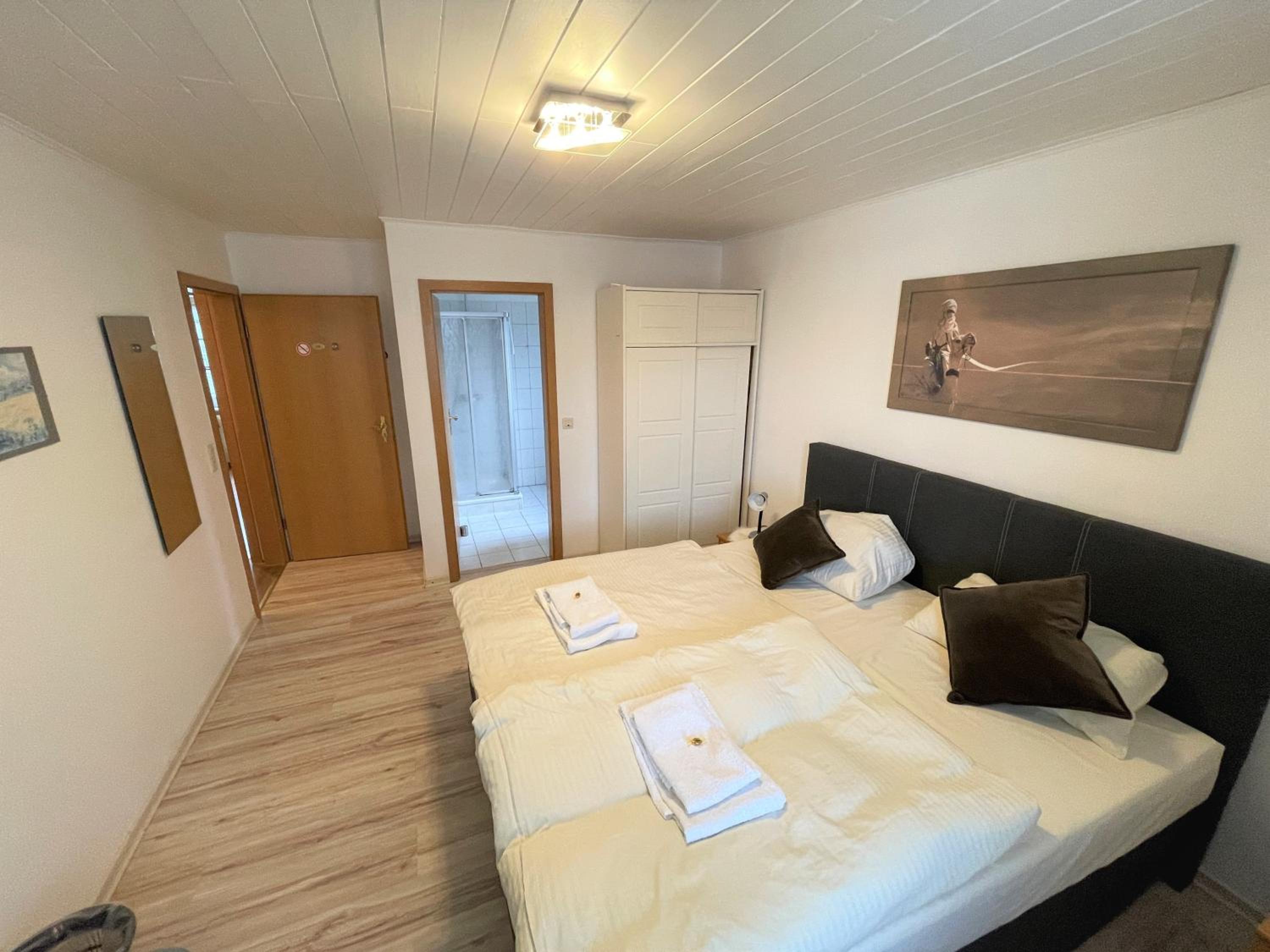 Das Geschirr vom vor Mieter lag noch auf der nicht geputzten Spüle, Brötchenkrümel auf dem Teppich und die Dusch Glastür voller Kalk Wasserflecken, woran man auch erkennt wie geputzt wird. Fernsehen konnten wir auch nicht, da die Fernbedienung nicht funktionierte.
