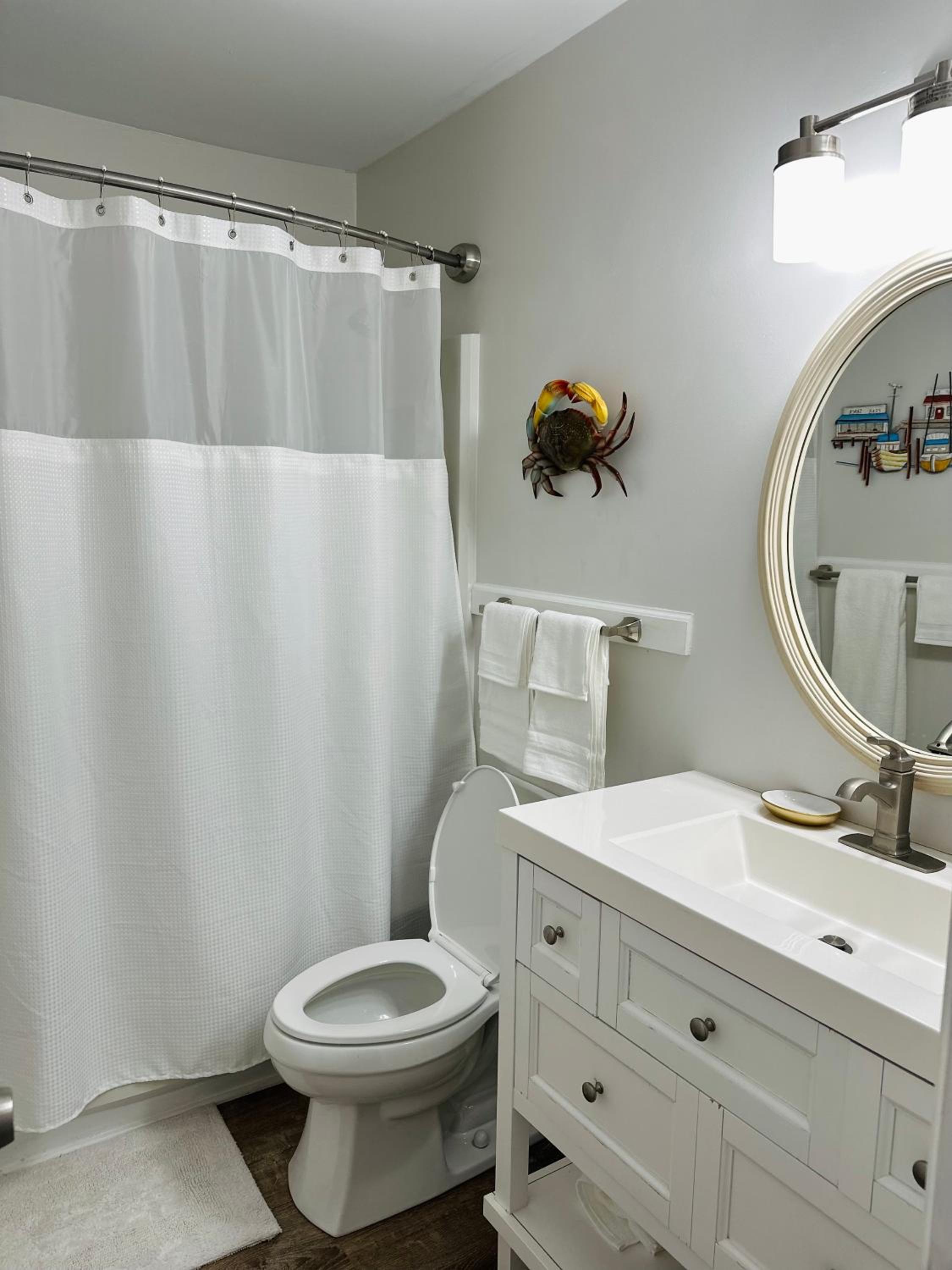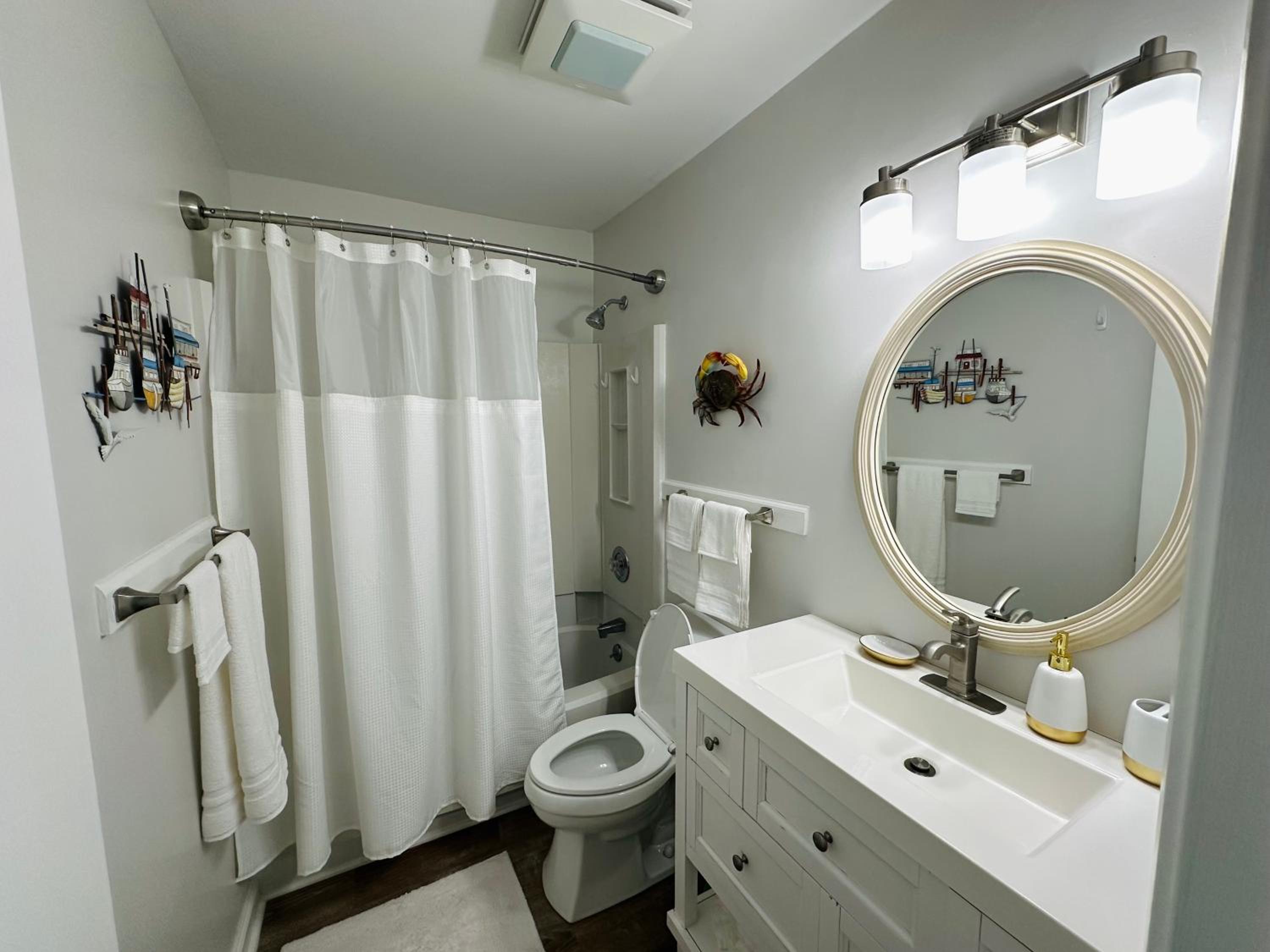 Two bedrooms, two bathrooms, and a cozy living room for a comfortable stay.