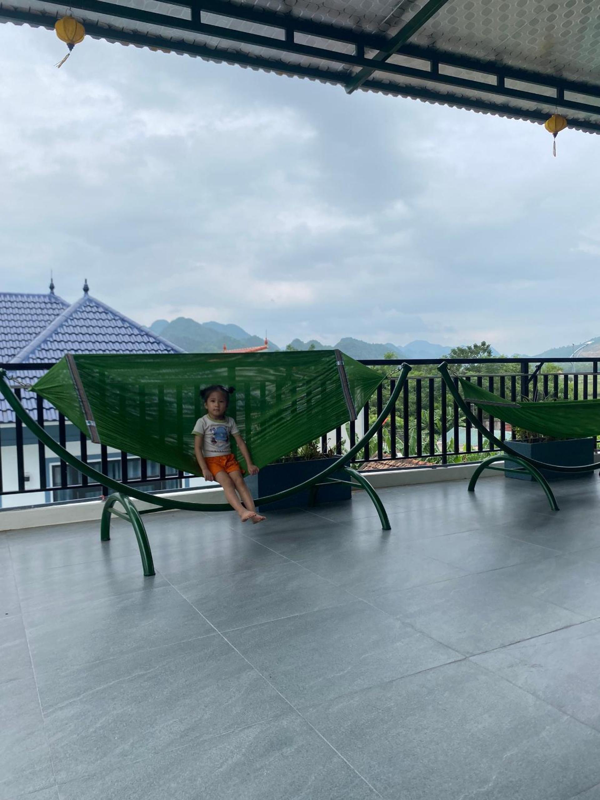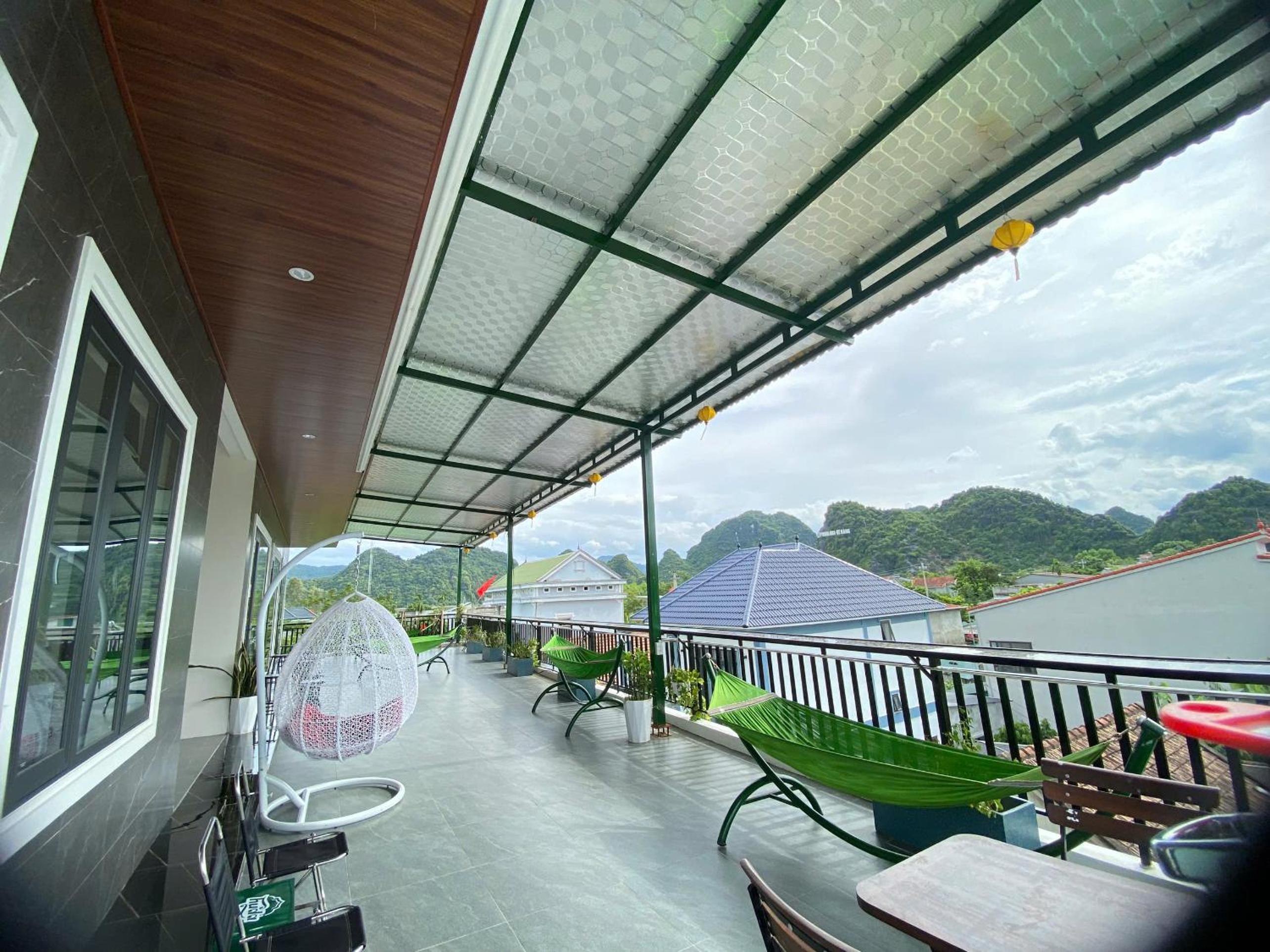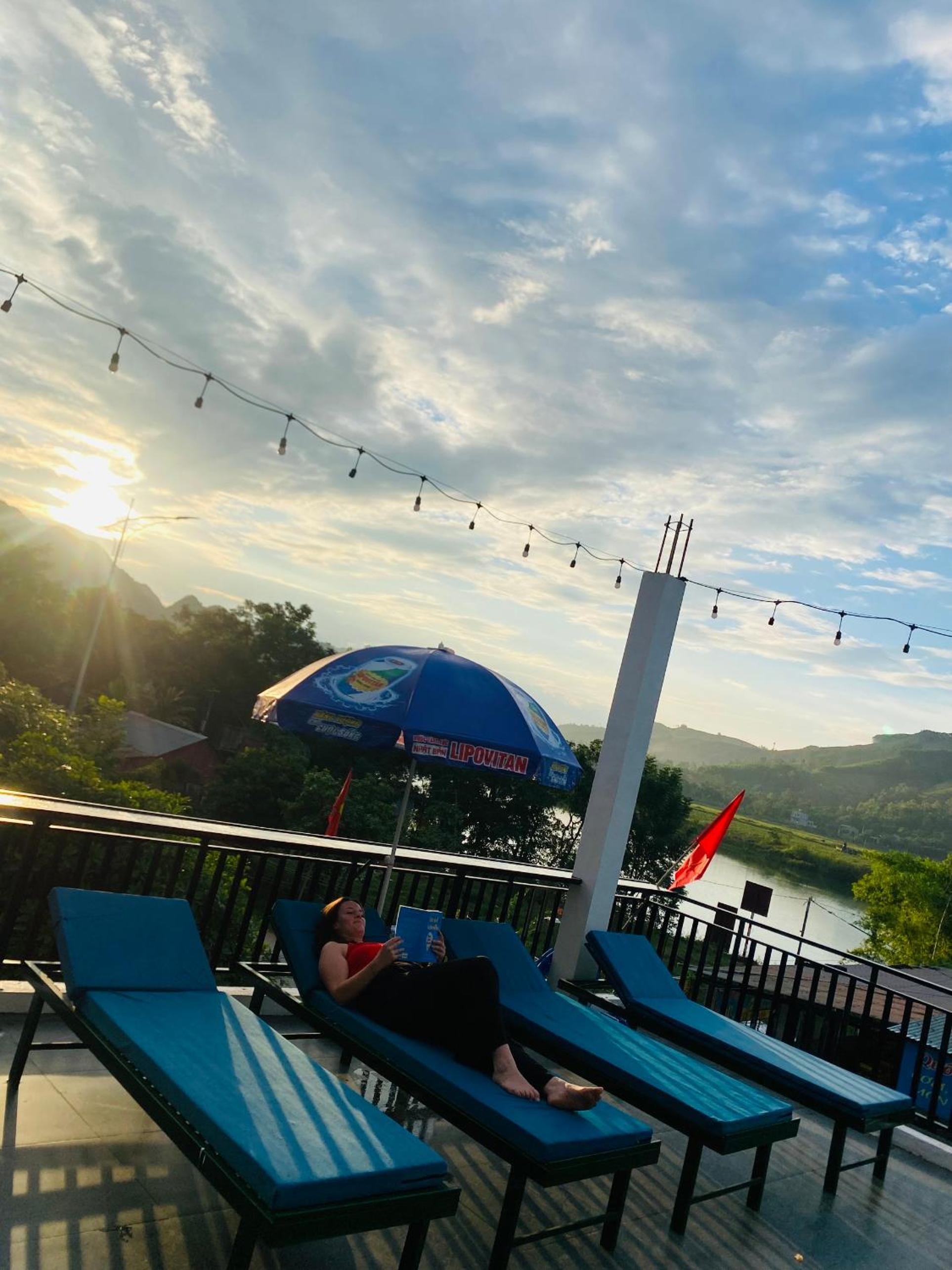Super friendly hosts. Quiet location, a bit out of town. There's a mini-mart directly opposite of the guesthouse, not sure about restaurants as we always ate in town during the day. You can get dinner at the guesthouse, which is yummy and reasonably priced. Breakfast was good, we could choose from a few options (pancakes, sandwich, etc.). The room and bathroom were clean and everything worked well. We loved the fact that we could sit outside our room under a roof (yay, shade!) and there was even a hammock. The owner helped us to book tours and even with transportation on our journey onwards to Ninh Binh. I would definitely stay there again.