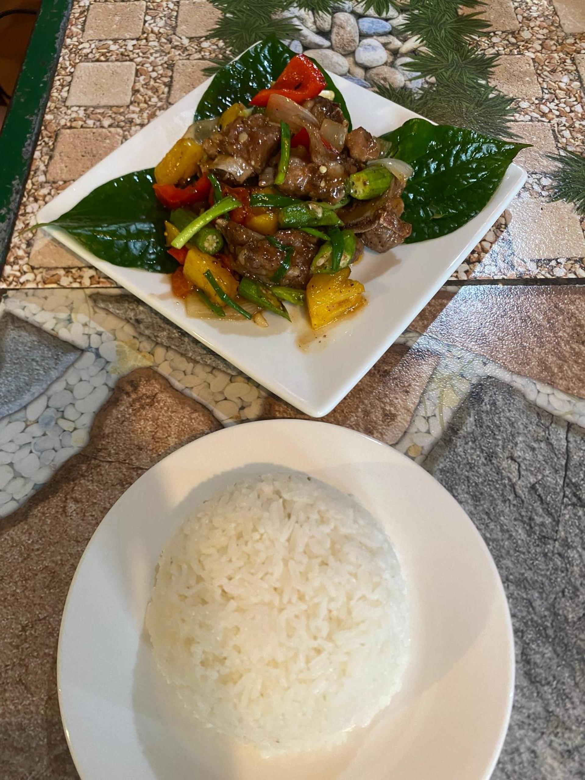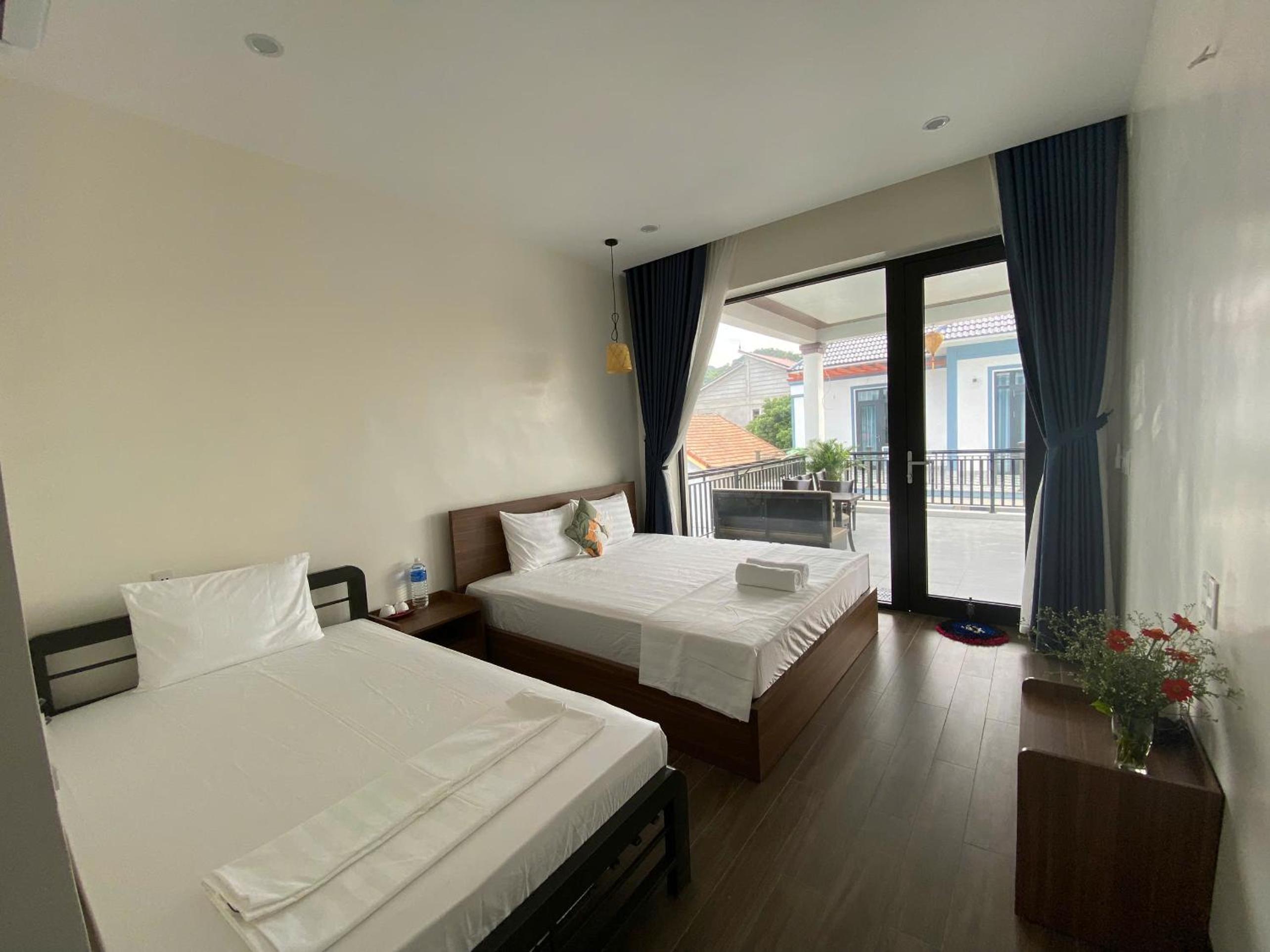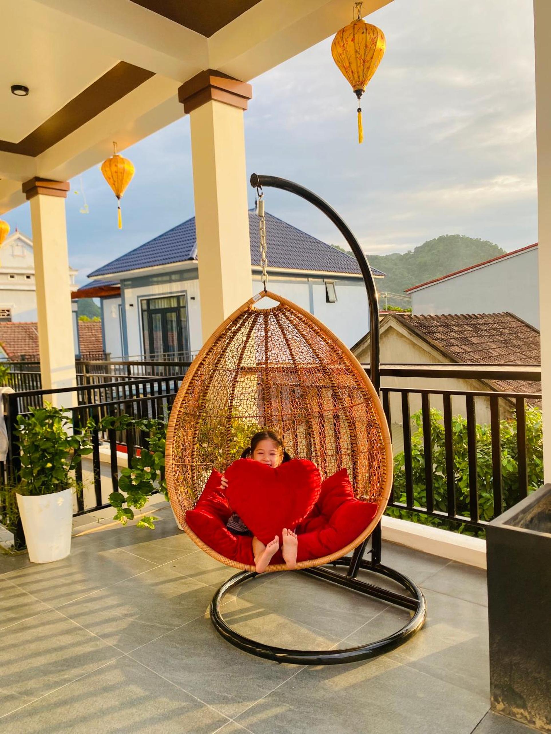 Super friendly hosts. Quiet location, a bit out of town. There's a mini-mart directly opposite of the guesthouse, not sure about restaurants as we always ate in town during the day. You can get dinner at the guesthouse, which is yummy and reasonably priced. Breakfast was good, we could choose from a few options (pancakes, sandwich, etc.). The room and bathroom were clean and everything worked well. We loved the fact that we could sit outside our room under a roof (yay, shade!) and there was even a hammock. The owner helped us to book tours and even with transportation on our journey onwards to Ninh Binh. I would definitely stay there again.