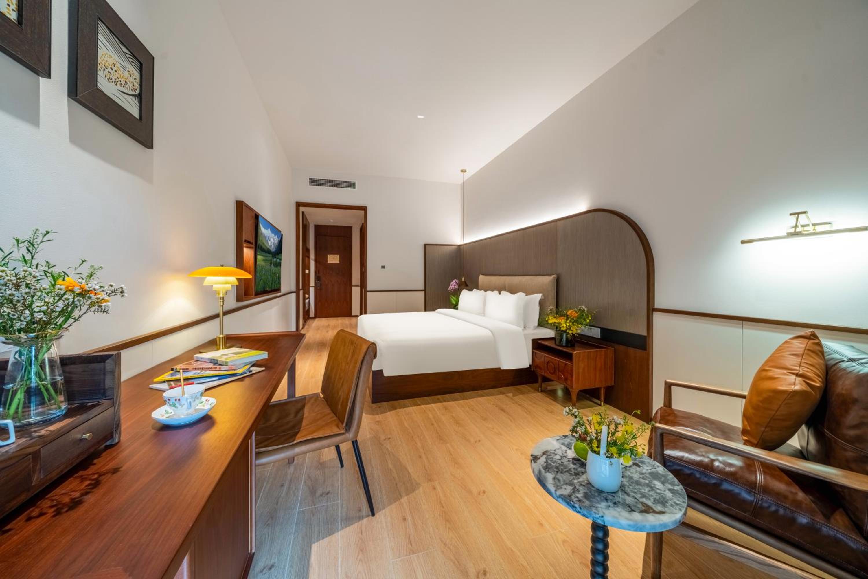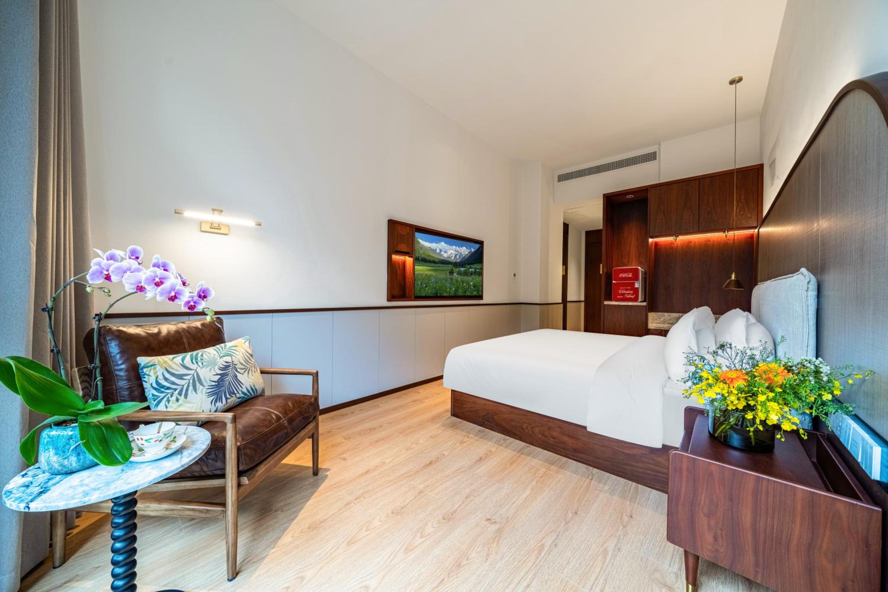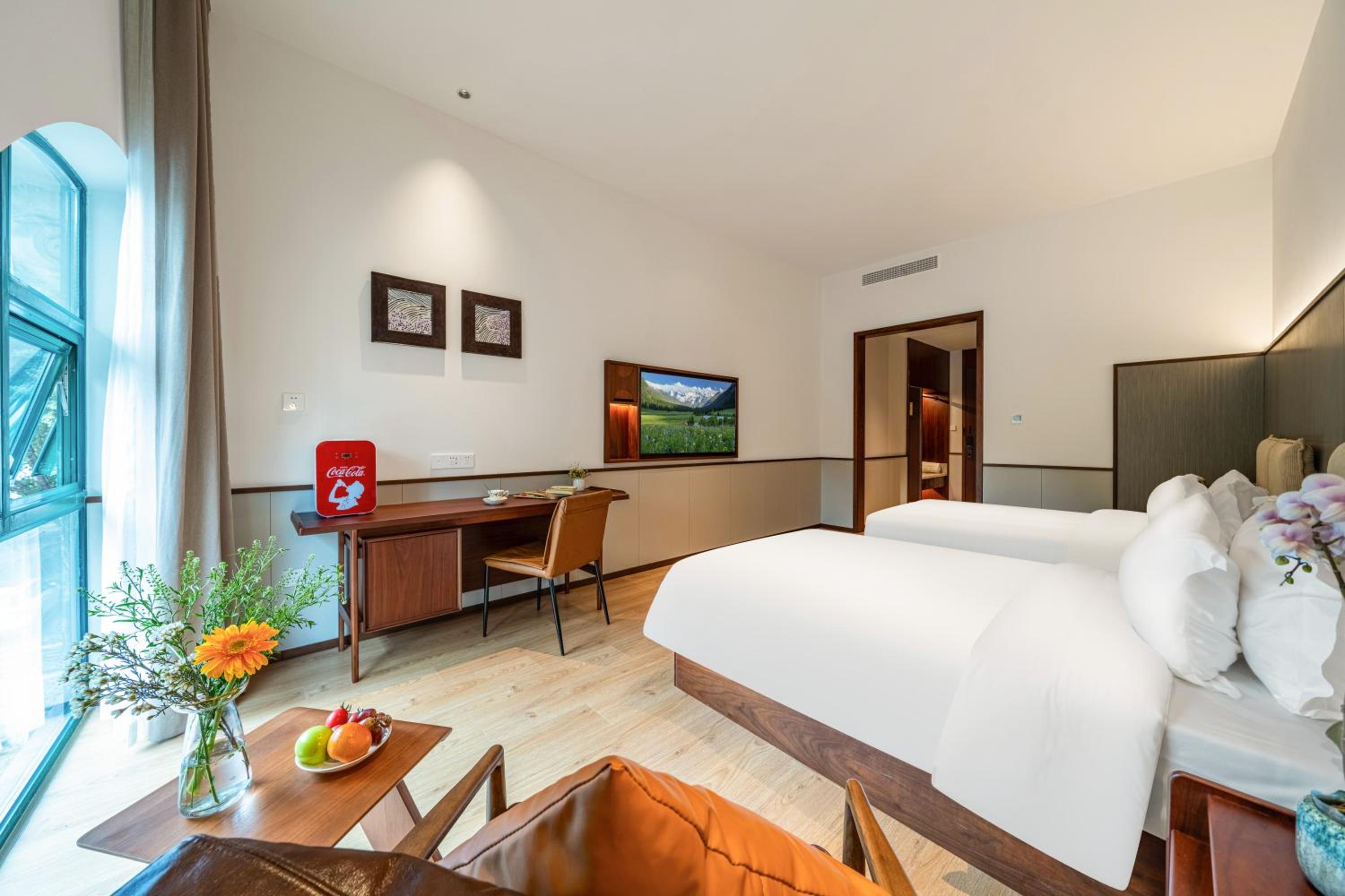 The hotel offers cozy non-smoking rooms with modern amenities like air conditioning, flat-screen TVs, and free WiFi. Some rooms even provide beautiful city views and private patios for a relaxing stay.