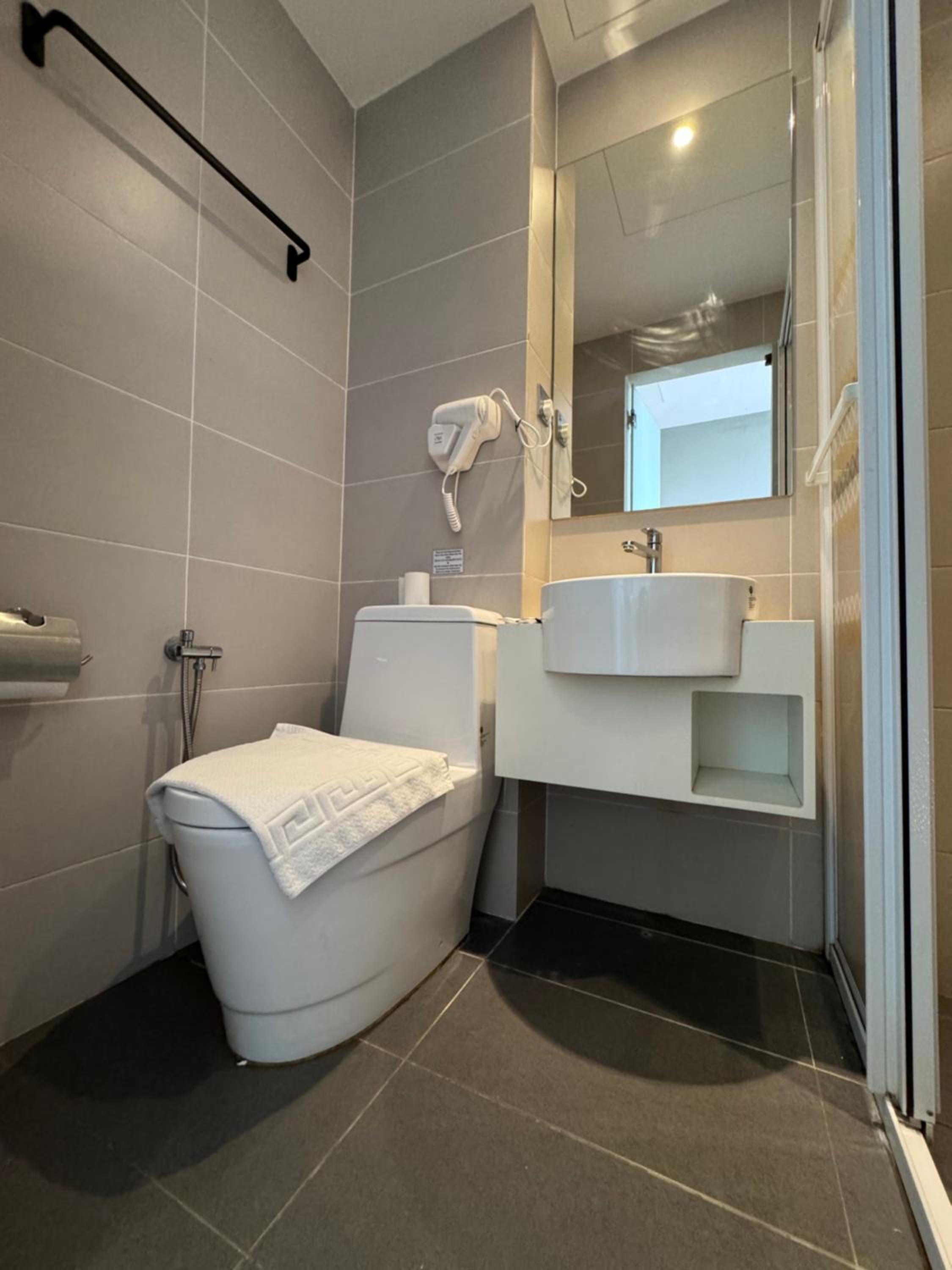 Free parking..hotel with lift. Room big space. Water heater